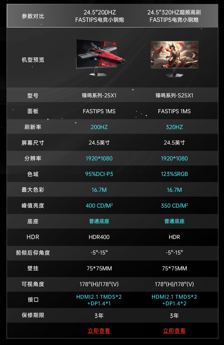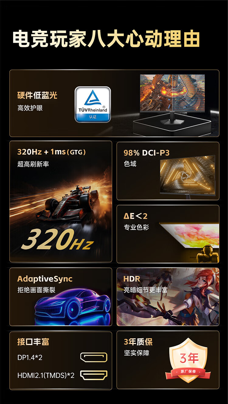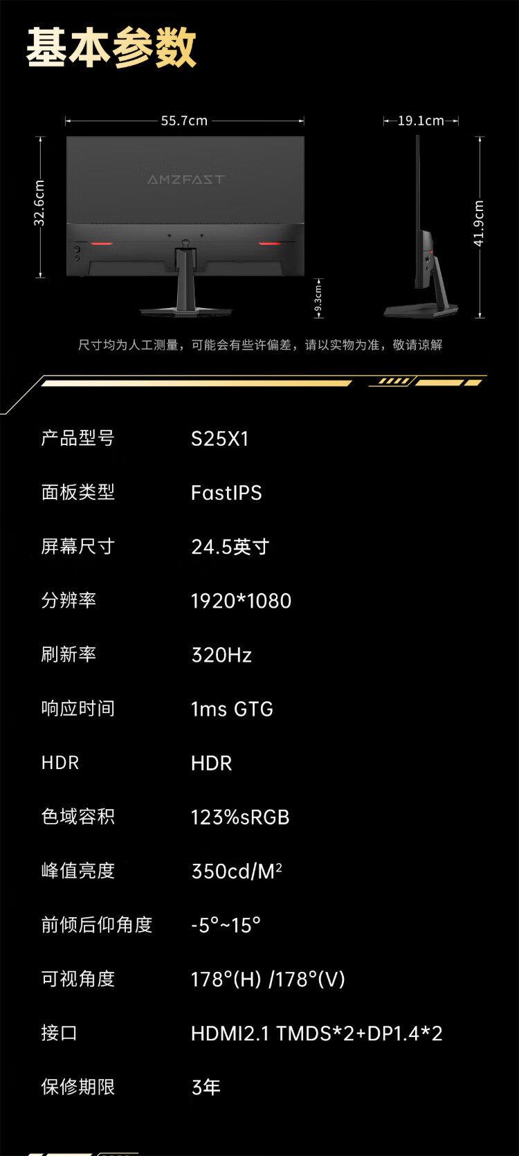 AMZFAST 24.5-inch 320Hz high-brush gaming monitor FastIPS wide color gamut 1ms HDR technology hardware low blue light office gaming computer screen Fengming S25X1