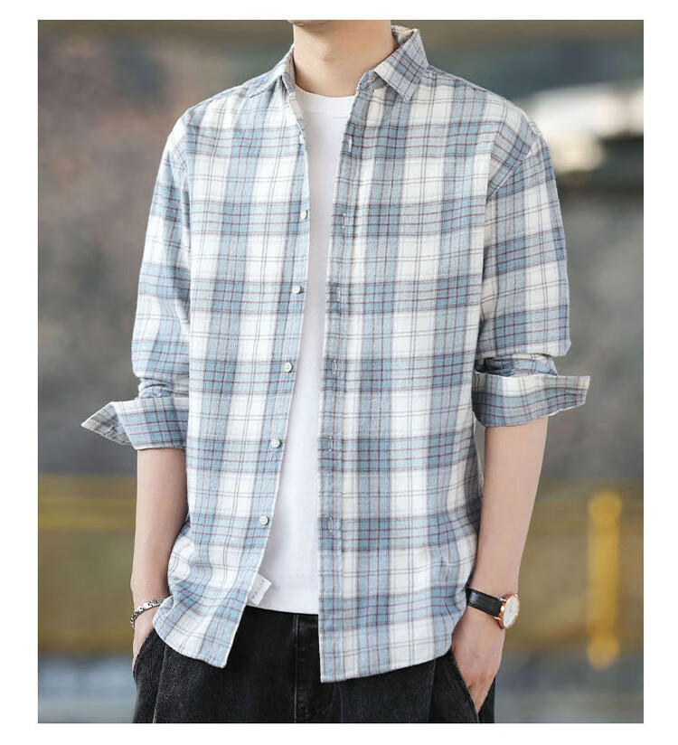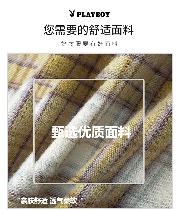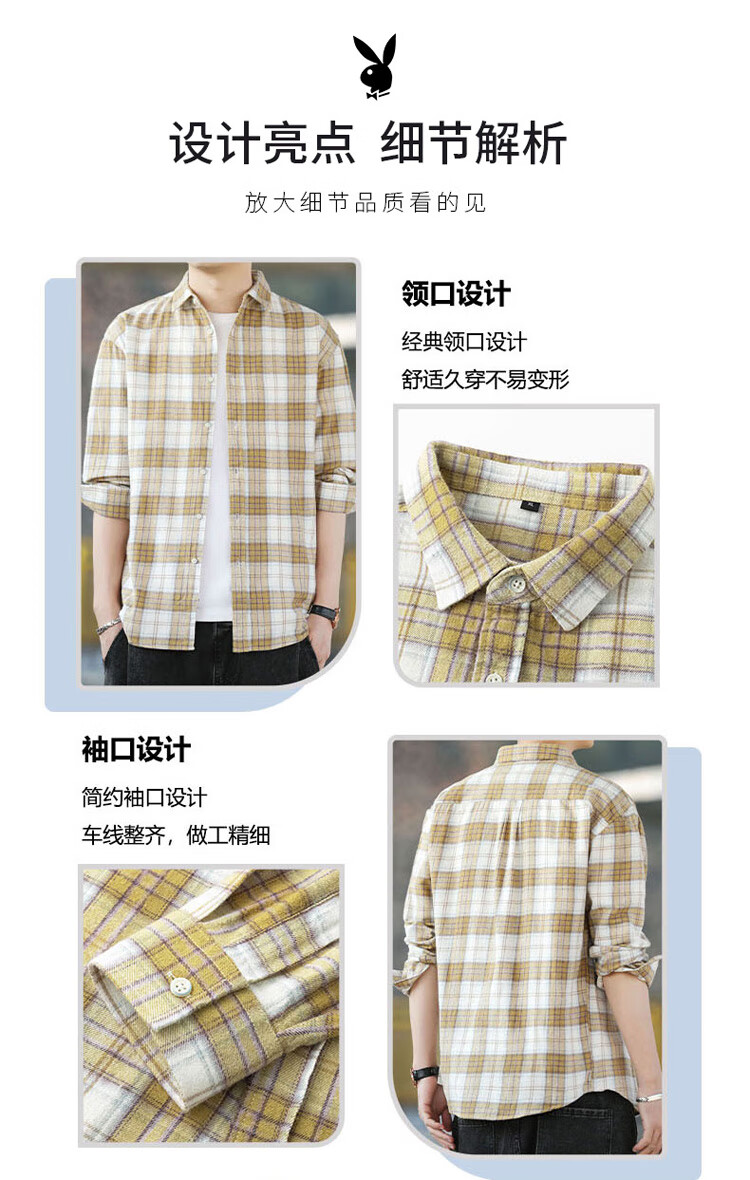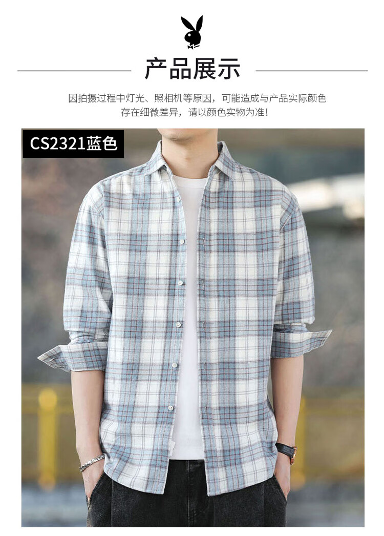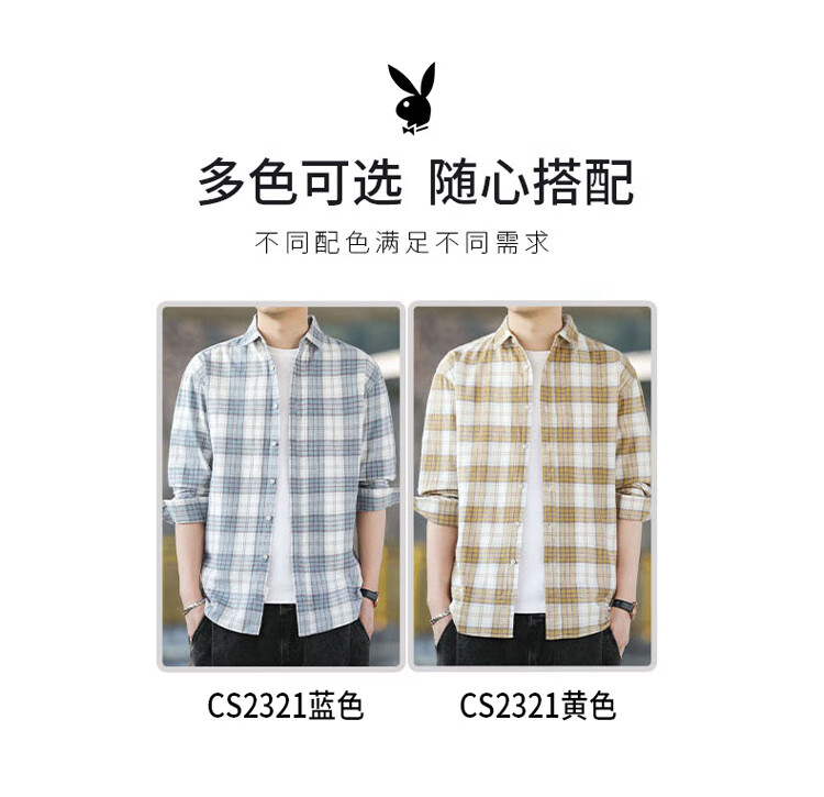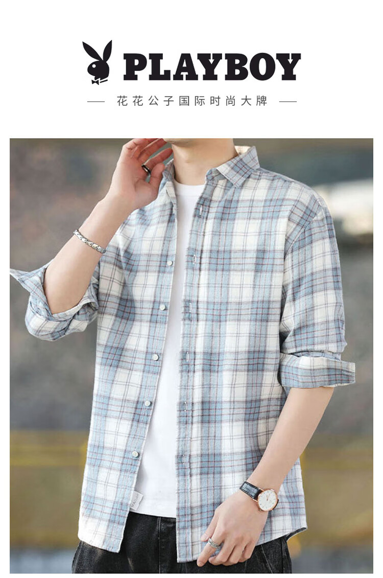 Playboy (PLAYBOY) shirt men's plaid long-sleeved jacket men's shirt autumn and winter business casual men's trendy cotton tops