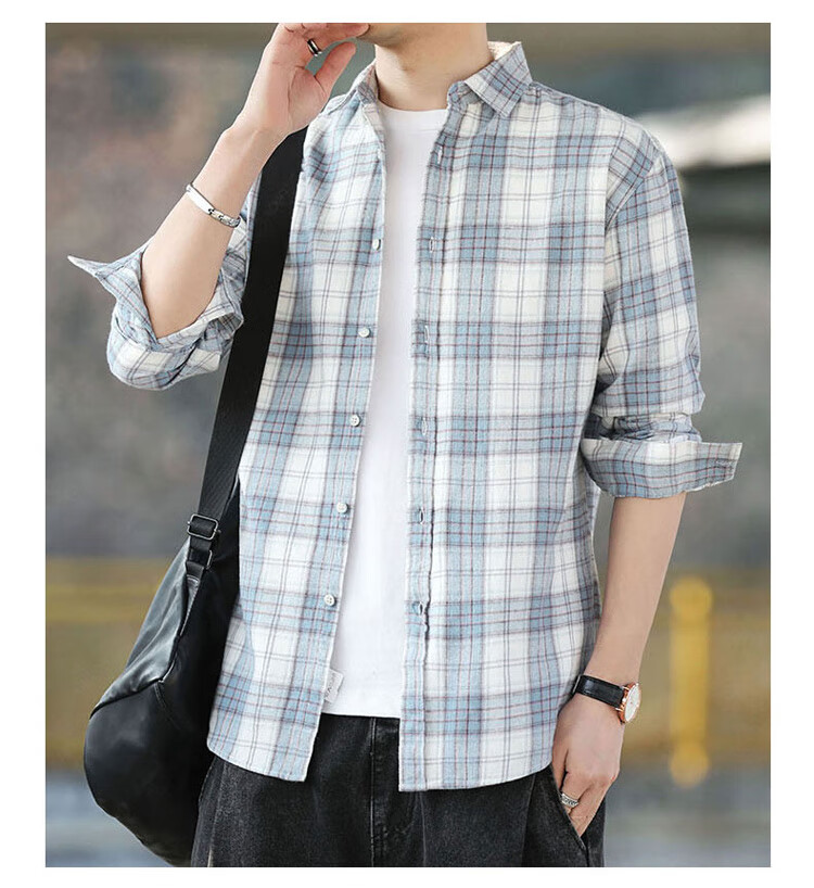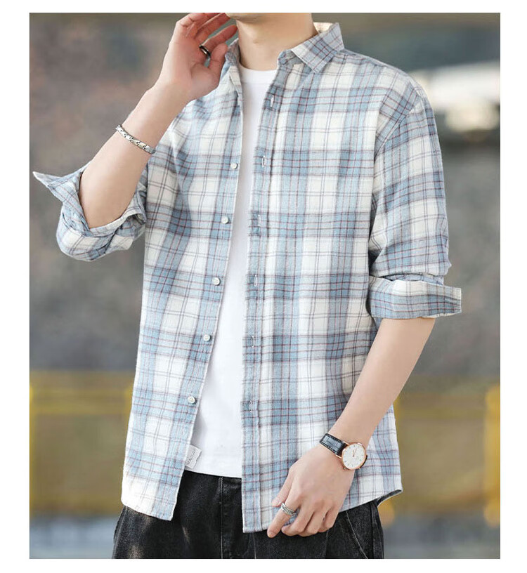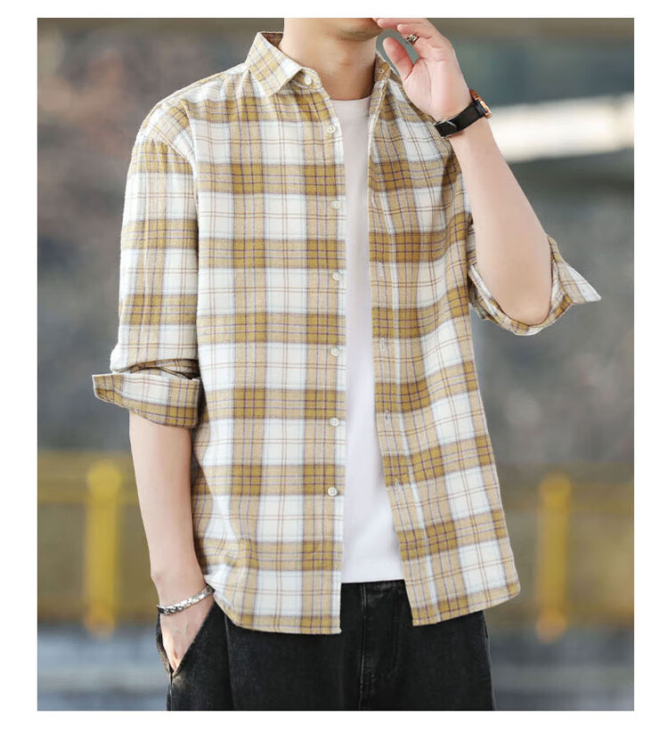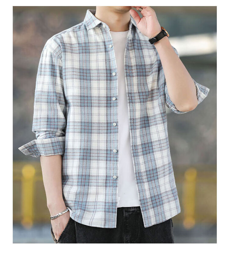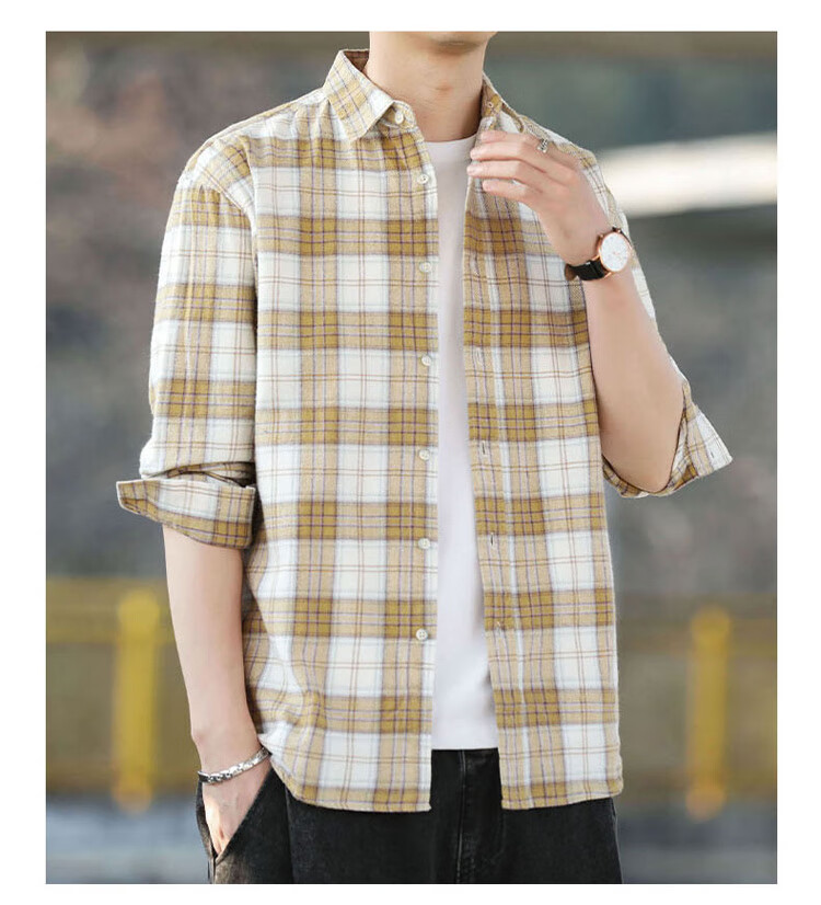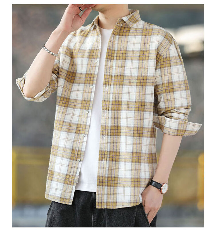 Playboy (PLAYBOY) shirt men's plaid long-sleeved jacket men's shirt autumn and winter business casual men's trendy cotton tops