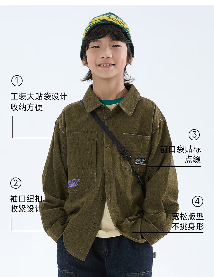 Mipu + children's shirt MPEWQCS01 olive green 160cm
