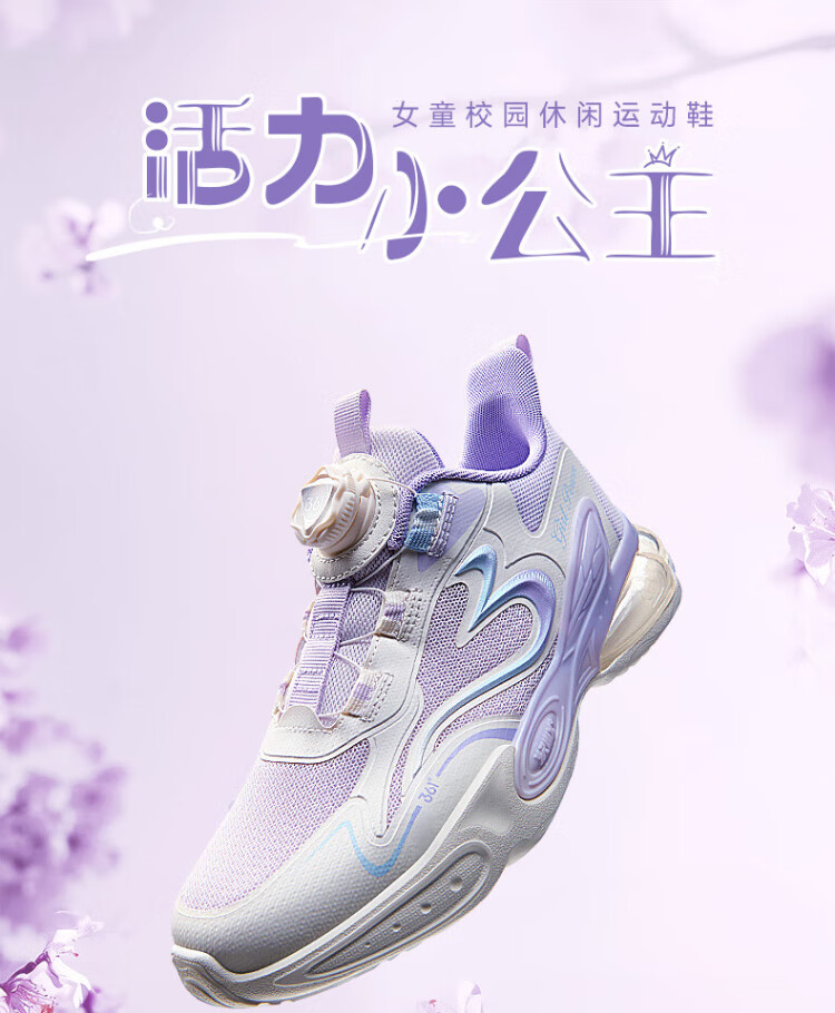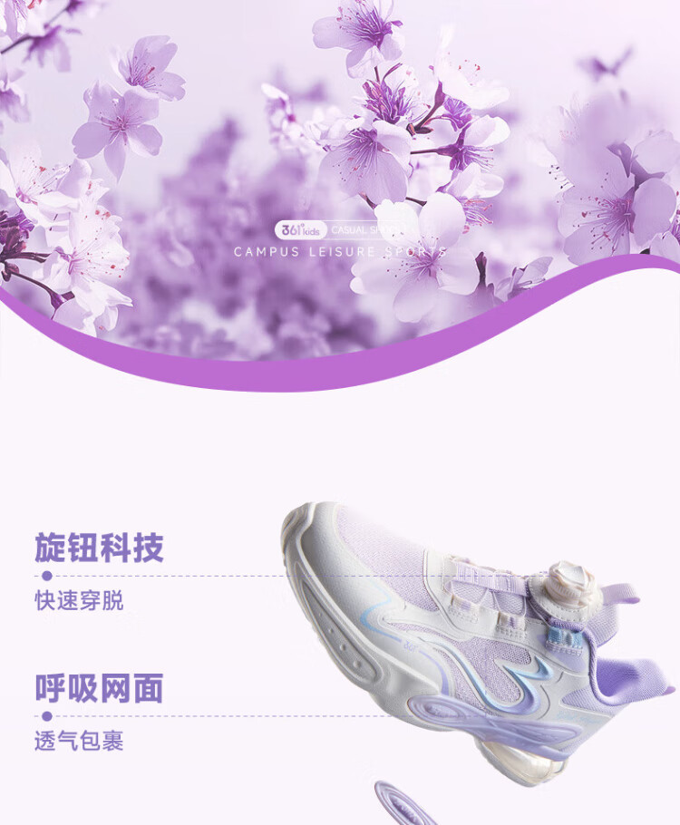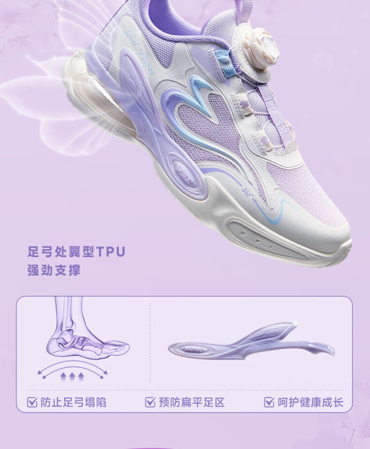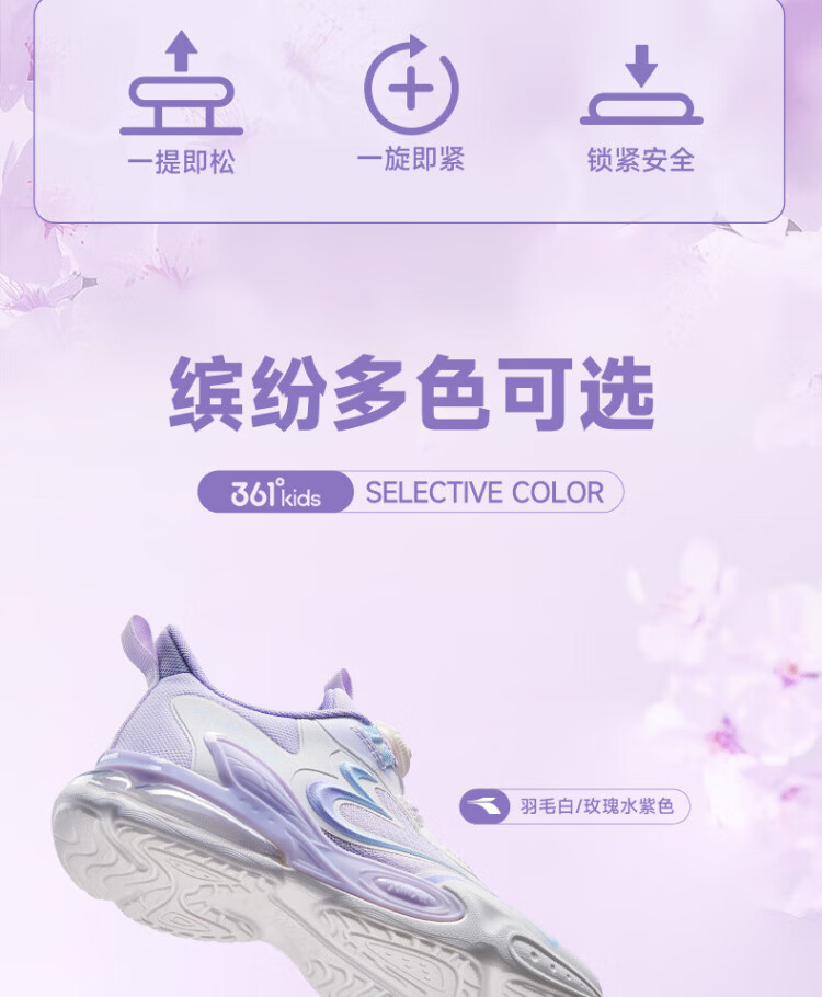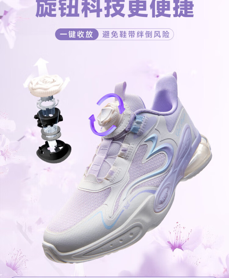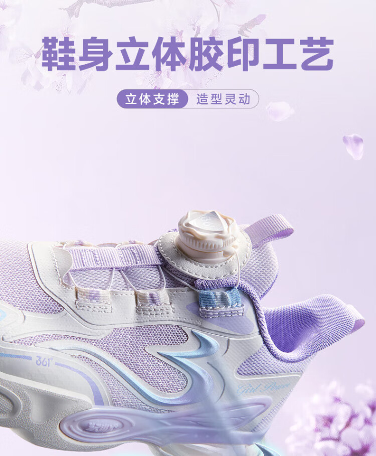 361 Children's Shoes Children's Sports Shoes 2025 Autumn Women's and Large Children's Shock Absorbing Rebound Knob Buckle Casual Running Shoes Purple 35