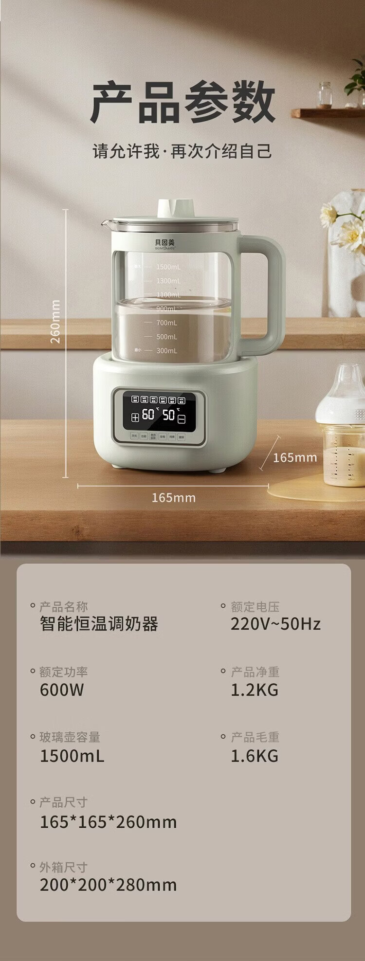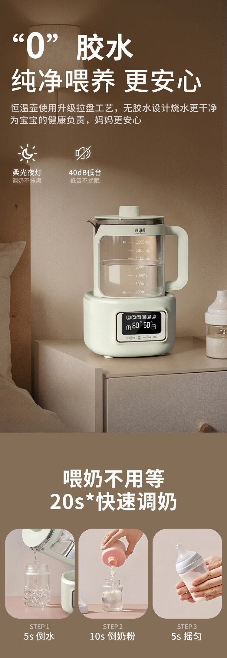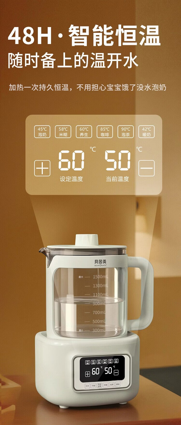Beingmate Hot Products Thermostatic Kettle 0 Glue Baby Milk Conditioner Household Milk Powder Electric Heating Boils Water 1.5L