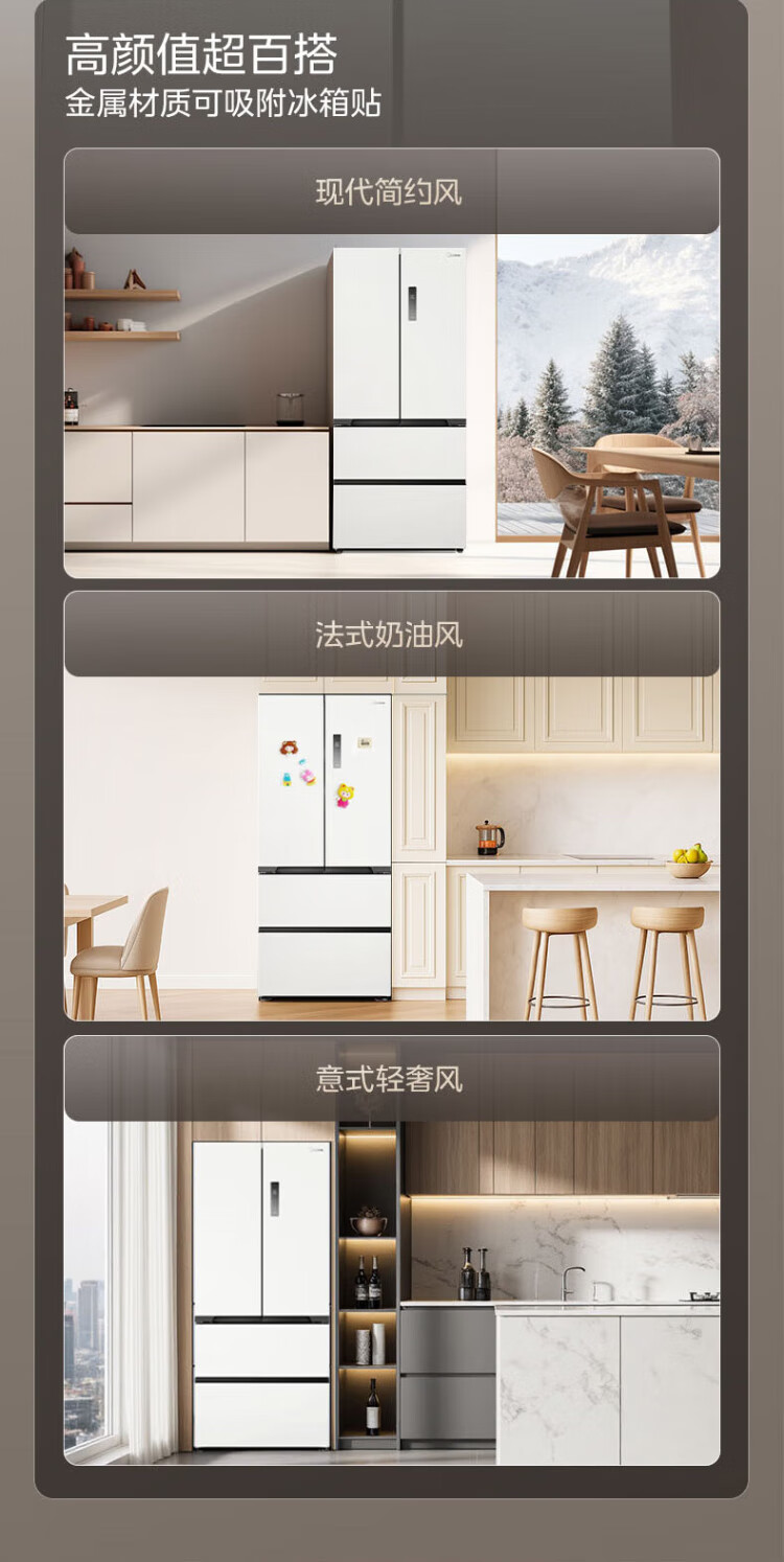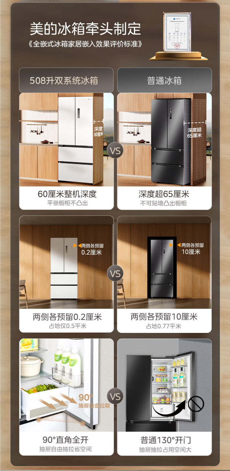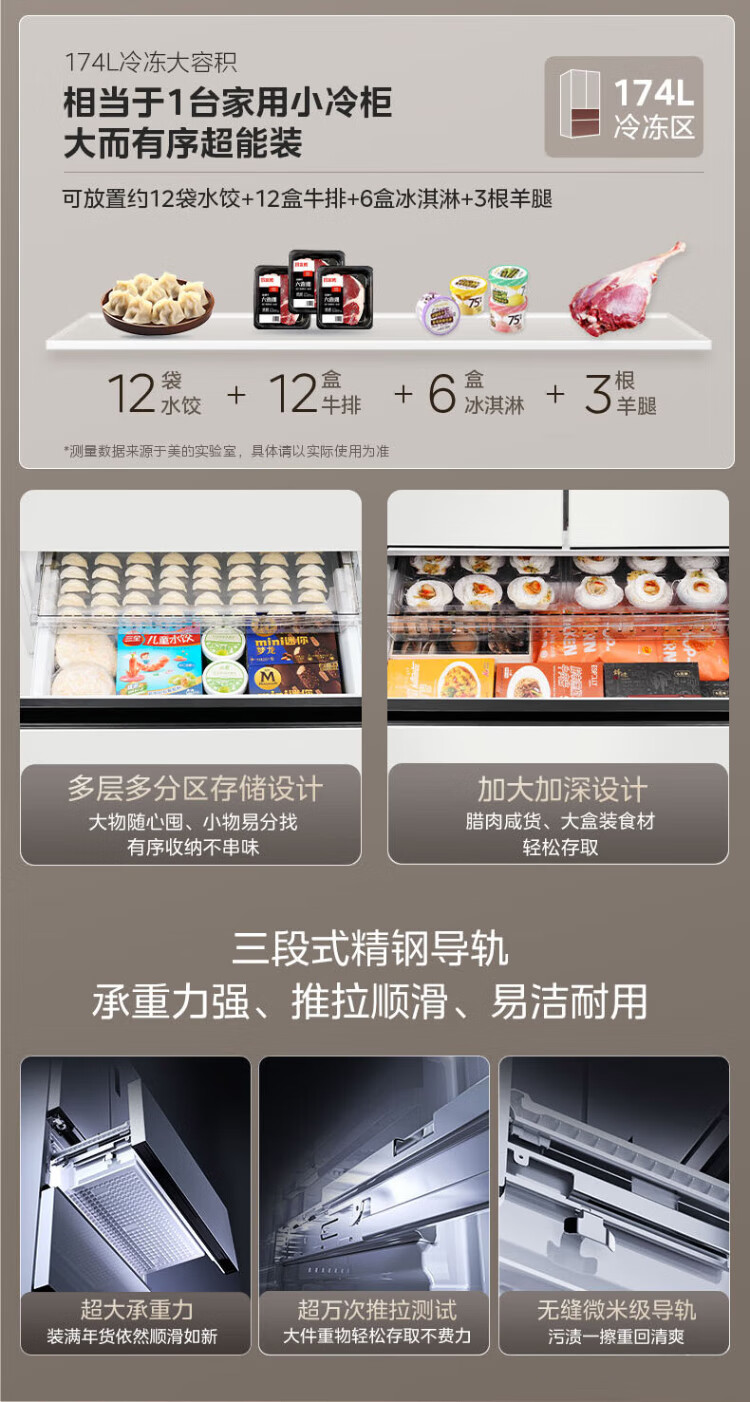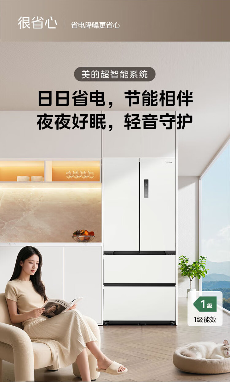 Midea Zhenxiang Series M60 dual system 508 French multi-door four-door household refrigerator ultra-thin flat-mounted double cycle large capacity bottom cooling BCD-508WUFPZM (E) Stardust White