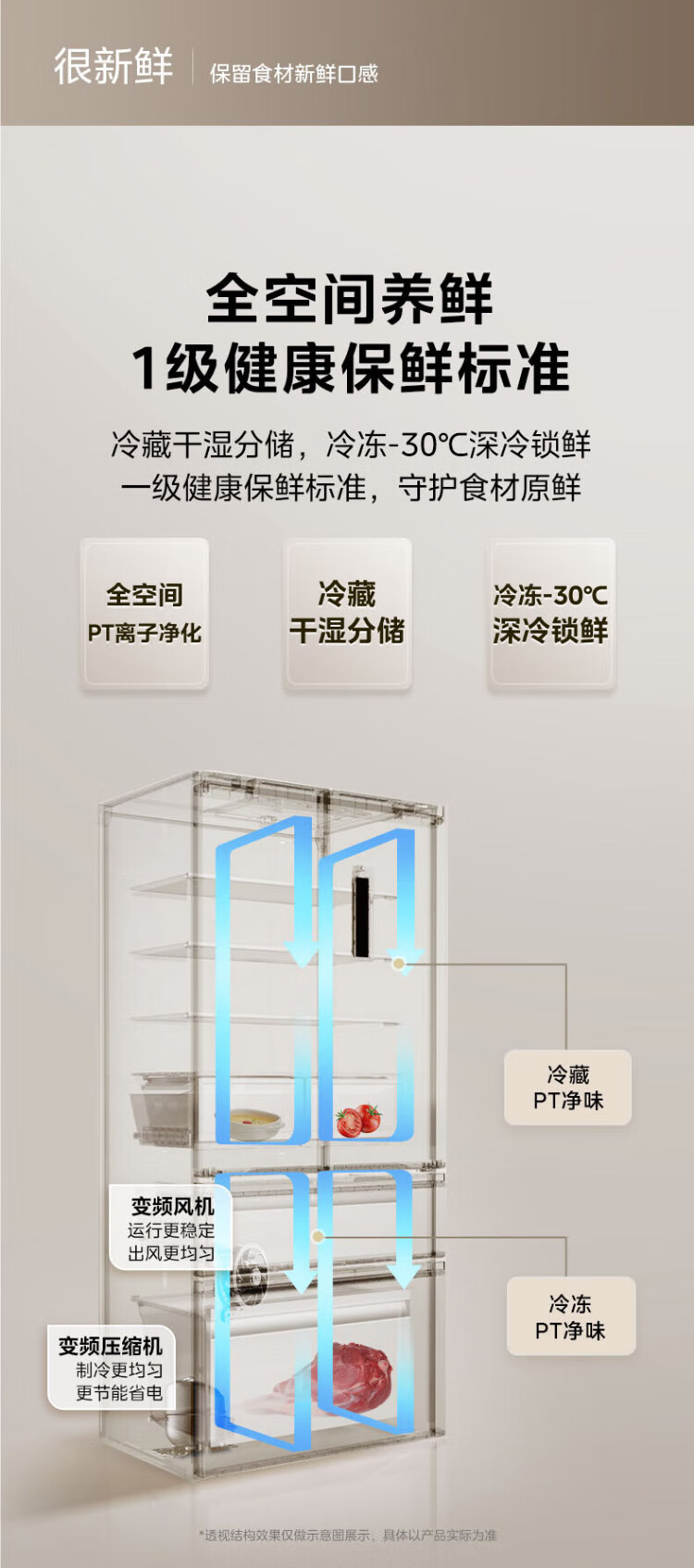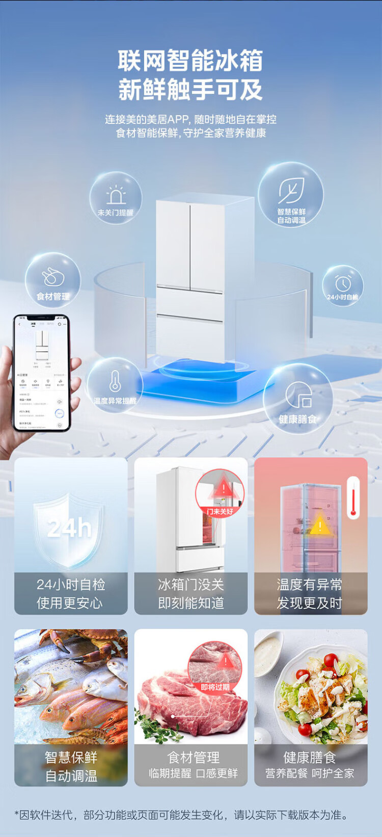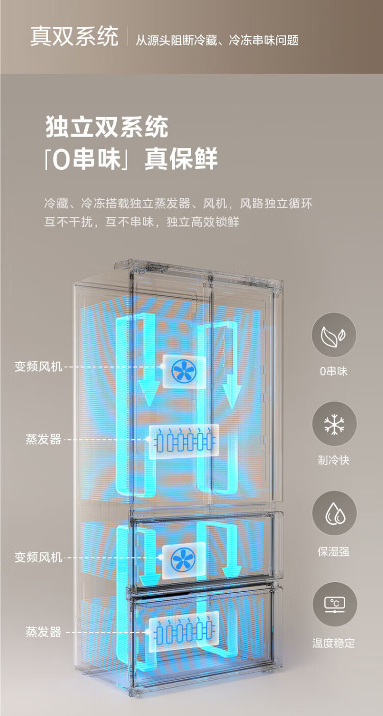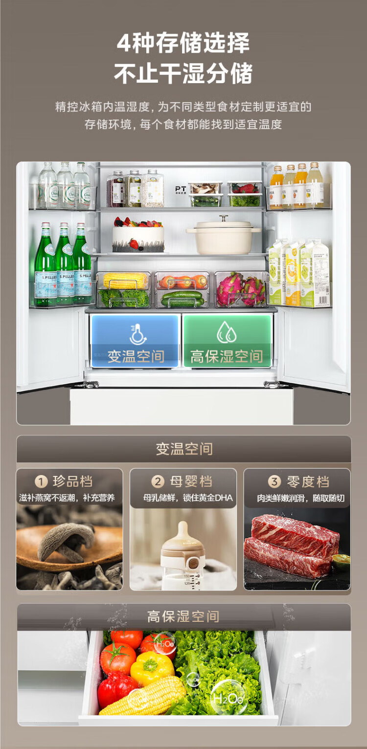 Midea Zhenxiang Series M60 dual system 508 French multi-door four-door household refrigerator ultra-thin flat-mounted double cycle large capacity bottom cooling BCD-508WUFPZM (E) Stardust White