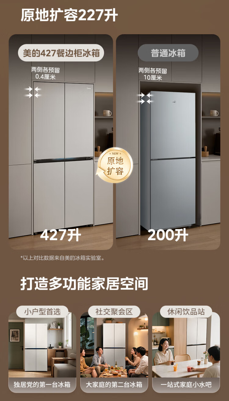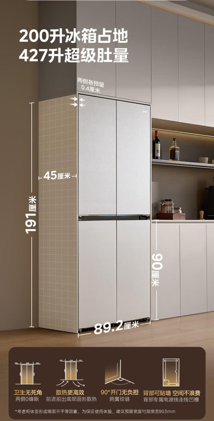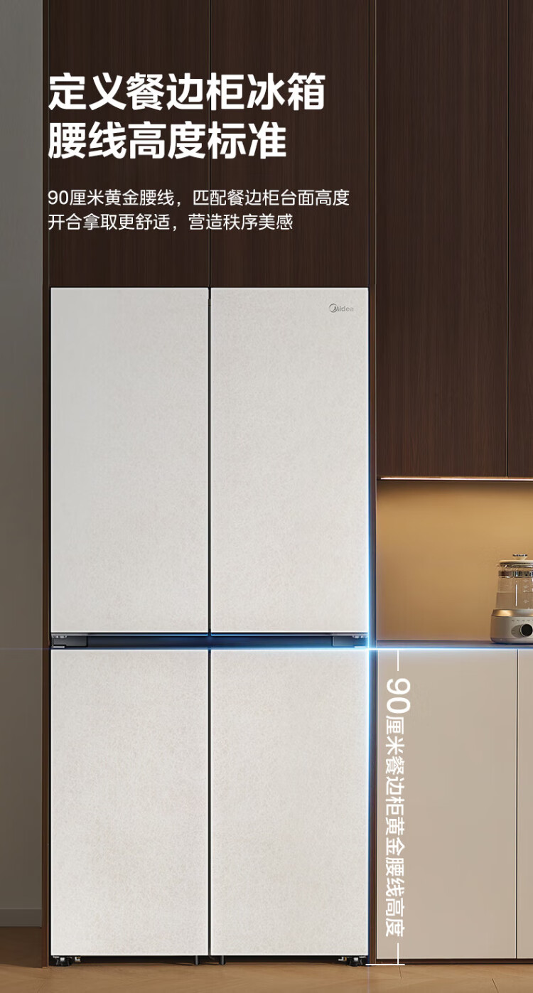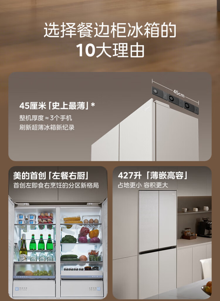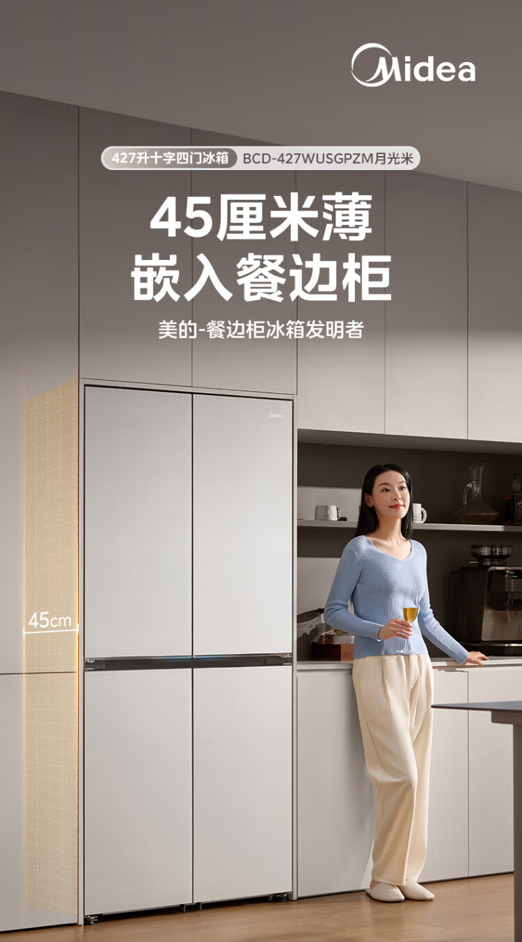 Midea's first 45cm ultra-thin built-in sideboard for home living room refrigerator left dining room right kitchen large capacity bottom cooling cross four-door national subsidy BCD-427WUSGPZM