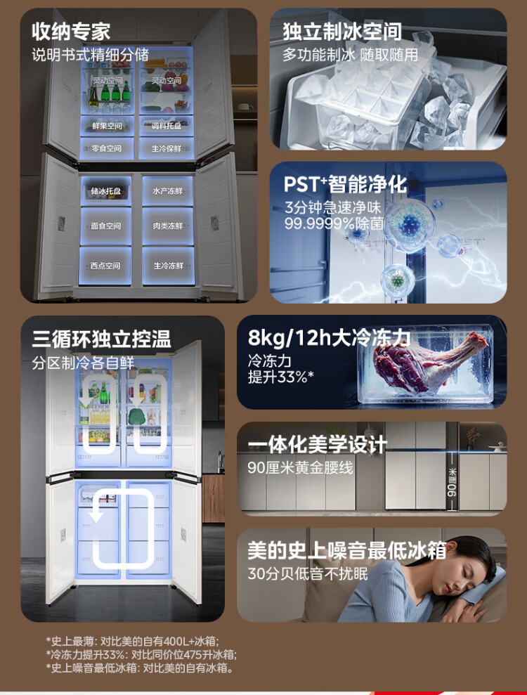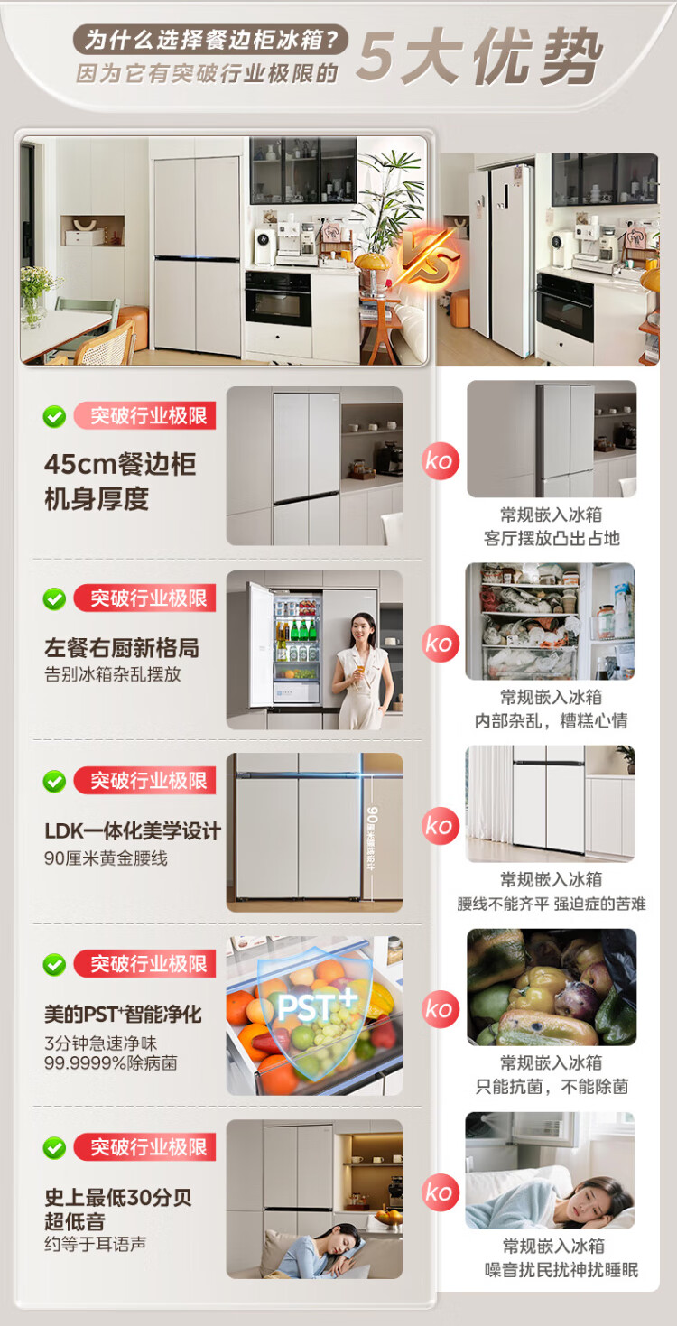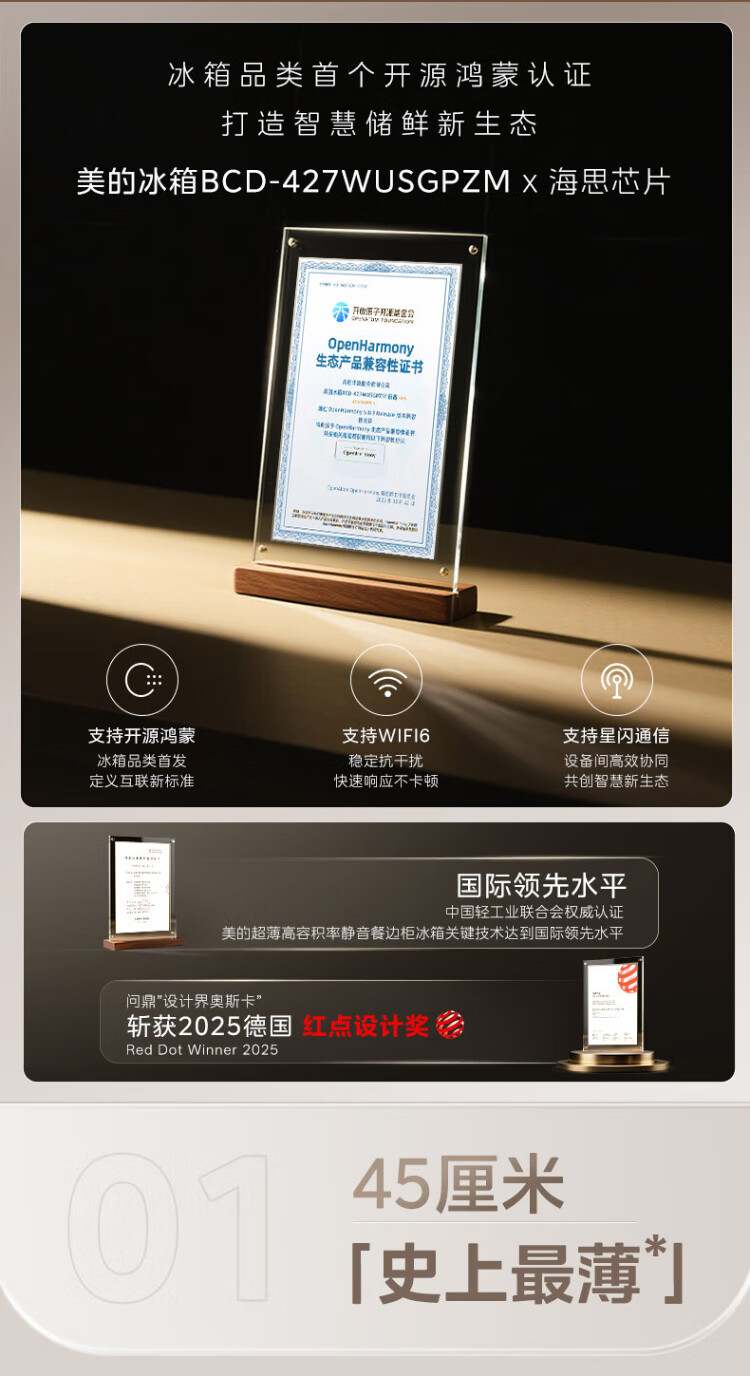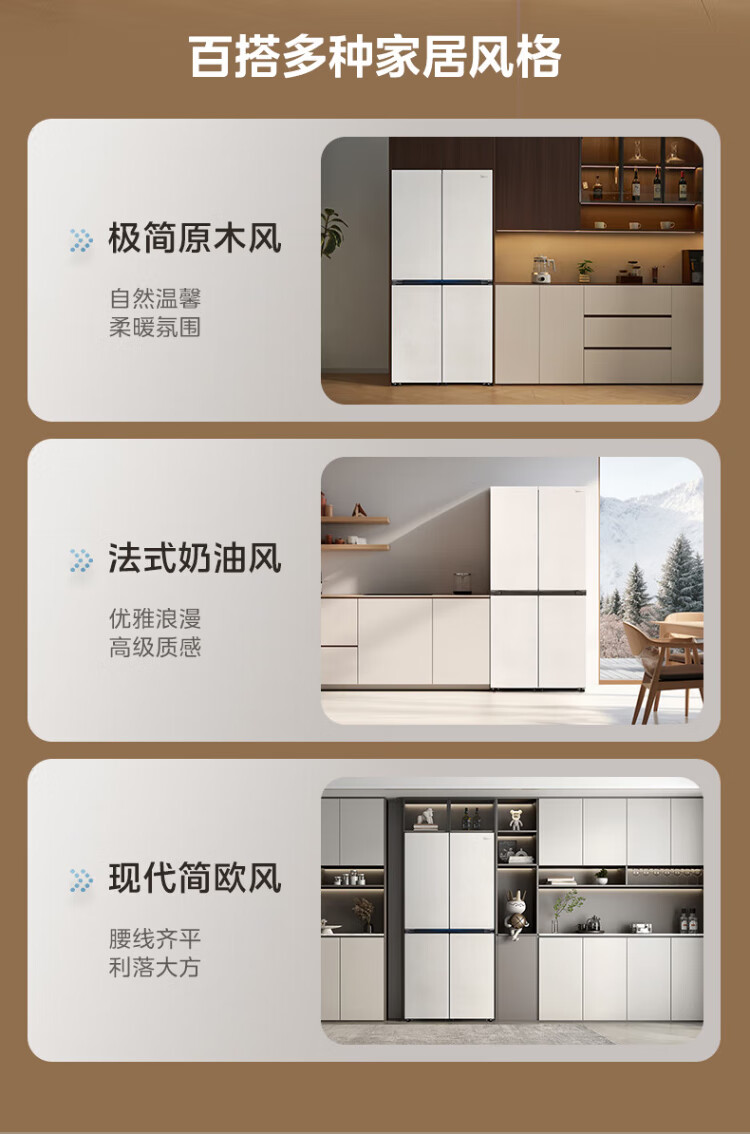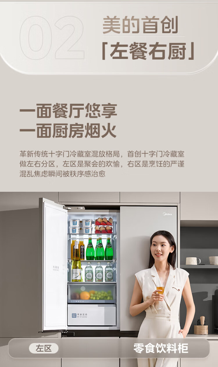 Midea's first 45cm ultra-thin built-in sideboard for home living room refrigerator left dining room right kitchen large capacity bottom cooling cross four-door national subsidy BCD-427WUSGPZM