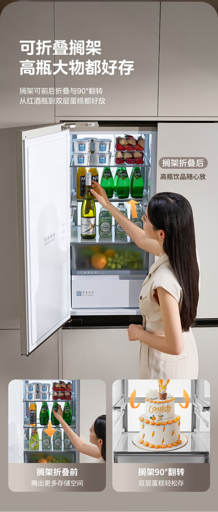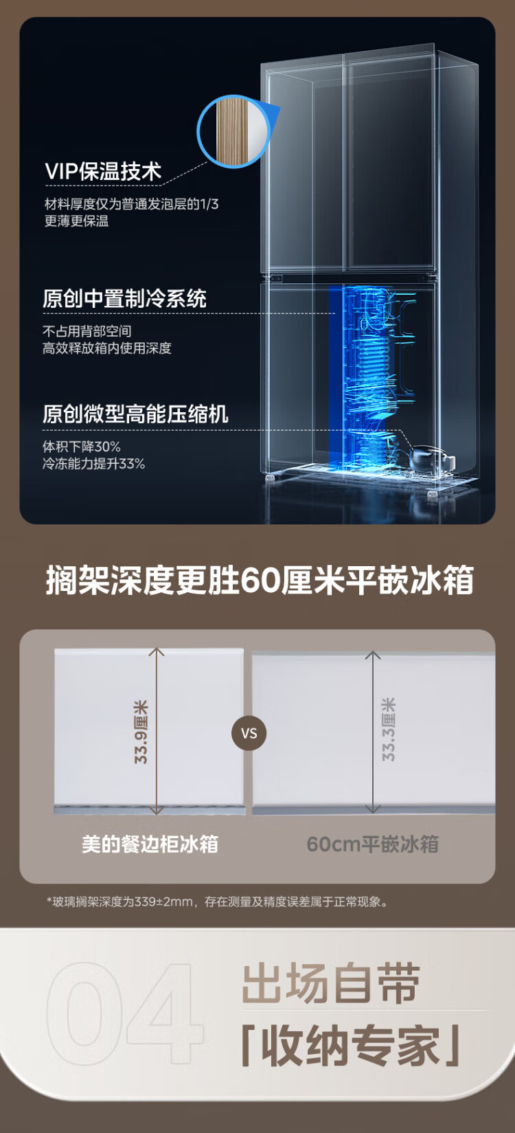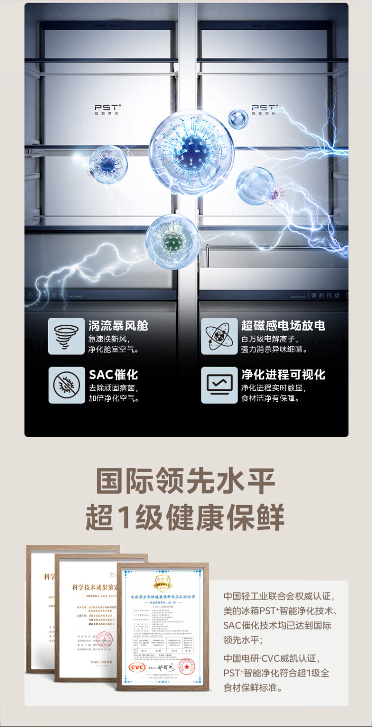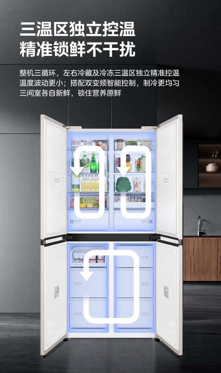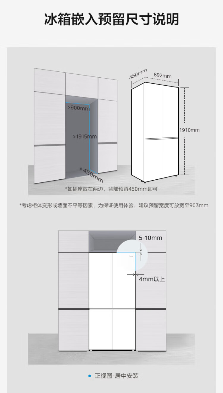 Midea's first 45cm ultra-thin built-in sideboard for home living room refrigerator left dining room right kitchen large capacity bottom cooling cross four-door national subsidy BCD-427WUSGPZM