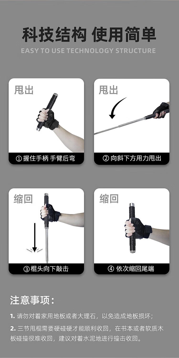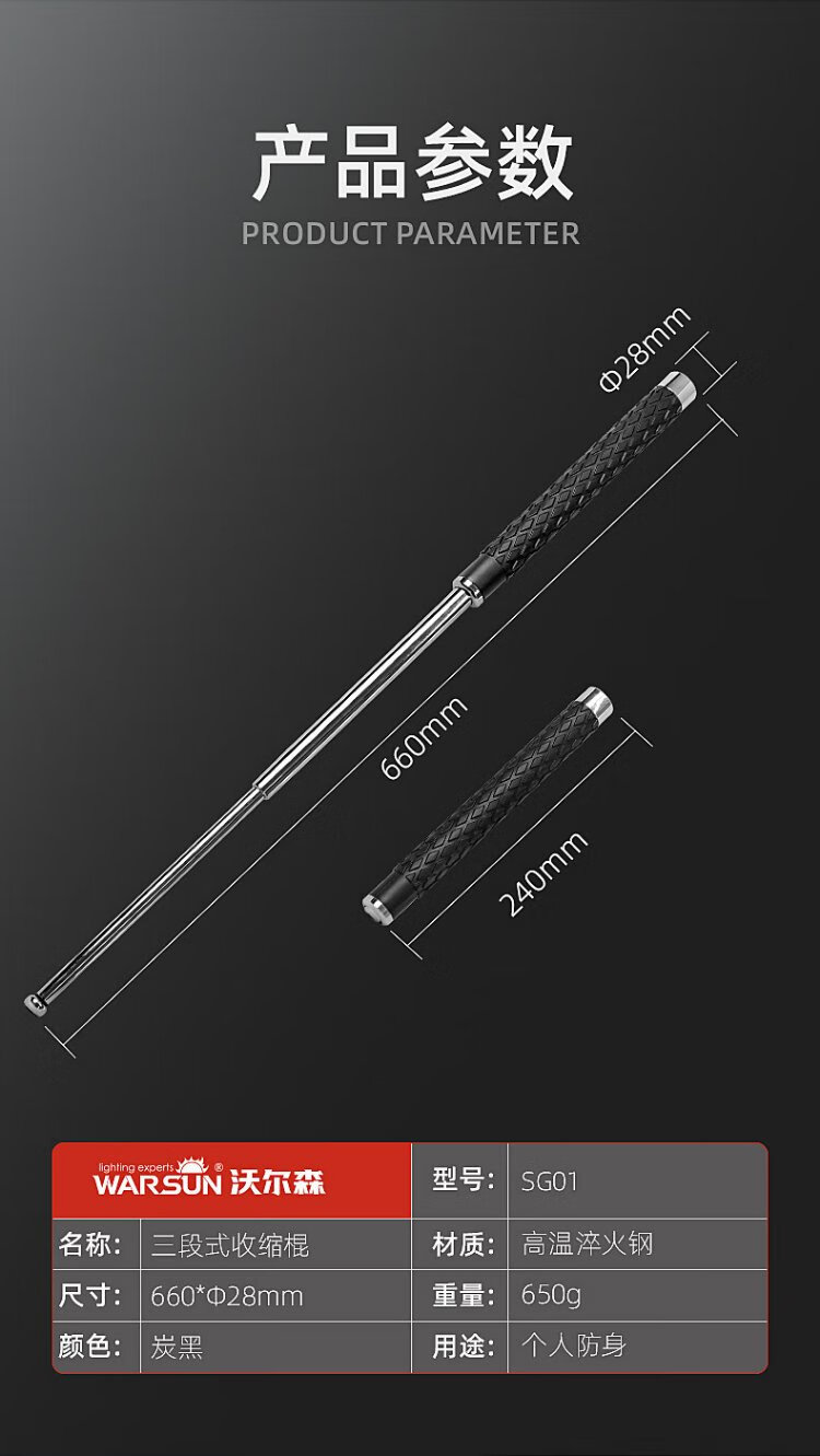 Warsun solid legal self-defense weapon telescopic stick self-defense stick student car portable self-defense swing stick black