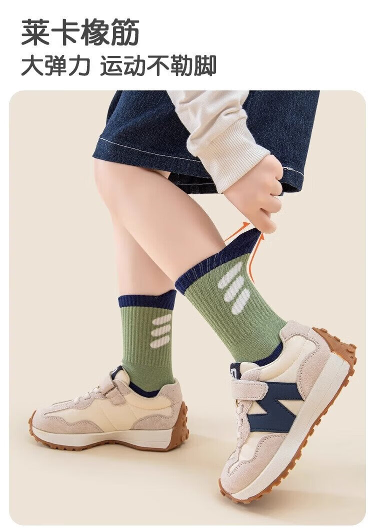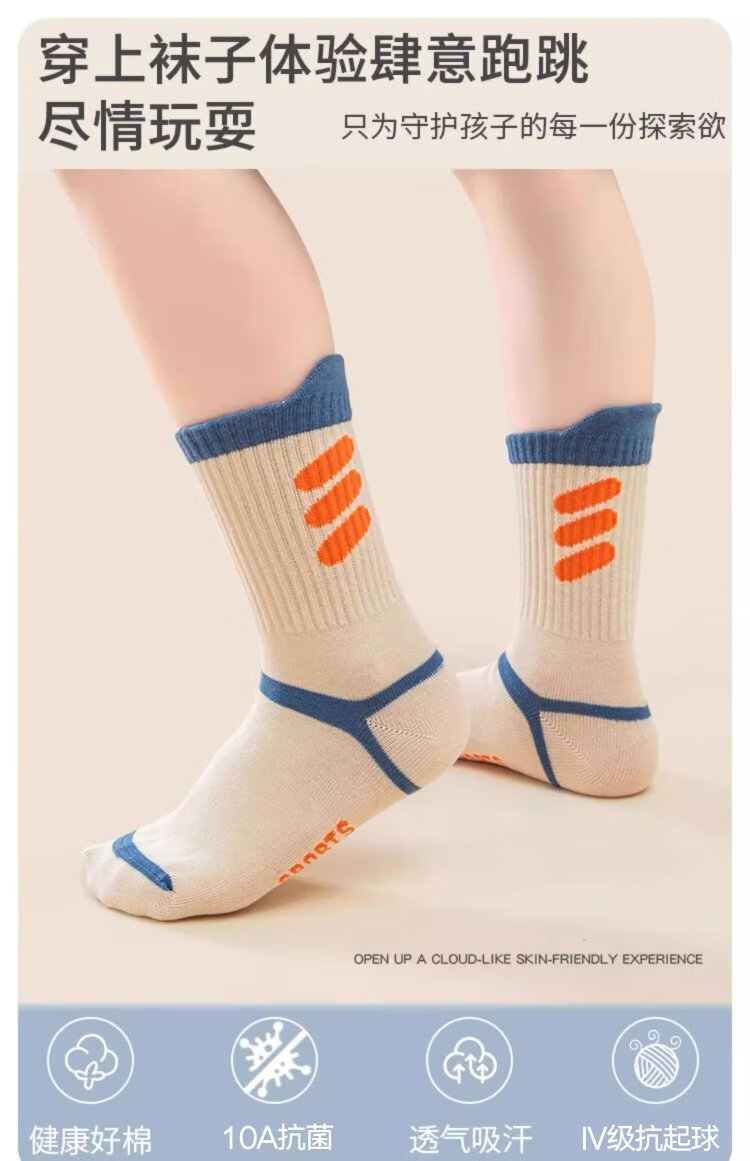Cotton Xiaonian children's socks mid-tube autumn and winter 100% cotton 10A antibacterial and deodorant boys middle and older children student sports