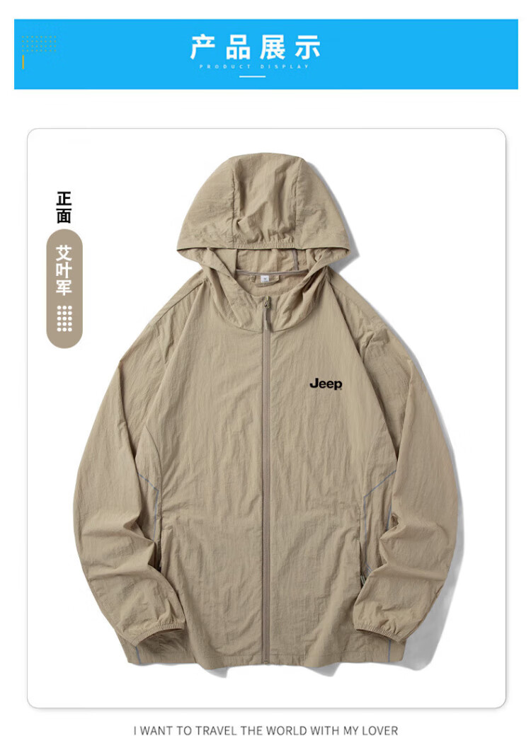 Jeep (JEEP) sun protection clothing men's summer jacket hooded lightweight sun protection fishing clothing outdoor casual top Ai Yejun L