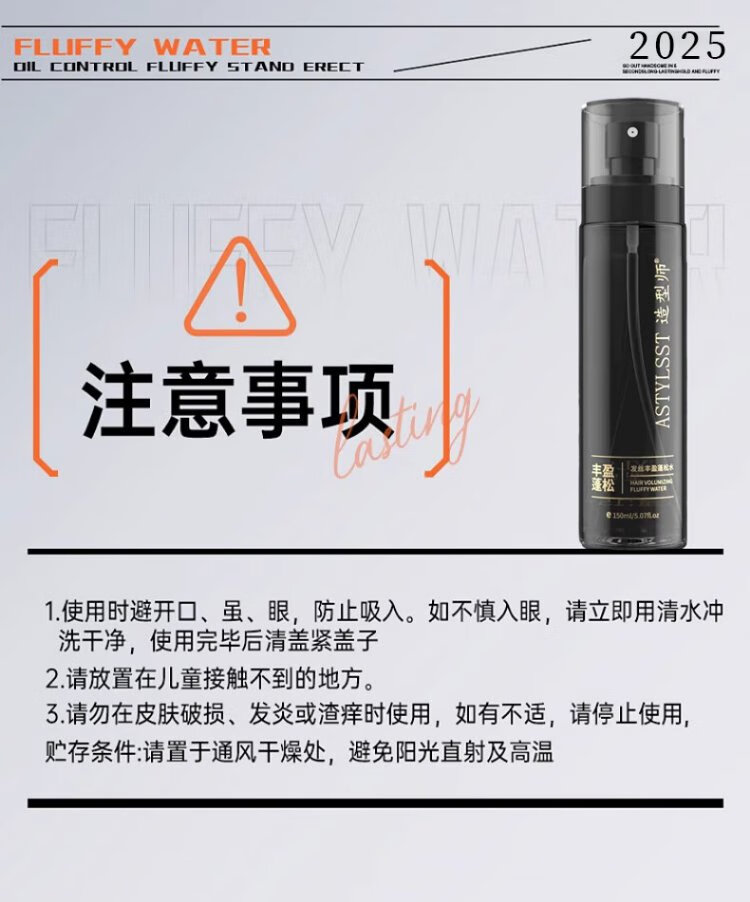 Stylist fluffy water hair styling fluffy spray hair spray natural styling spray airy dry hair spray for men and women