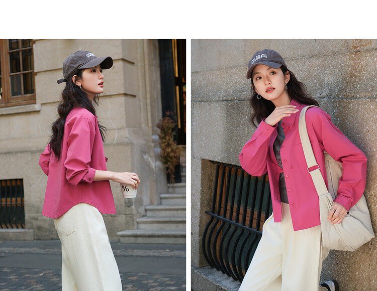 Demana pure cotton dopamine spring retro design lapel long-sleeved shirt comfortable flesh-covering shirt women's top