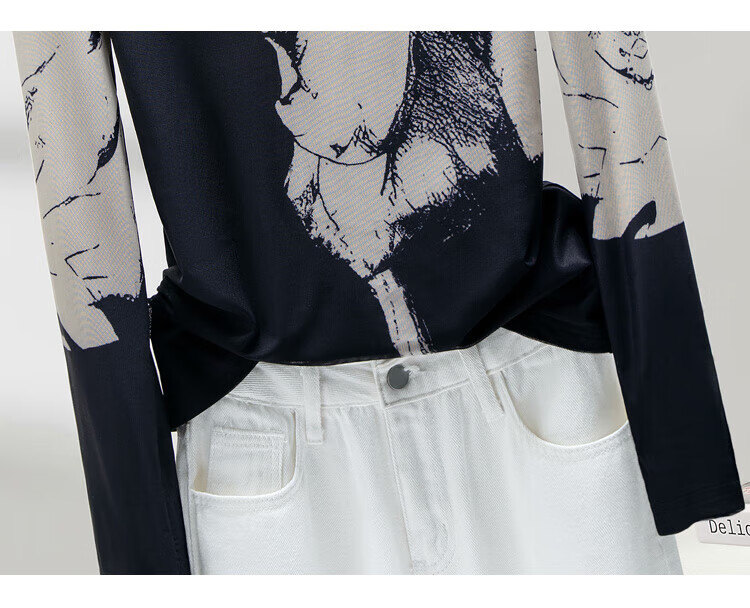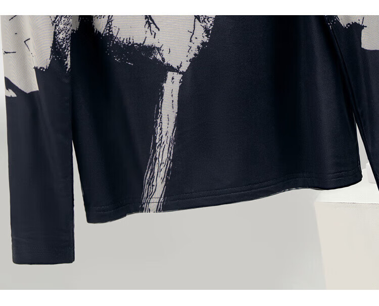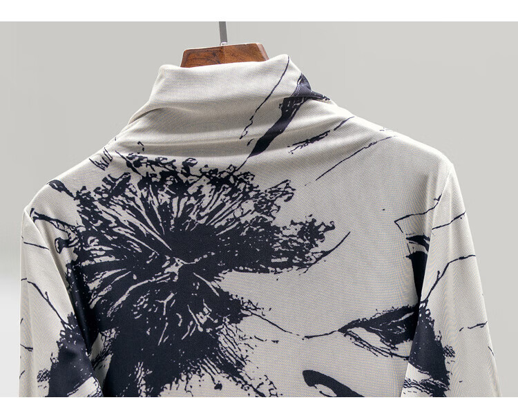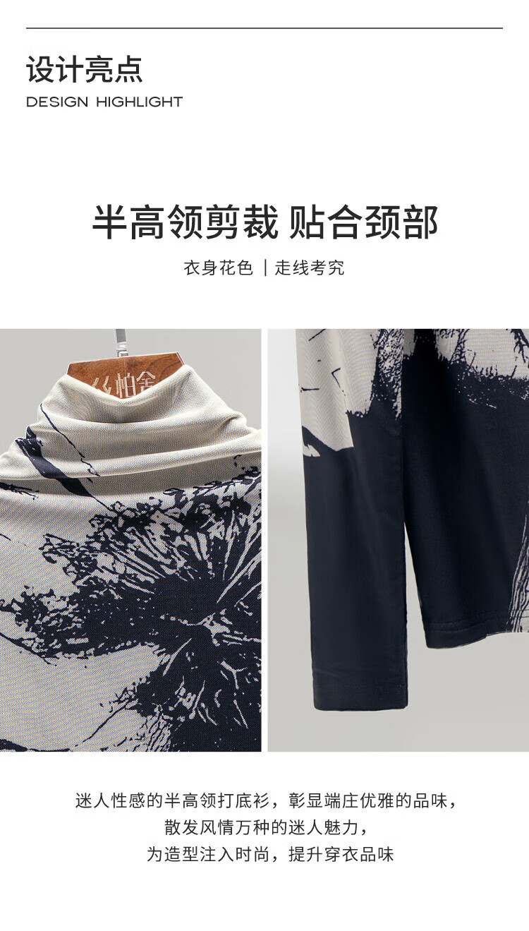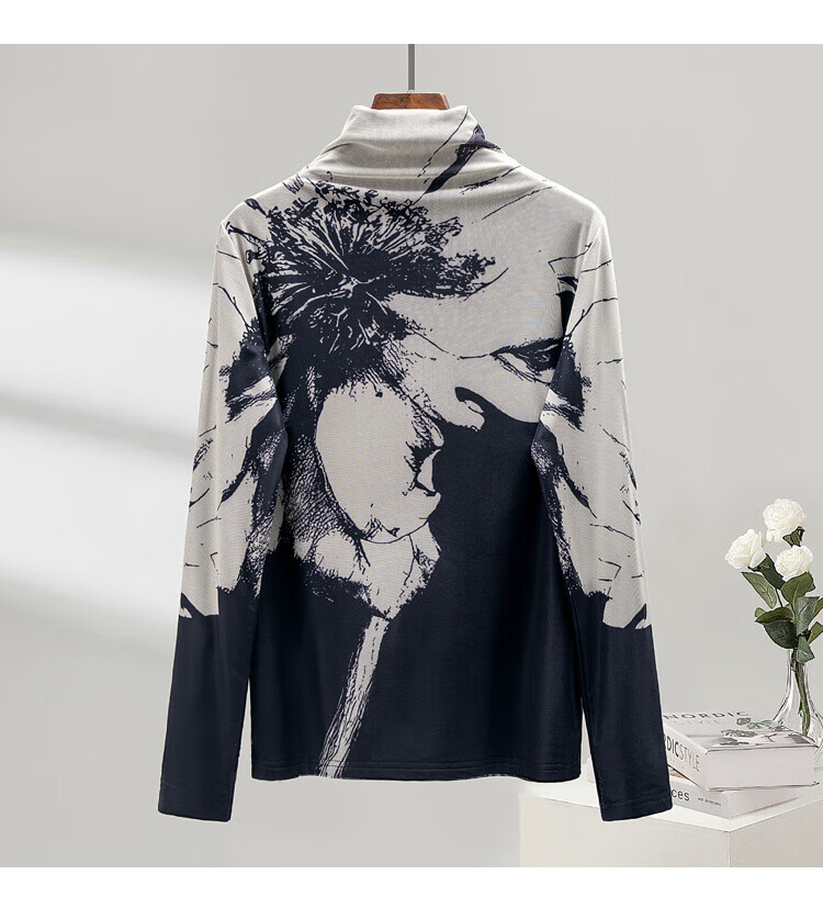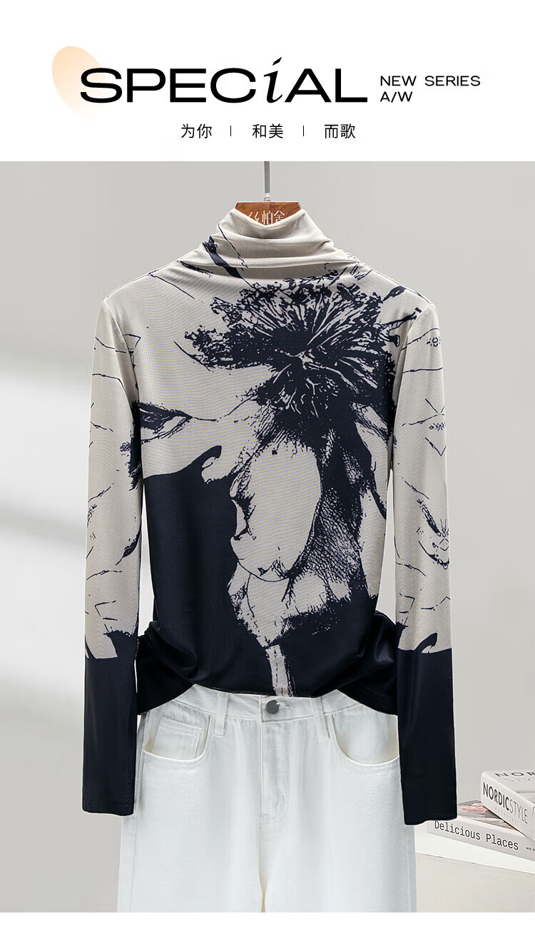 Sibaishe half turtleneck T-shirt 2025 autumn new women's printed slim long-sleeved velvet bottoming shirt