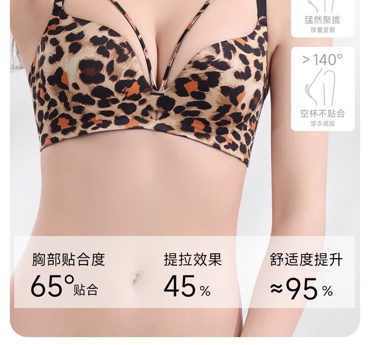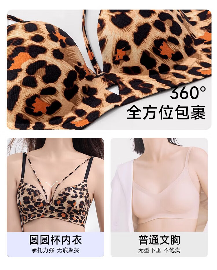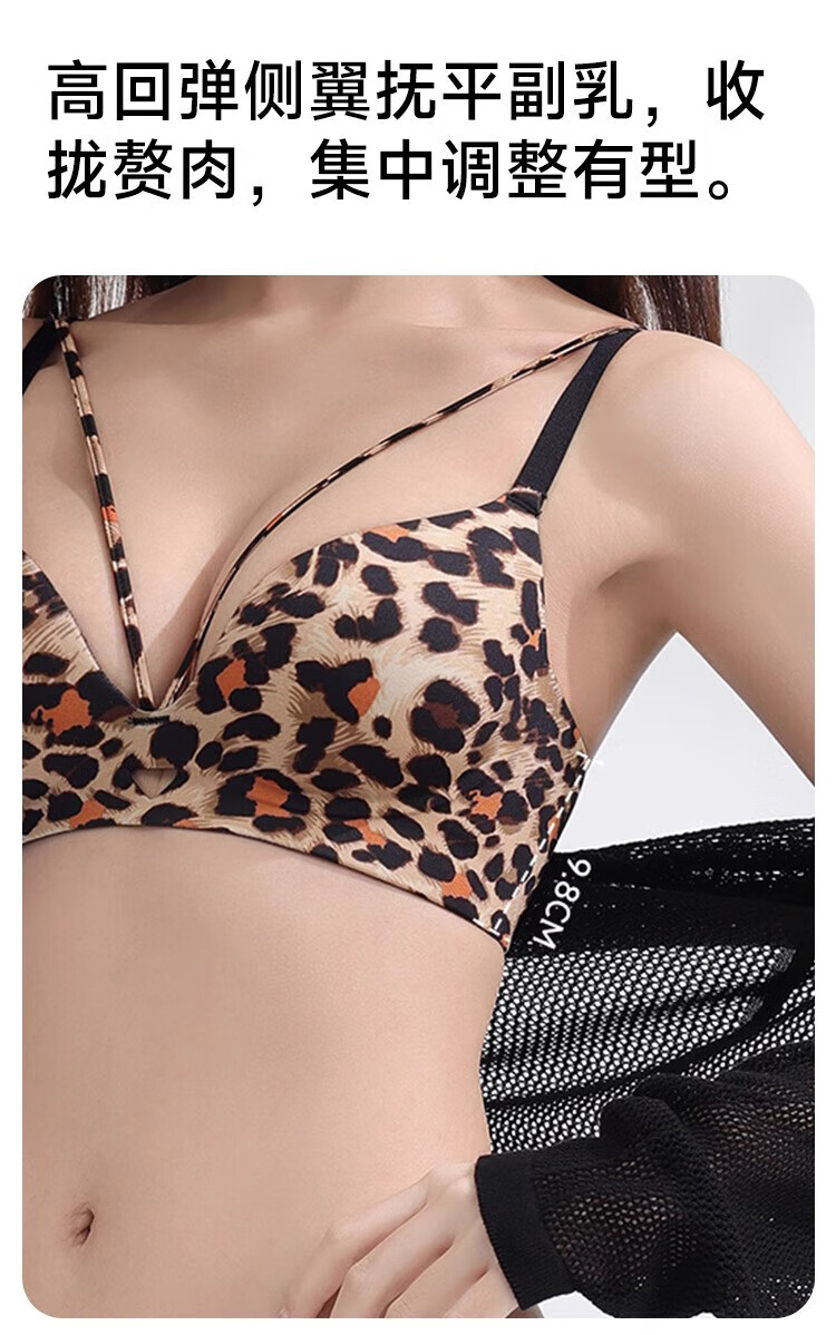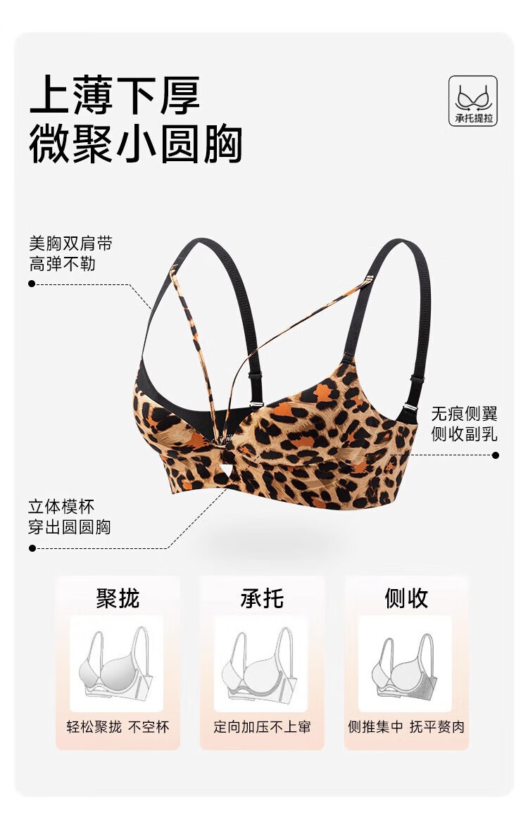 Catman Leopard Print Women's Underwear Women's Small Breast Push Up Show Big Bra Seamless Wireless Pull-up Anti-sagging Sexy Bra