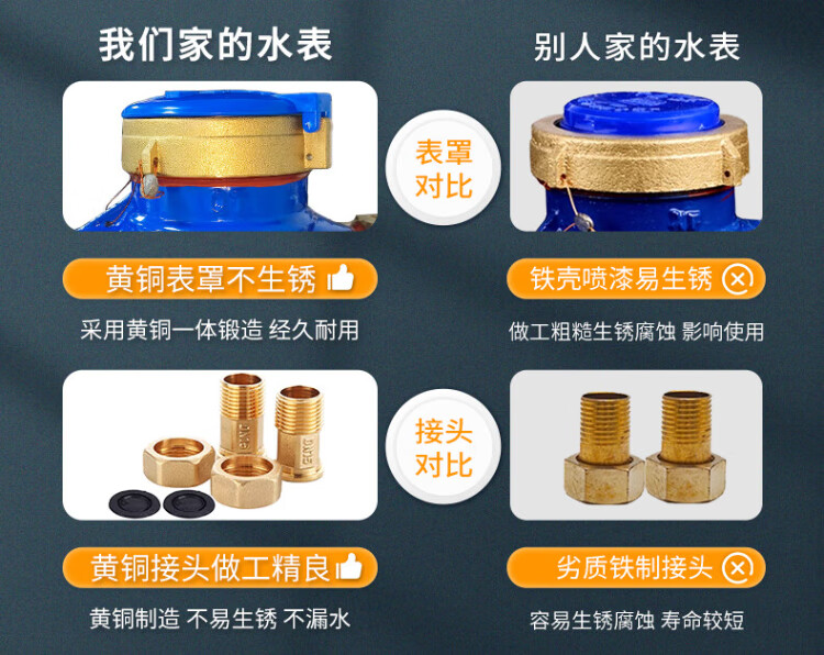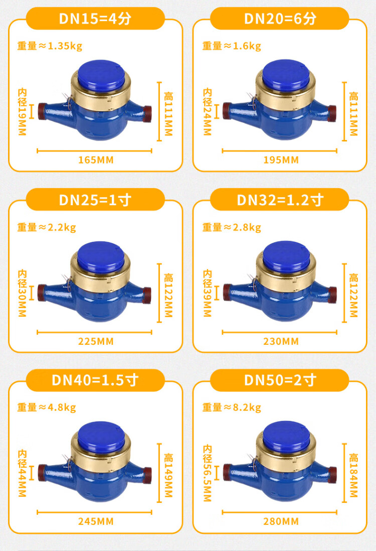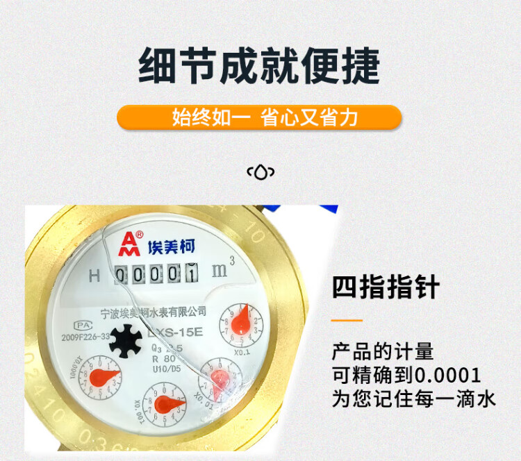 Aimeike Aimeike ZK02-065 Copper cover with copper connection rotor dry cold water meter LXSG-E household tap water mechanical meter DN20/6 points/wire mouth