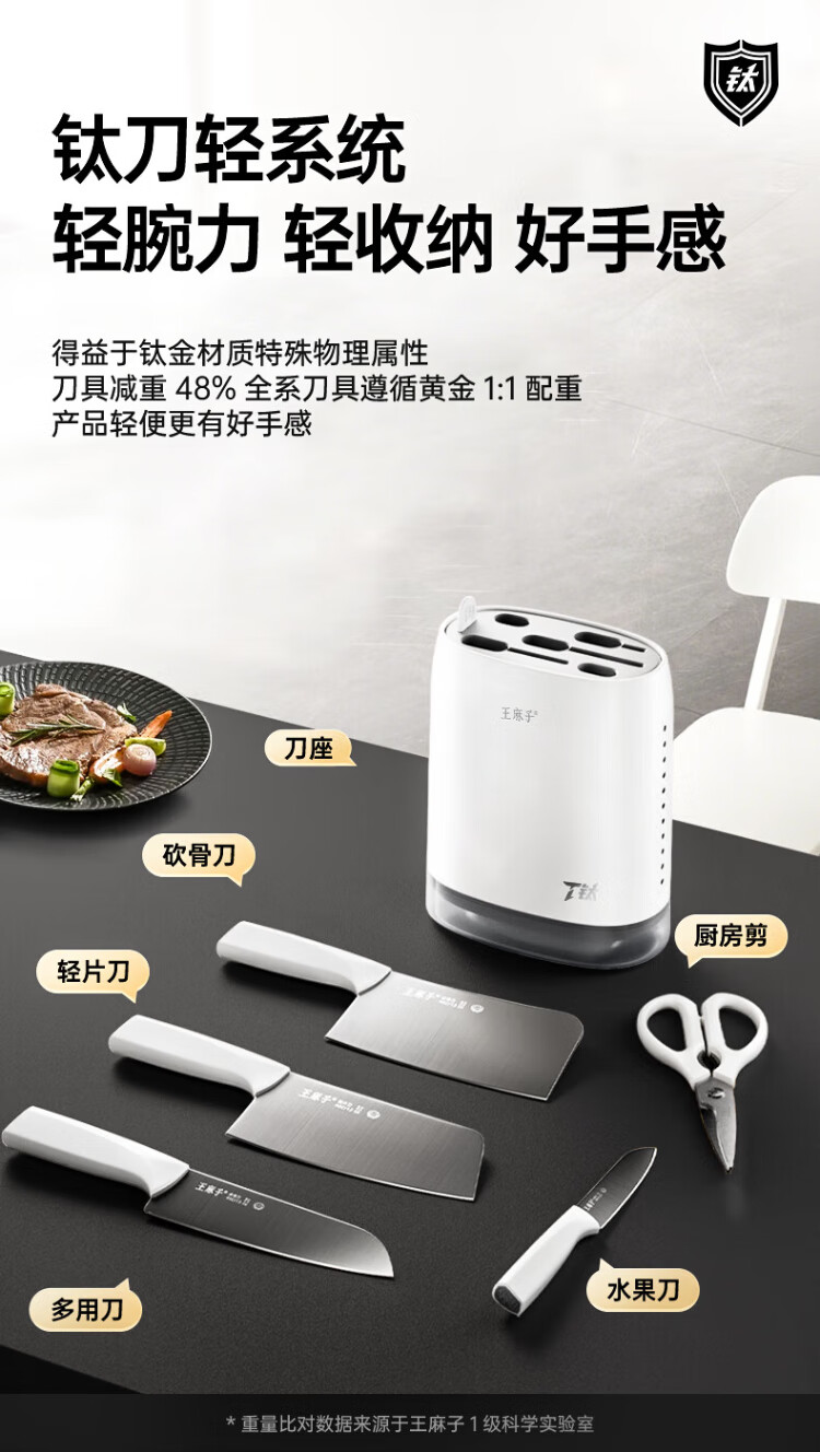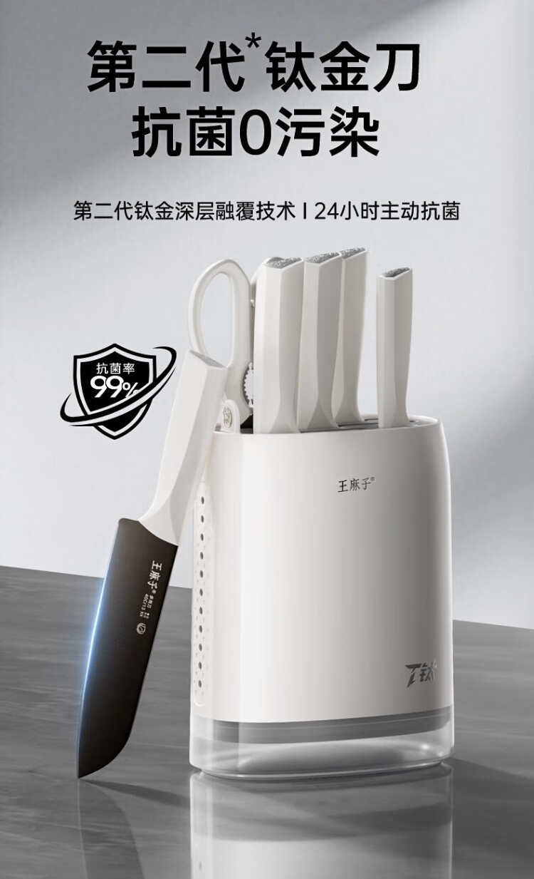 Wang Mazi titanium knife set, household kitchen knives, kitchen utensils, chopping knives, bone knives, fruit knives, kitchen utensils and knives, complete set, titanium antibacterial and anti-rust