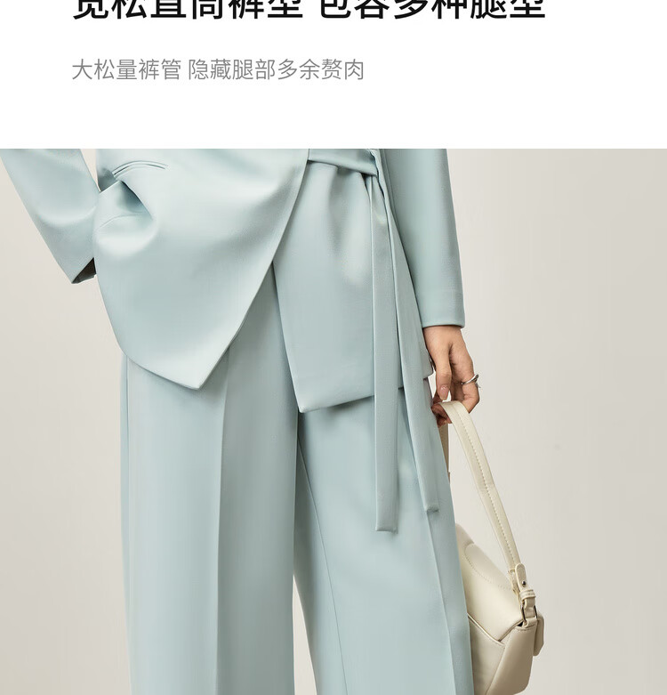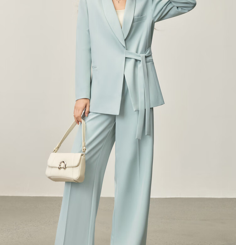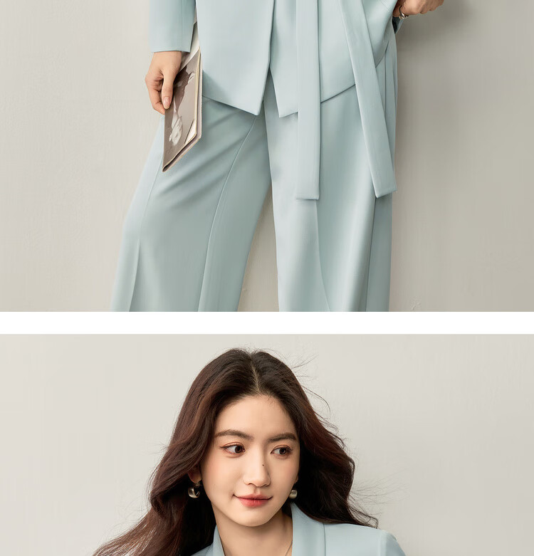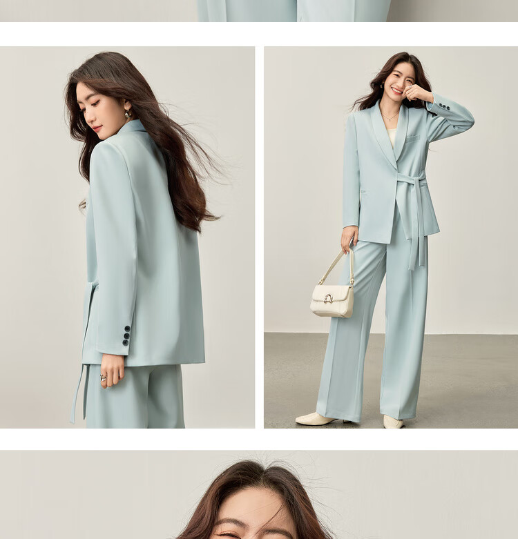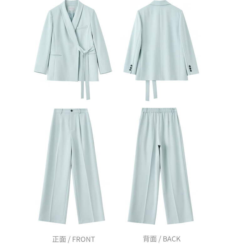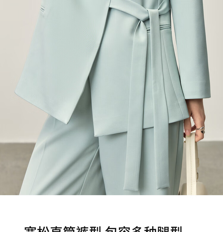 Shandubila autumn commuting women's suit green fruit collar belted waist suit jacket with single pleat loose straight trousers
