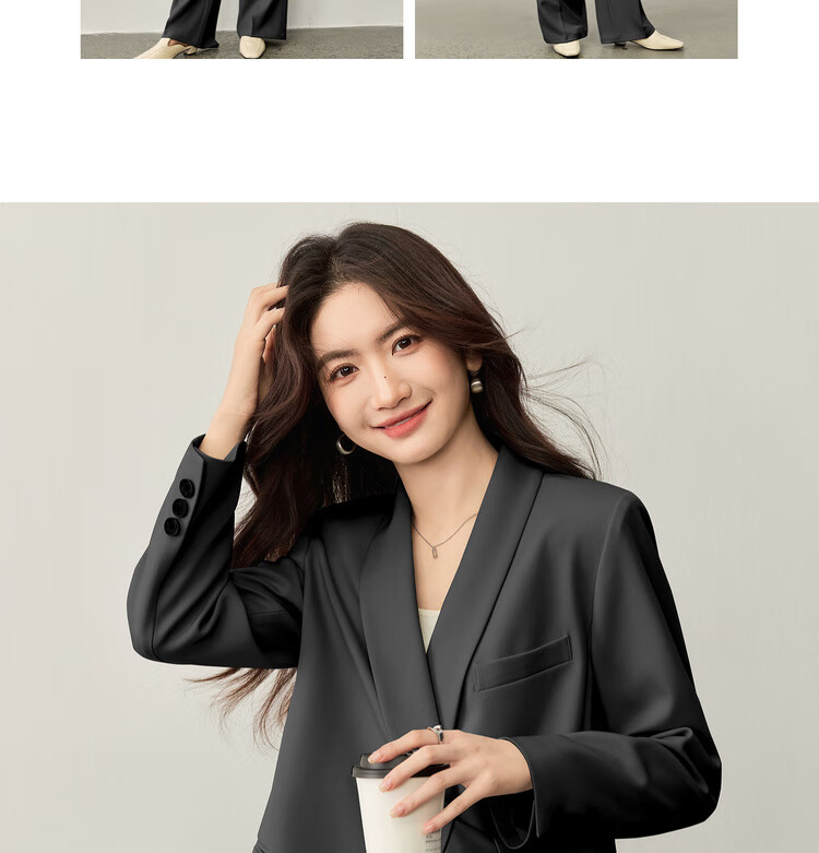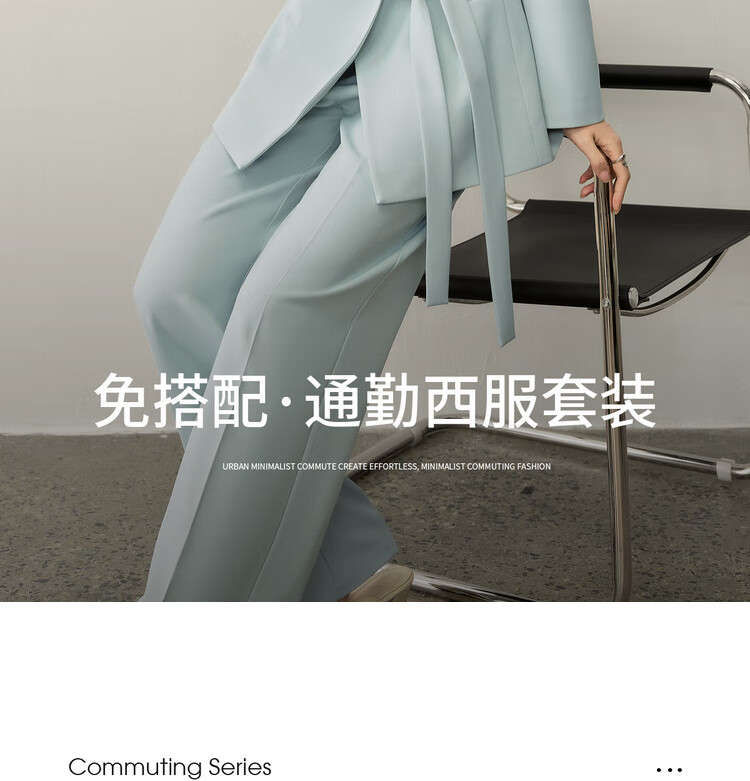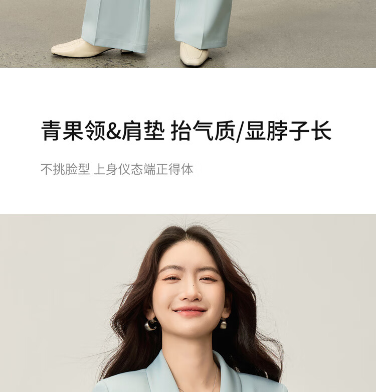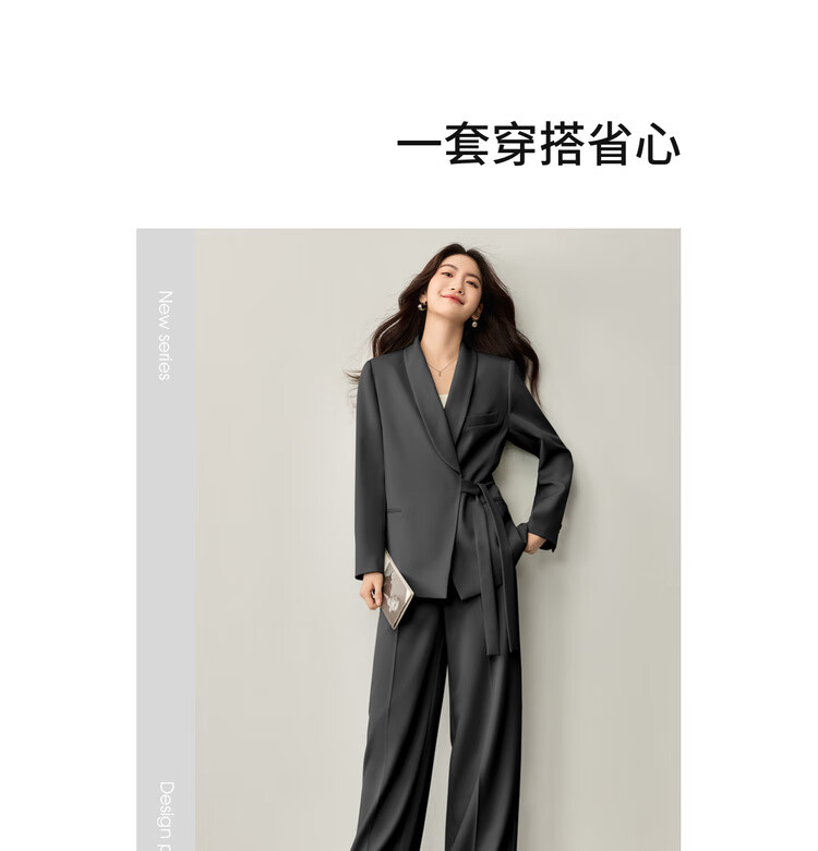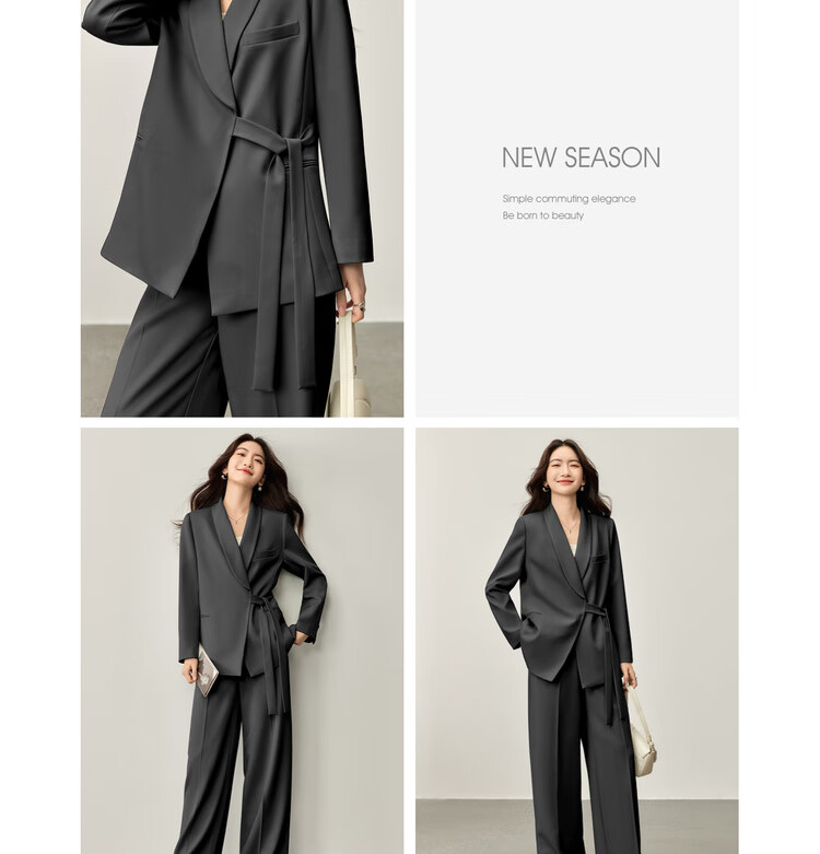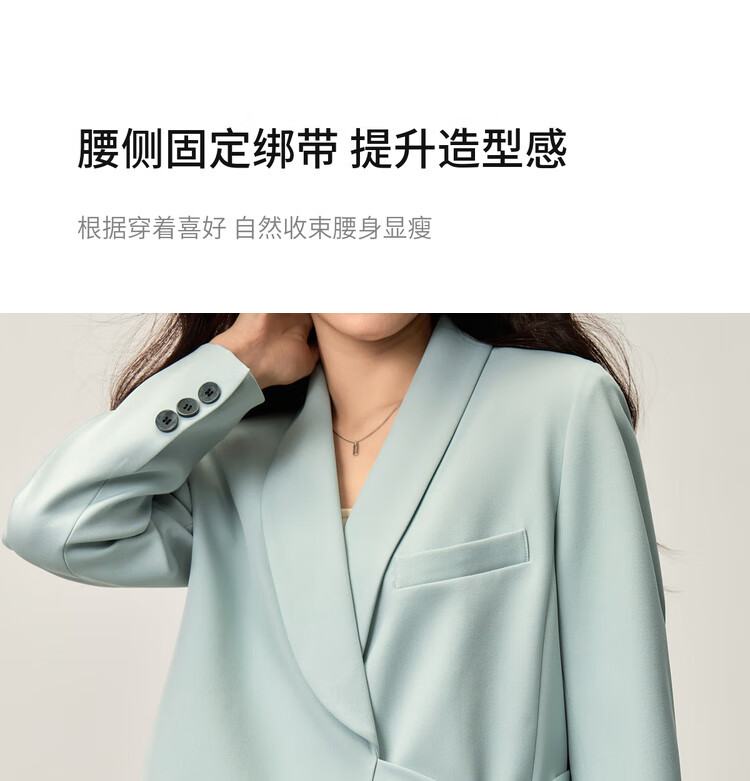 Shandubila autumn commuting women's suit green fruit collar belted waist suit jacket with single pleat loose straight trousers