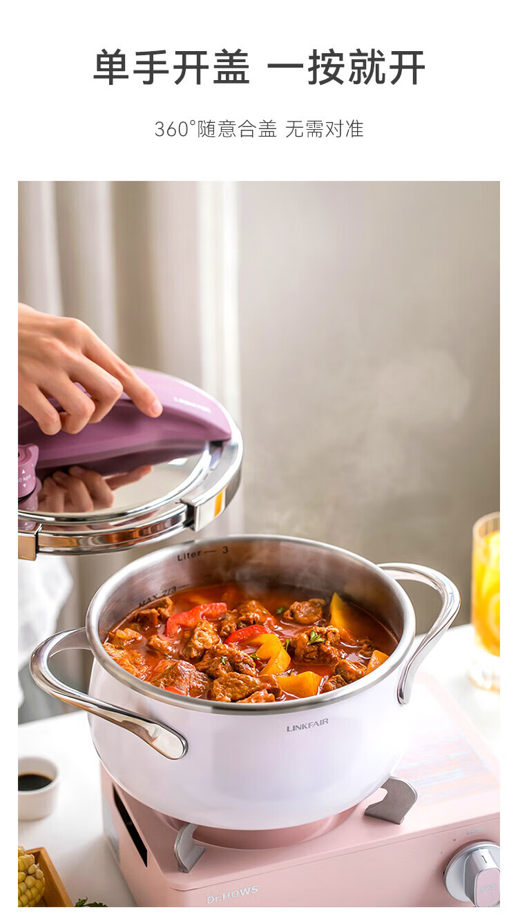 Lingfeng household pressure cooker explosion-proof pressure cooker small multi-functional mini stainless steel one-hand opening and closing gas induction cooker