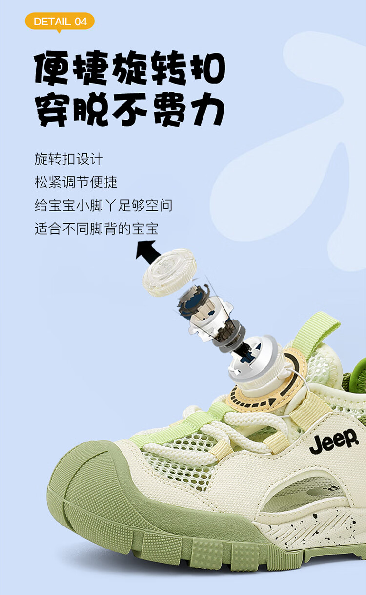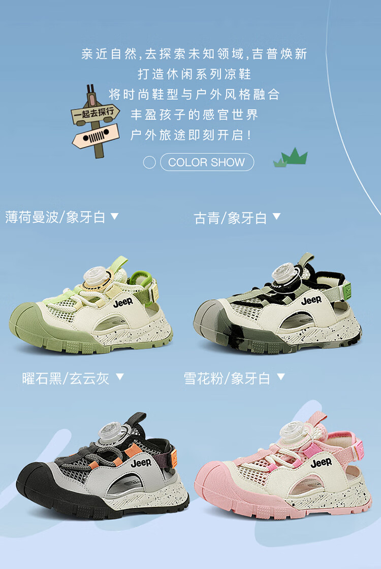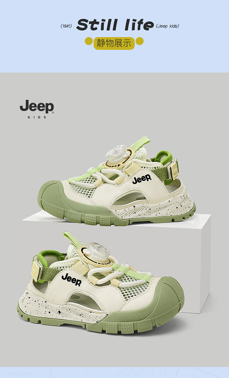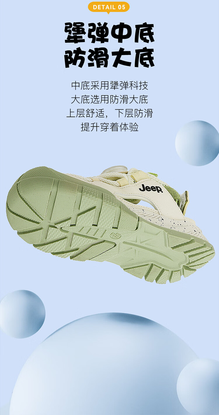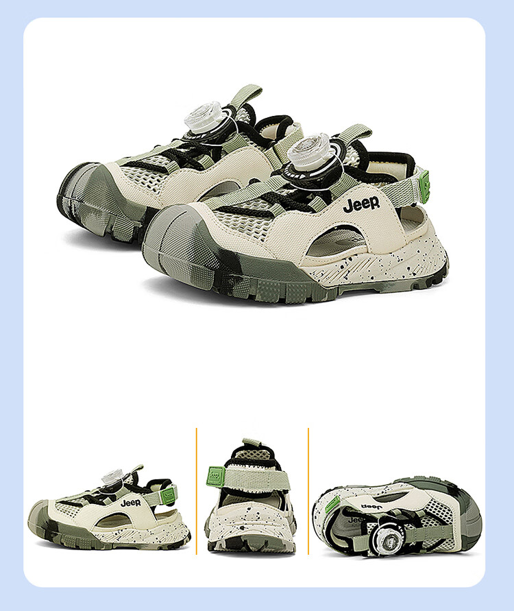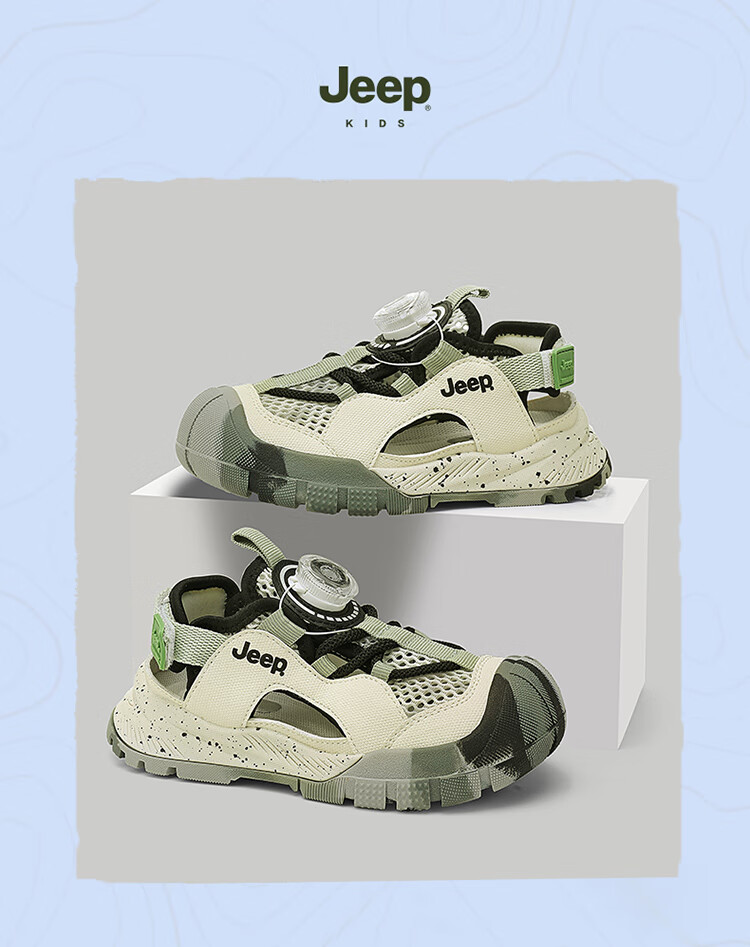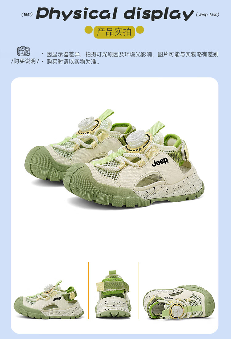 JEEP Jeep Children's Sports Sandals Baotou Knob Buckle Boys' Shoes Girls' Beach Shoes Mint Mambo/Ivory White 30