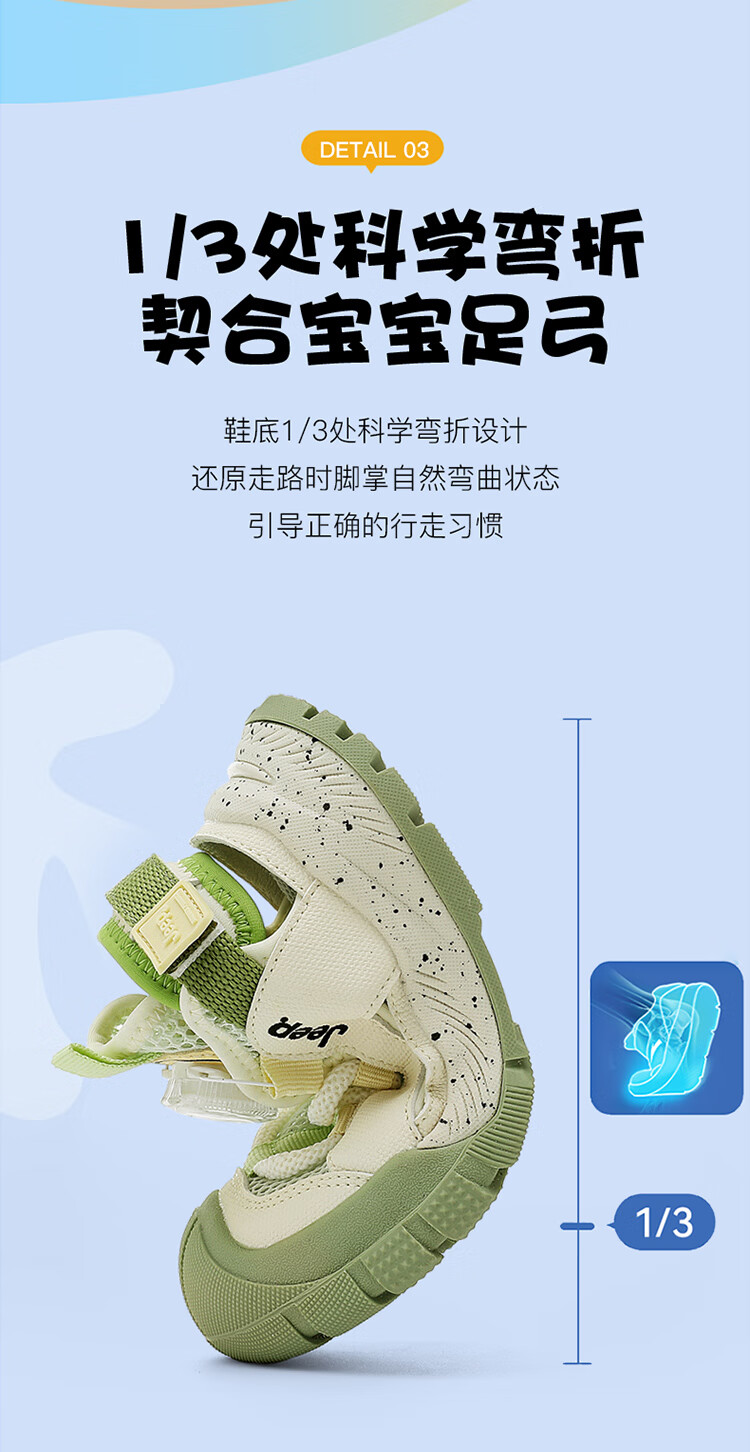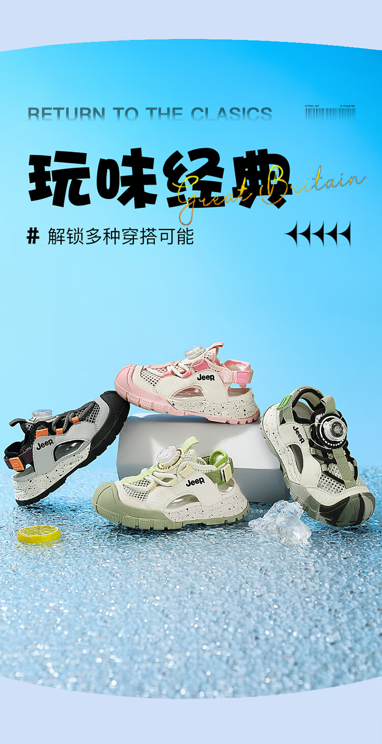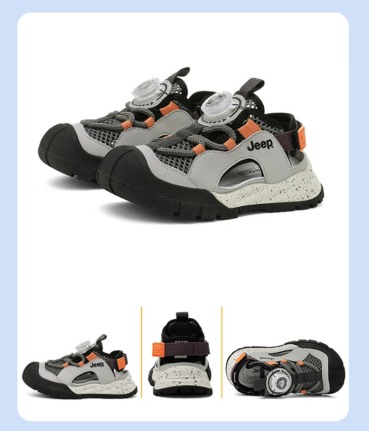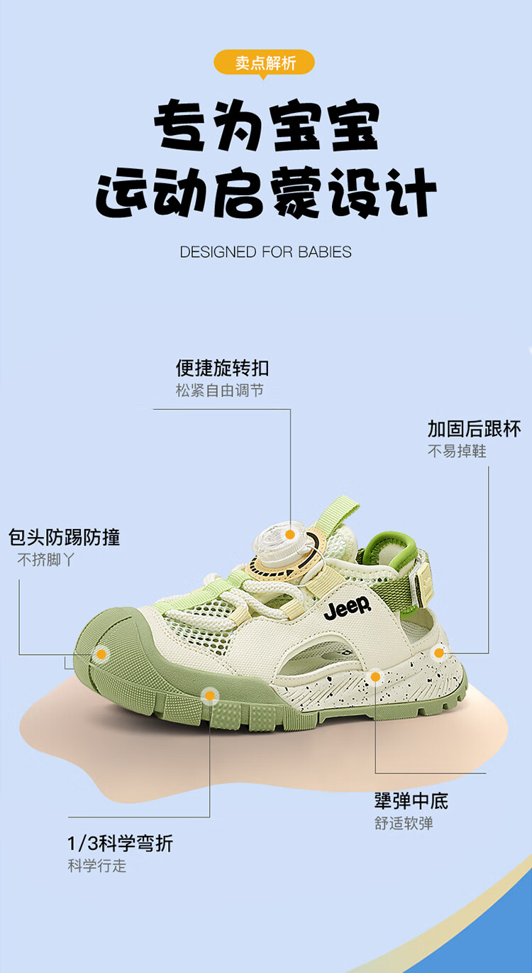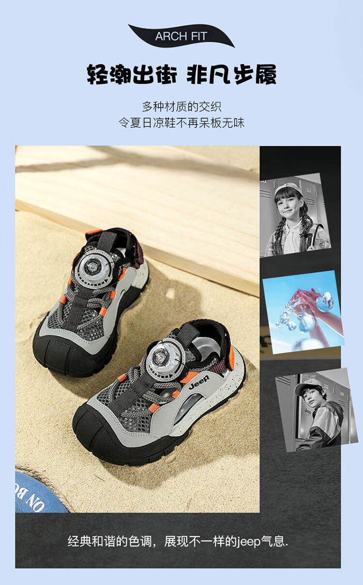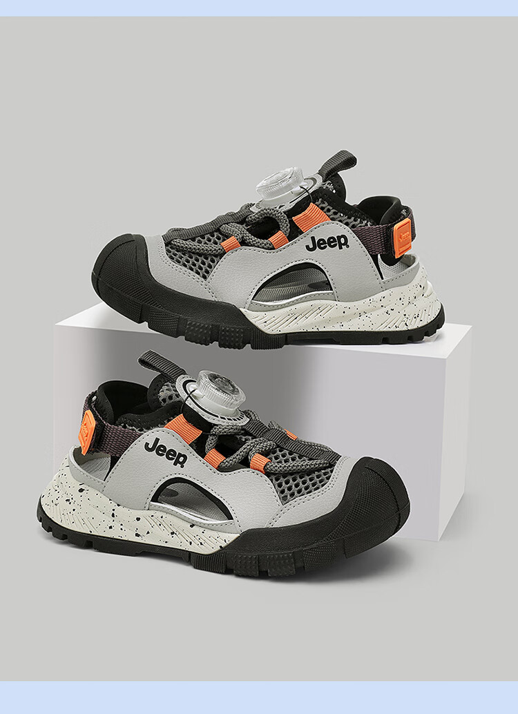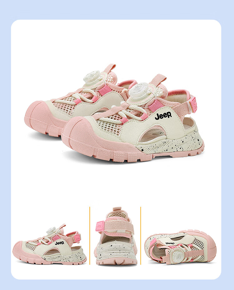 JEEP Jeep Children's Sports Sandals Baotou Knob Buckle Boys' Shoes Girls' Beach Shoes Mint Mambo/Ivory White 30