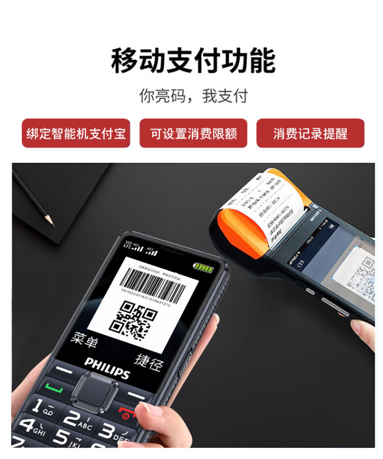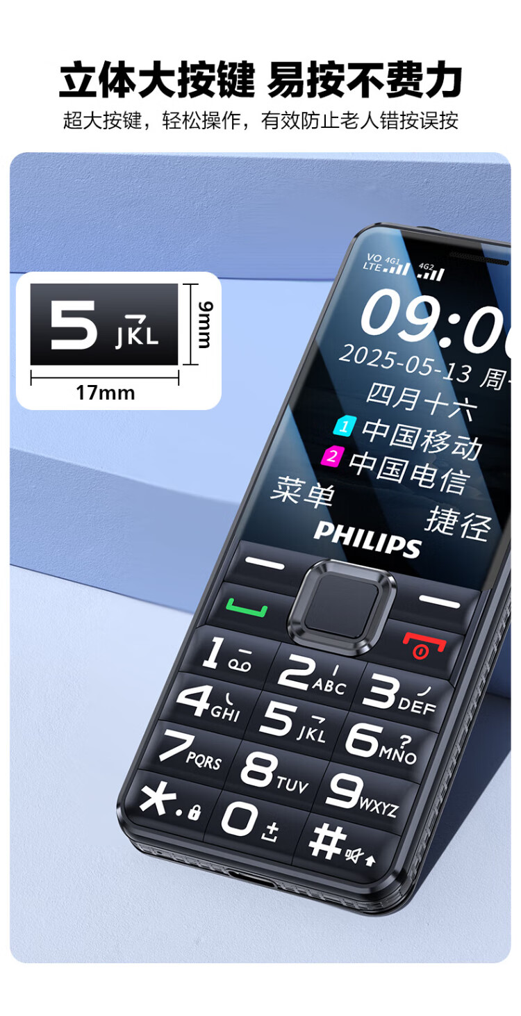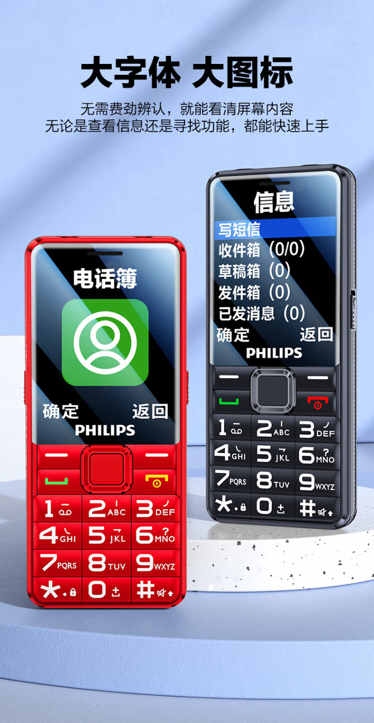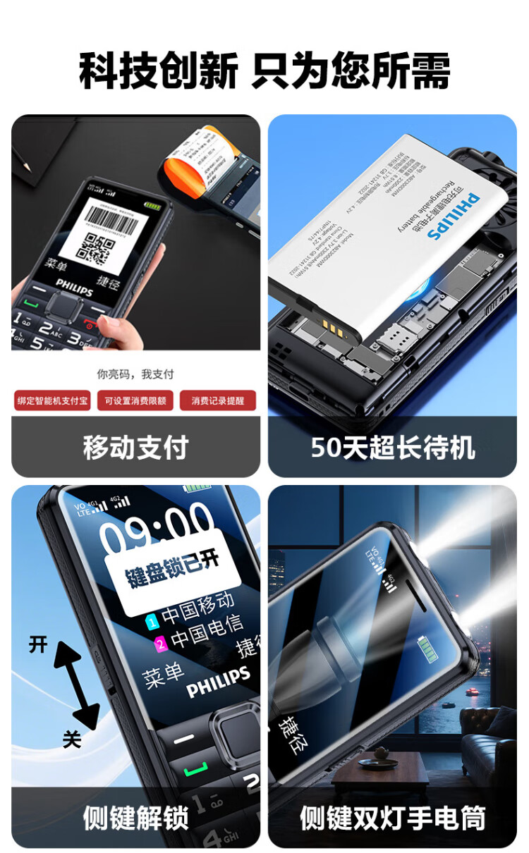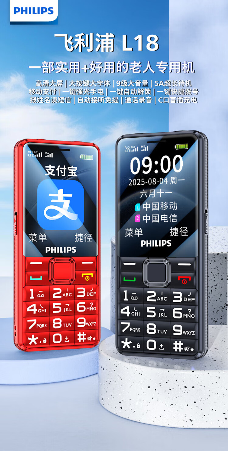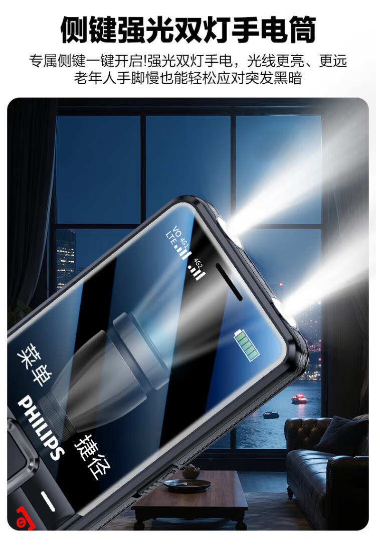 Philips (PHILIPS) L18 mobile phone for the elderly, ultra-long standby, large characters, loud straight buttons, mobile, China Unicom, Telecom, student quitting the Internet, no game payment function, dedicated mobile phone backup, Starry Sky Black