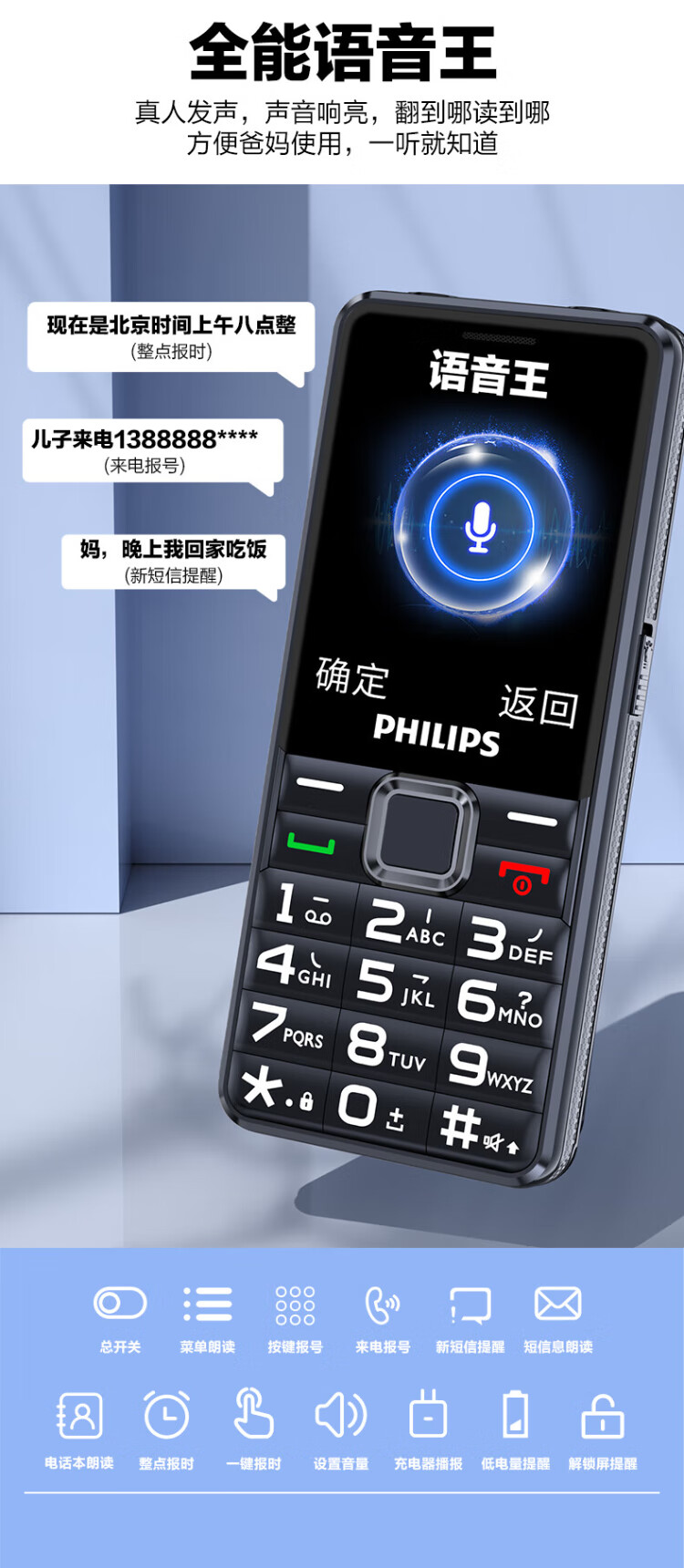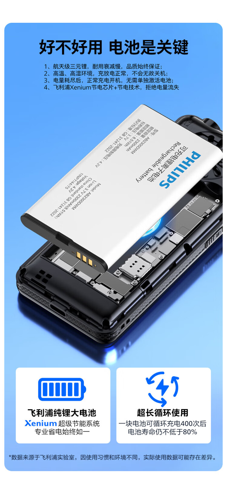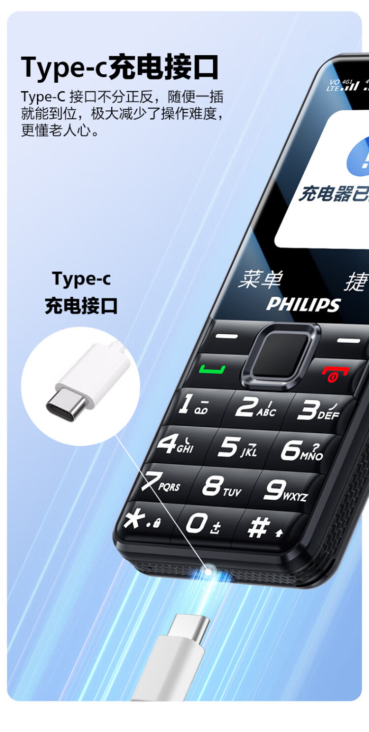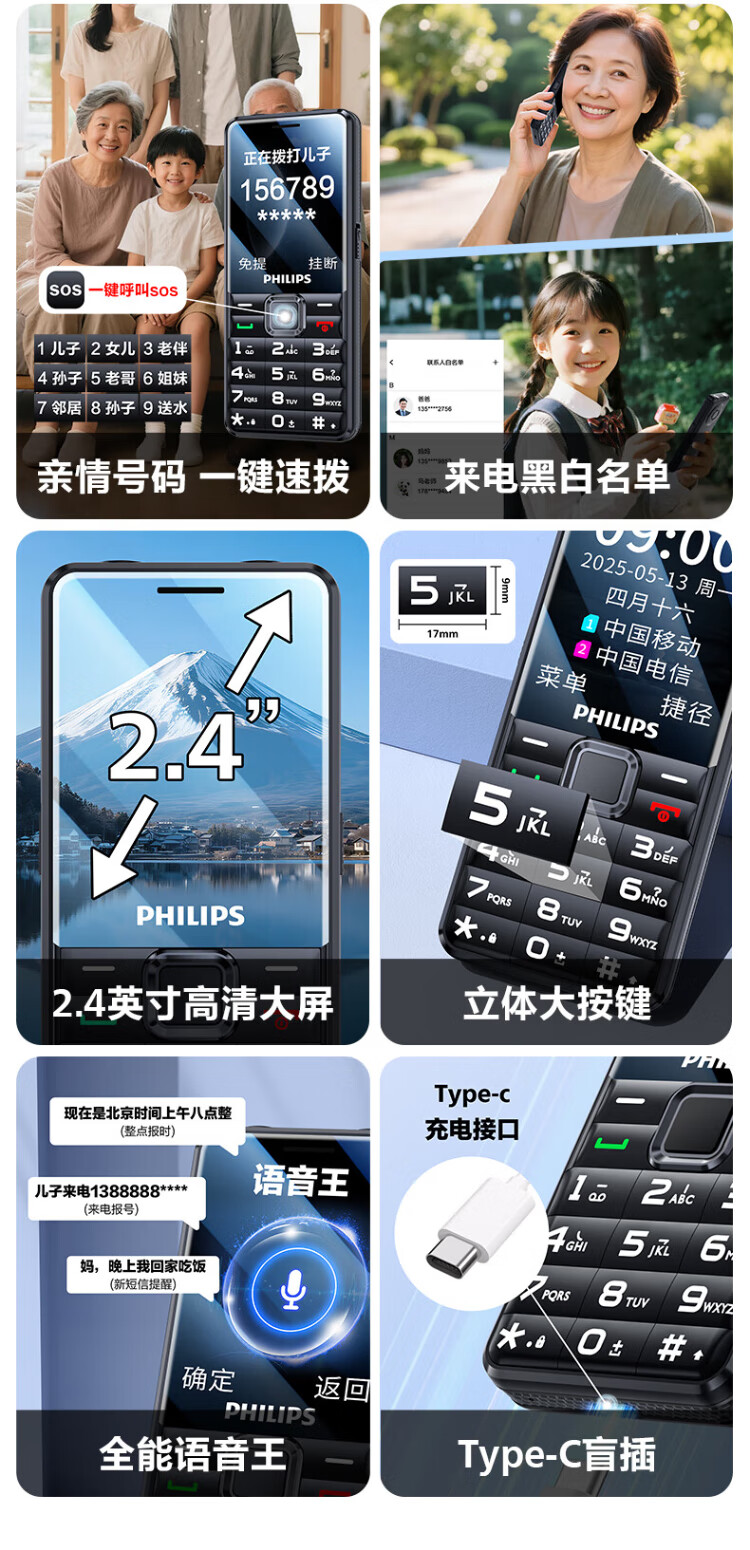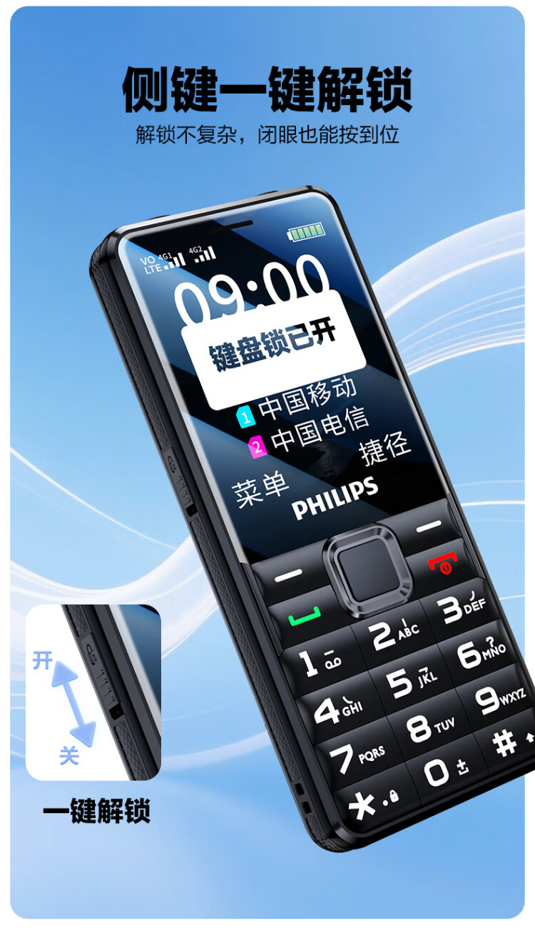 Philips (PHILIPS) L18 mobile phone for the elderly, ultra-long standby, large characters, loud straight buttons, mobile, China Unicom, Telecom, student quitting the Internet, no game payment function, dedicated mobile phone backup, Starry Sky Black