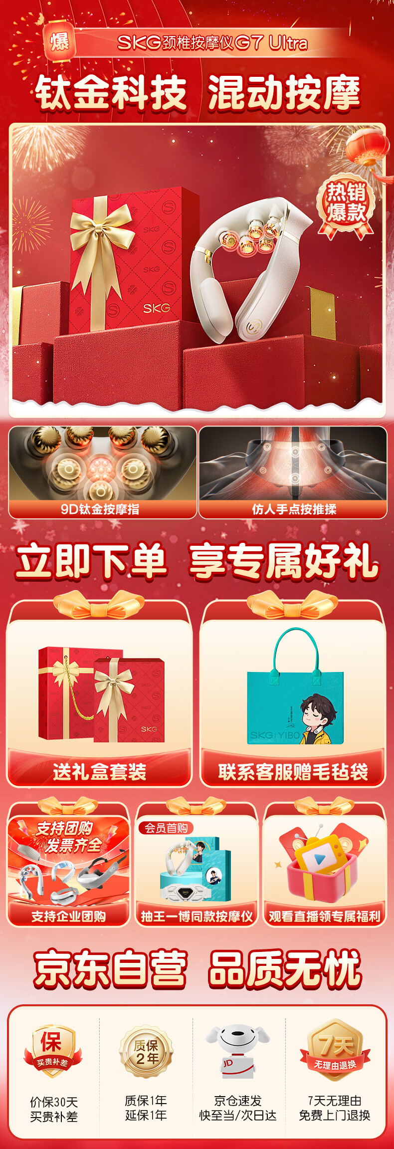 Skg cervical spine massager G7Ultra gift box Wang Yibo same style shoulder and neck protection neck titanium folding pulse massager birthday and Christmas gift for boyfriend and girlfriend