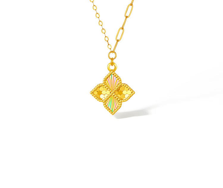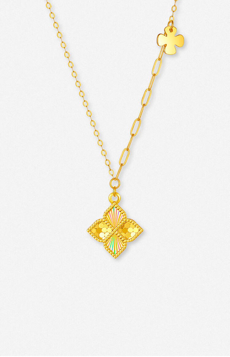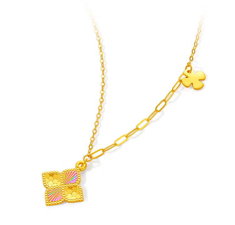 Saturday Blessing Yellow 18K Gold Necklace Women's Colorful Four-Leaf Clover Necklace Birthday Gift C0621041 40+5cm