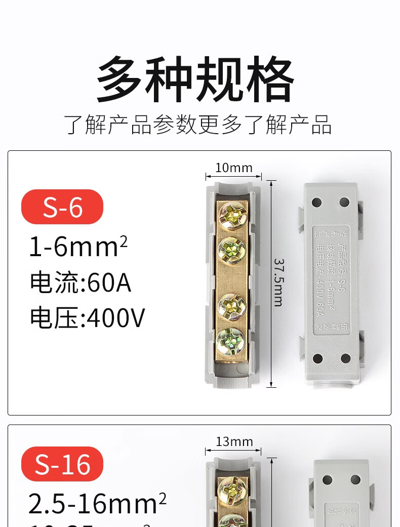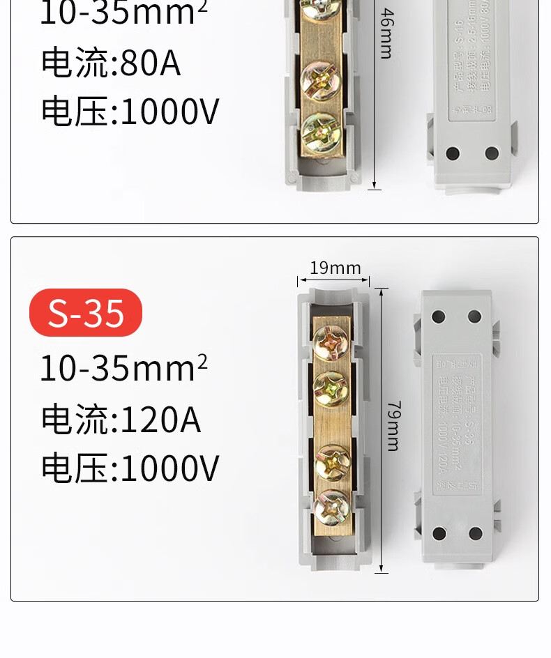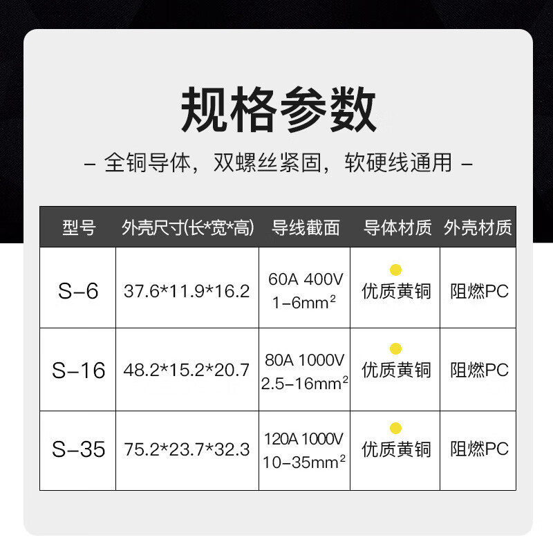 Andatong high-power terminal block brass screw-fixed splicable butt terminal copper transition terminal block S-6 1-6 square 5 pieces
