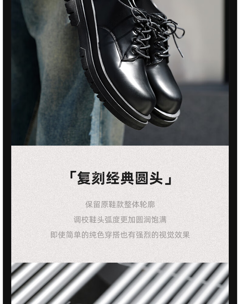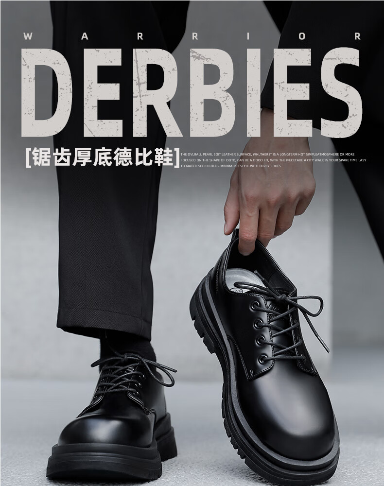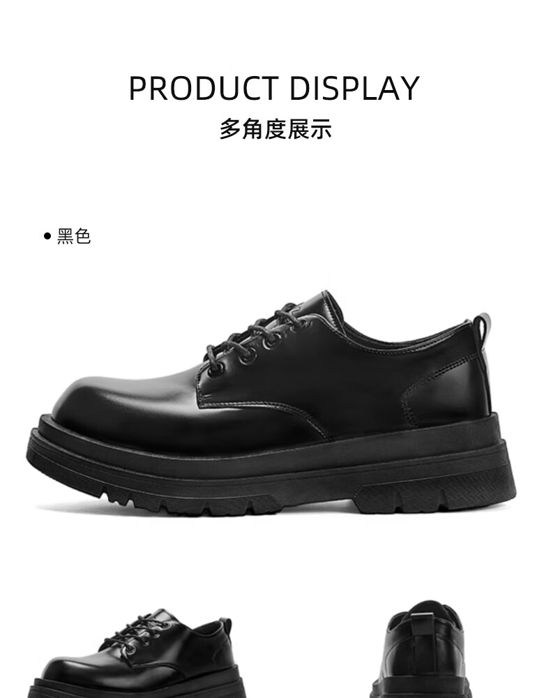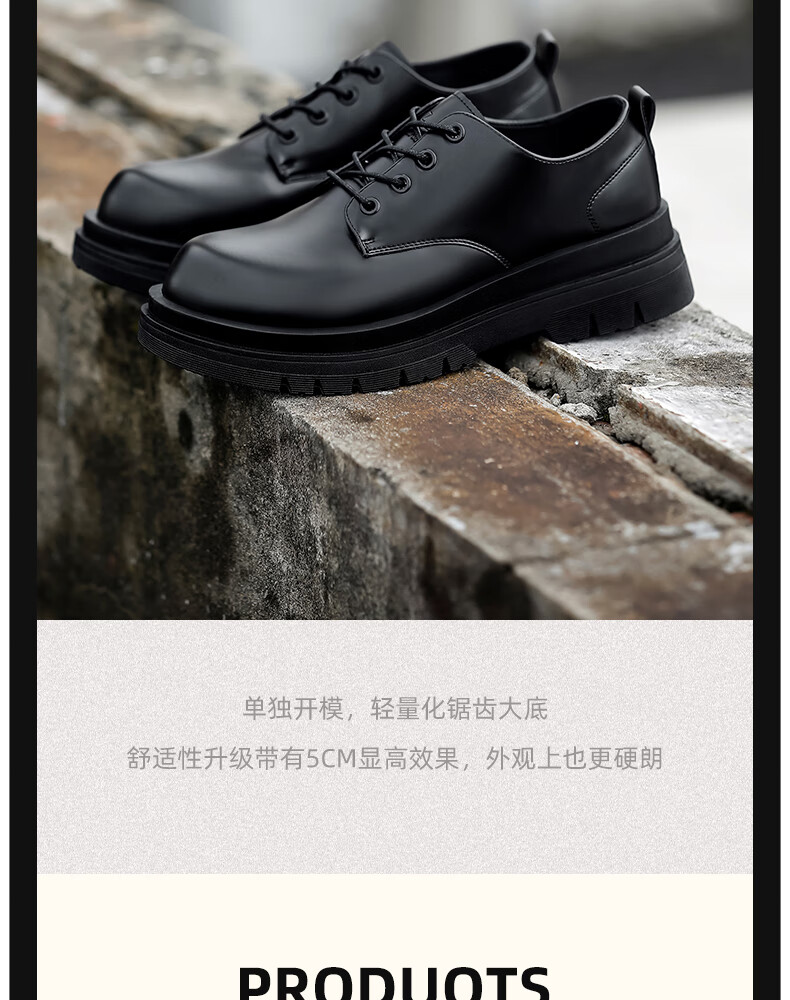 Pull back official leather shoes men's black British style Martin boots thick sole heightening casual derby shoes 2636 glossy black 41