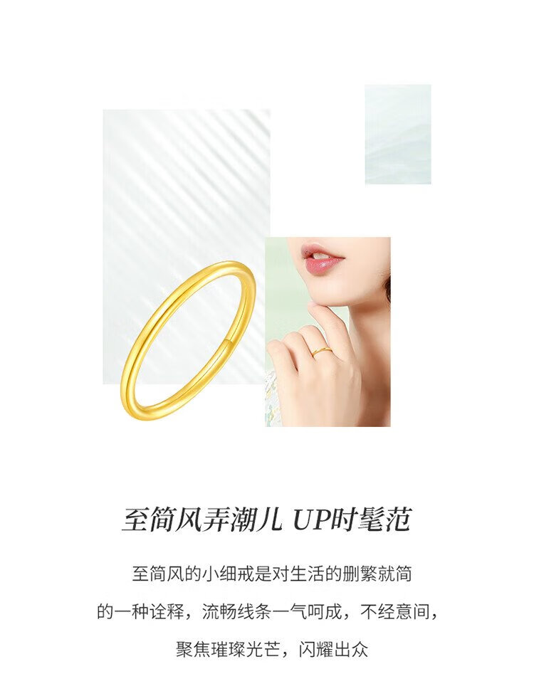 Mengjinyuan 18k gold ring color gold Sansheng III glossy ring ring stackable for women as a gift