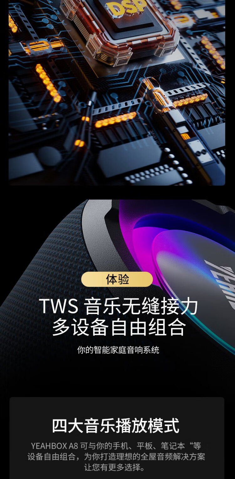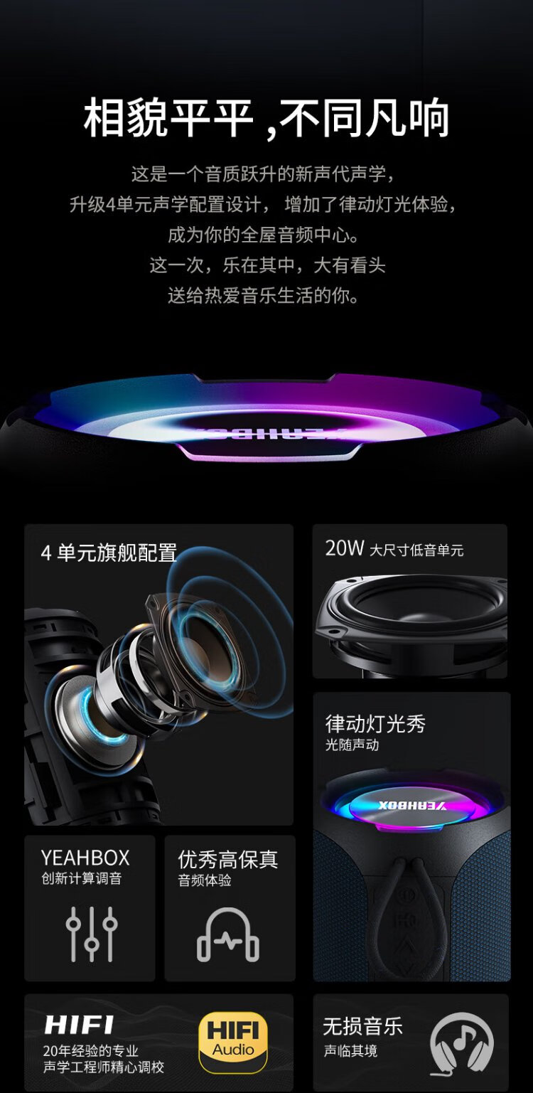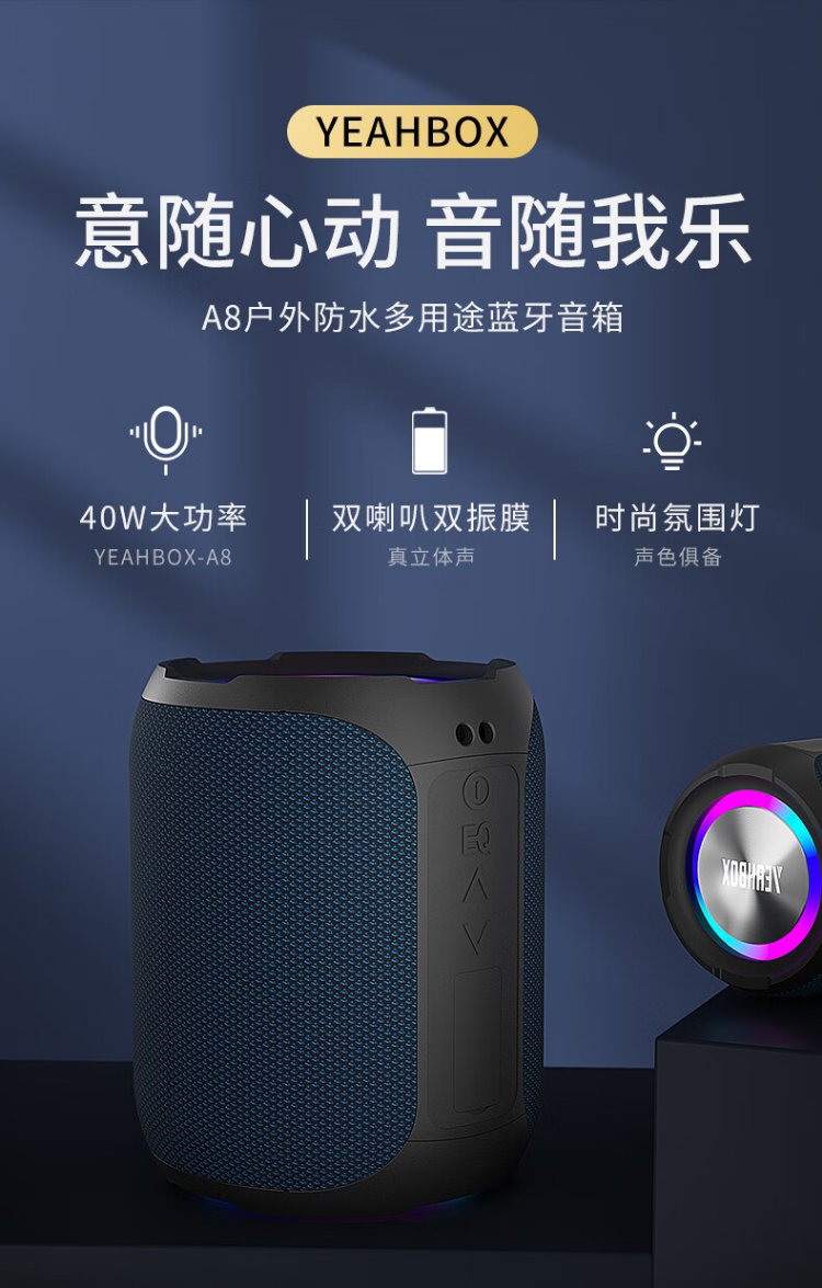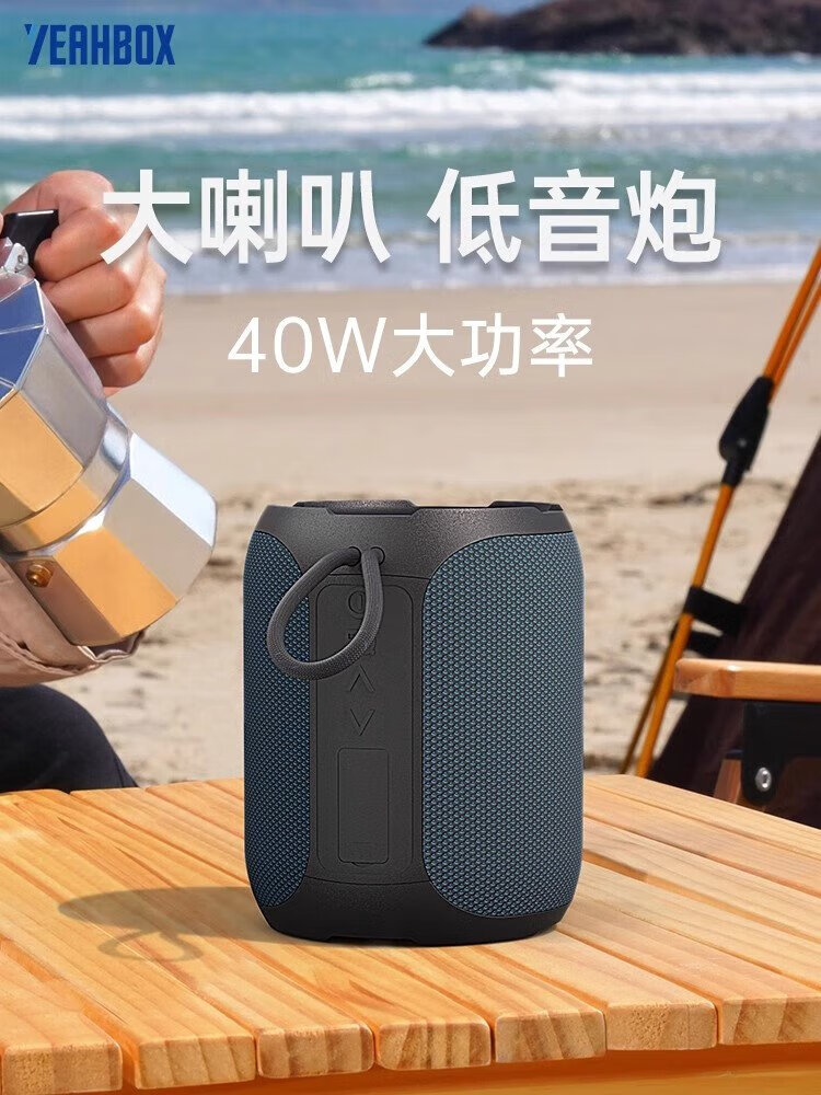 YEAHBOX A8 Bluetooth speaker 40W high power outdoor portable heavy bass small steel cannon speaker waterproof small audio high volume wireless Bluetooth speaker