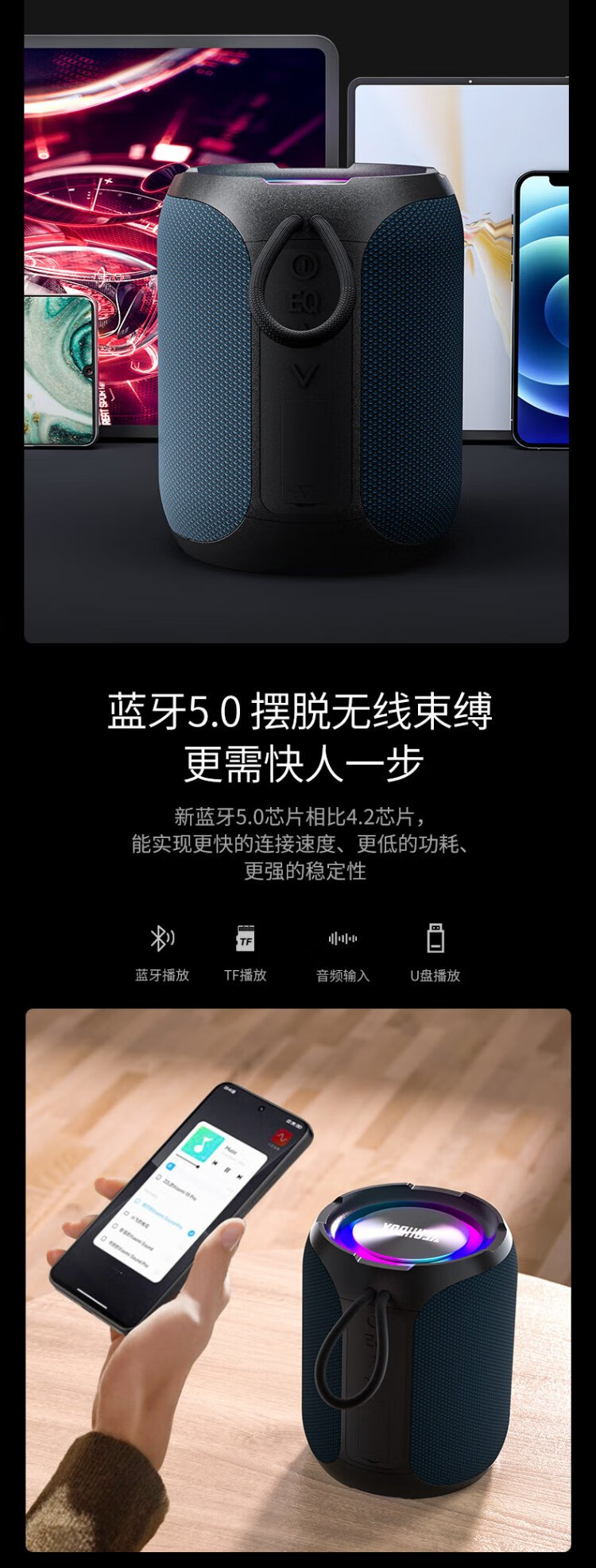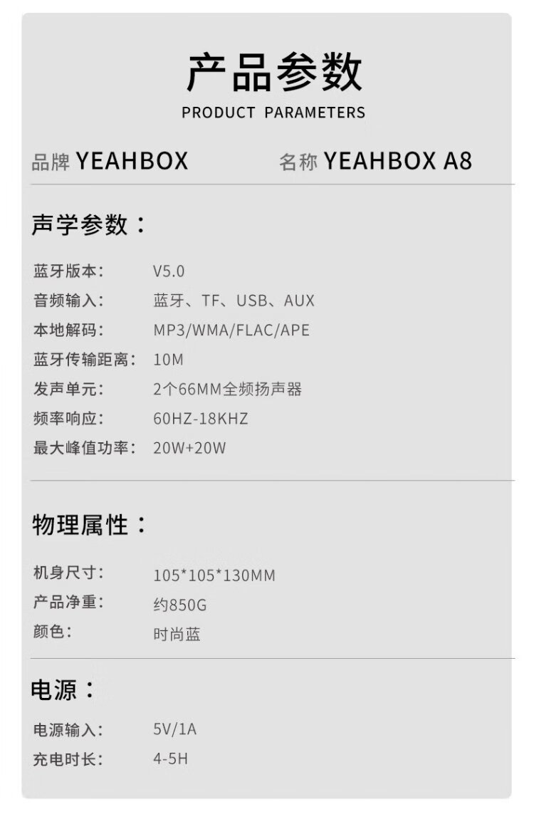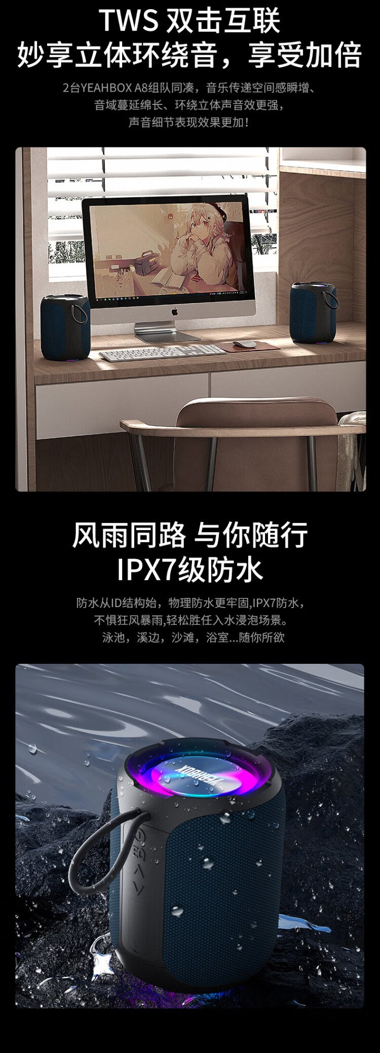 YEAHBOX A8 Bluetooth speaker 40W high power outdoor portable heavy bass small steel cannon speaker waterproof small audio high volume wireless Bluetooth speaker