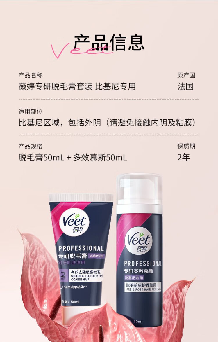 Veet Hair Removal Cream for Private Parts Bikini Series Set Contains Multi-effect Mousse Private Part Hair Removal Cream for Men and Women