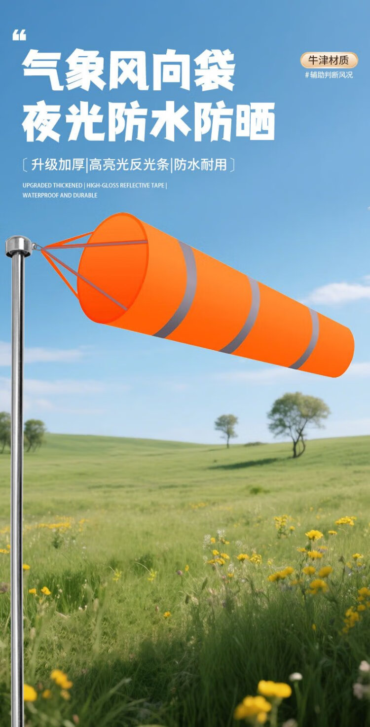 Mandelai Wind Vane Outdoor Wind Sock Meteorological Industrial Wind Direction Belt Cloth Bag Wind Direction Detection Petrochemical Wind Direction Flag-Small without Pillar