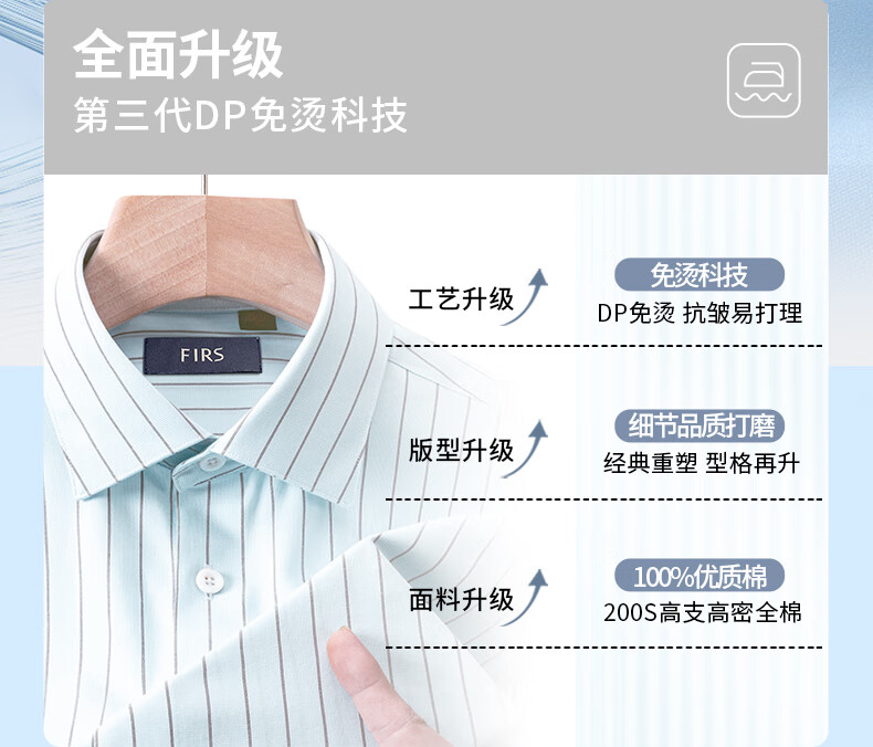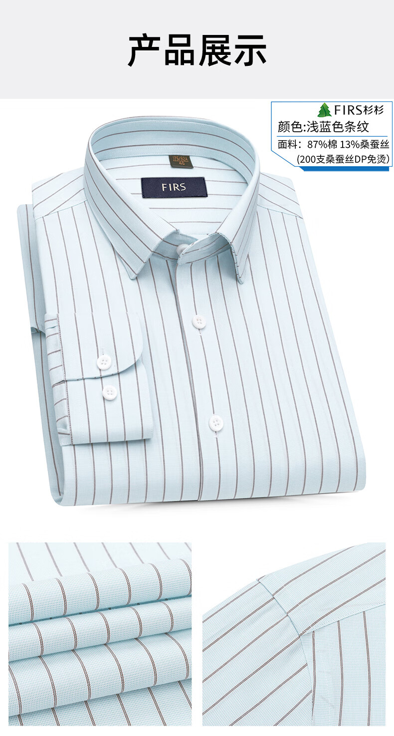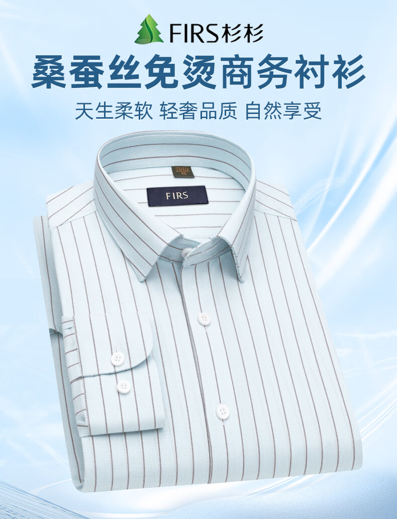 Shanshan (FIRS) 200 count mulberry silk DP no-iron shirt men's long-sleeved casual business high-end shirt card strip 41
