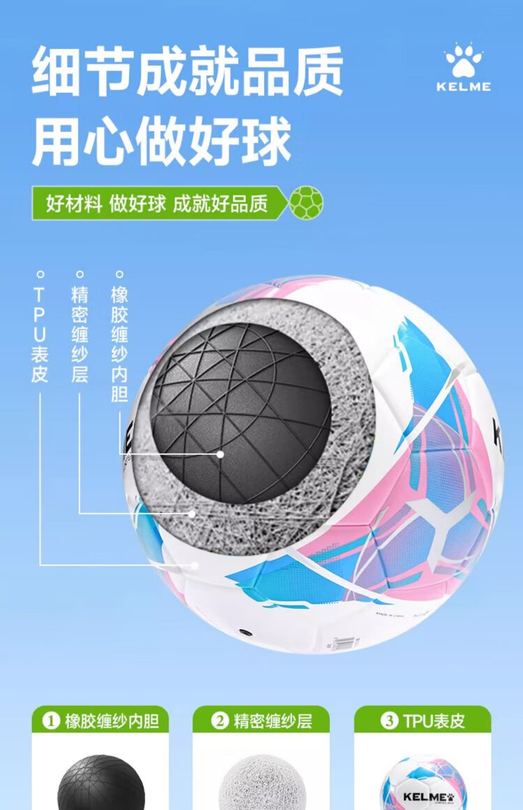 KELME Thermal Bonded Football Adult Professional Competition Training Wear-Resistant Standard No. 5 Ball Dark Blue Red No. 5