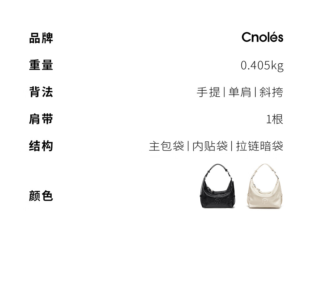 Cnoles Xiaofeng bag hobo bag women's niche high-end crossbody tote bag commuter armpit bag white