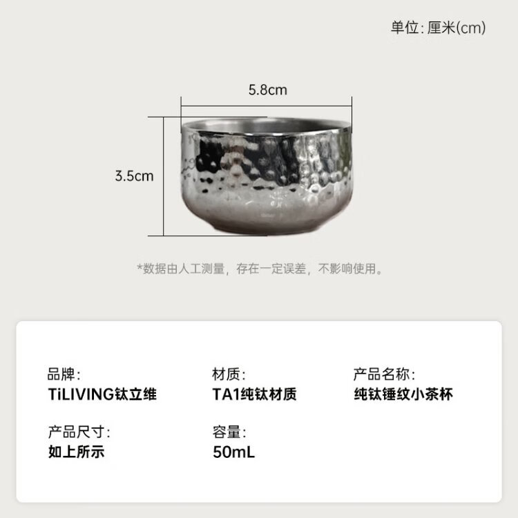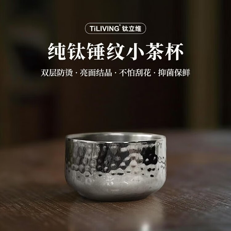 TILIVING Titanium Liwei pure titanium hammer pattern small tea cup Kung Fu tea cup master cup 50ml
