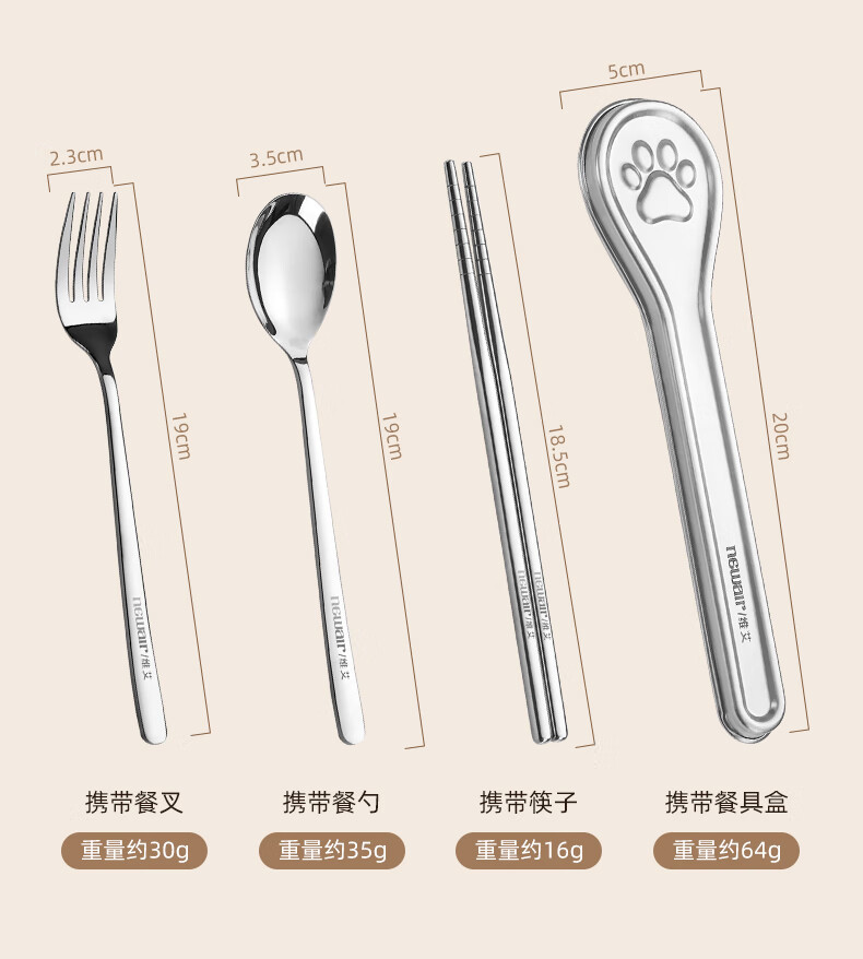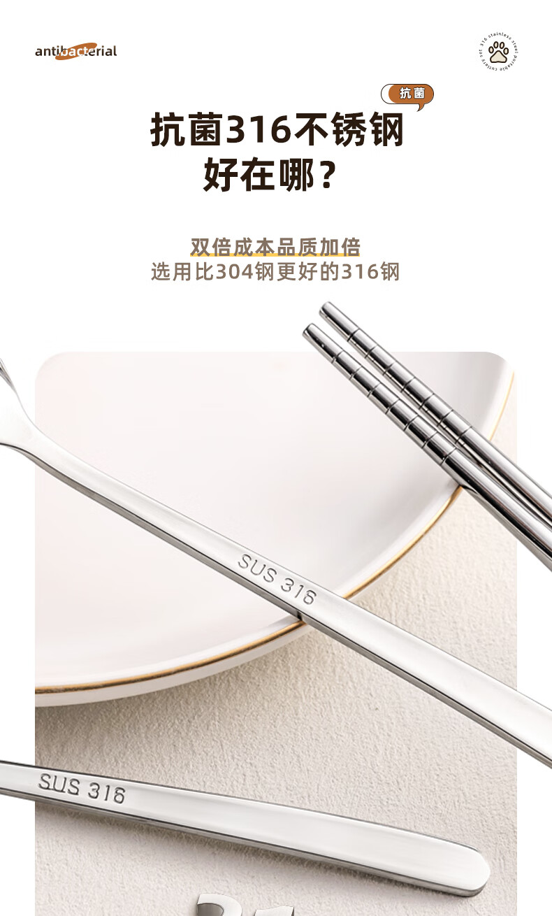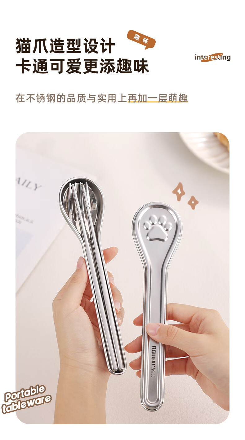 Newair 316 stainless steel chopsticks and spoon set portable cutlery box for children and students 304 storage box three-piece set