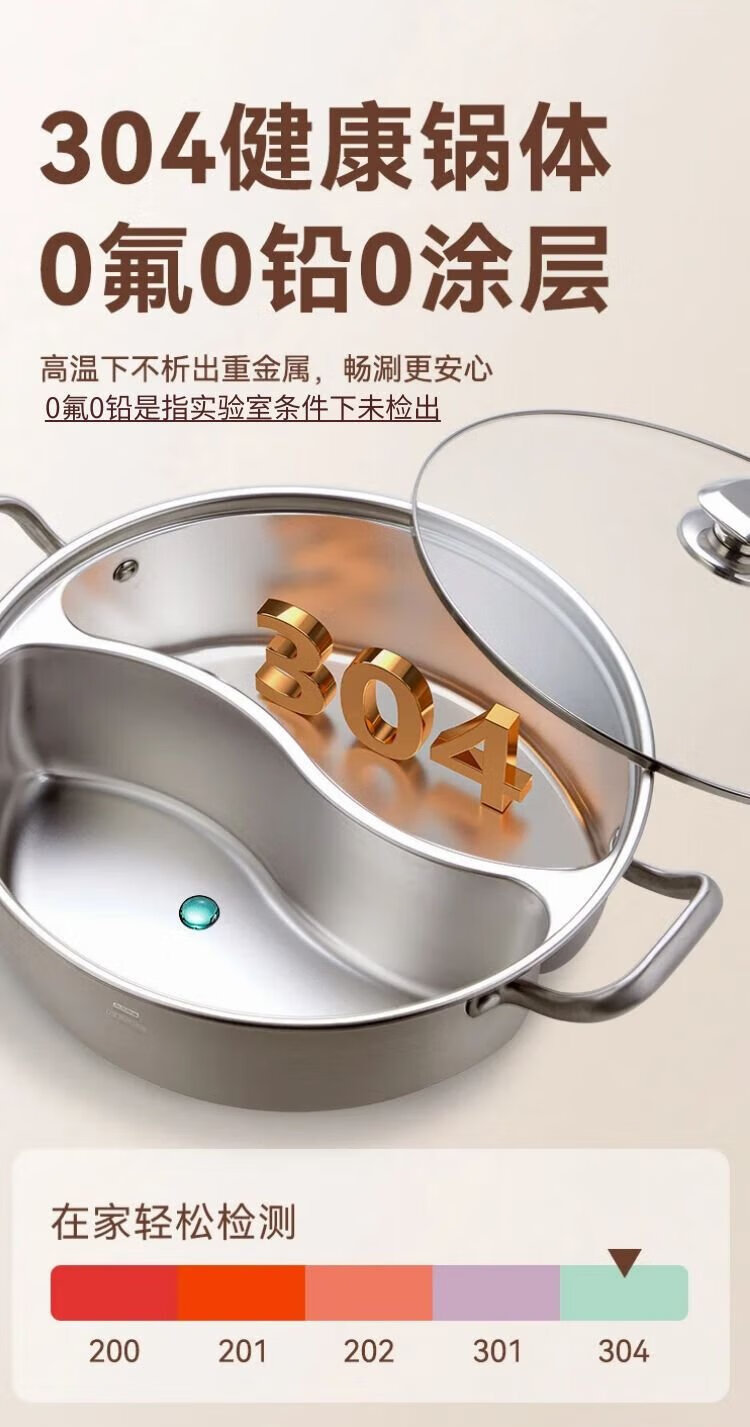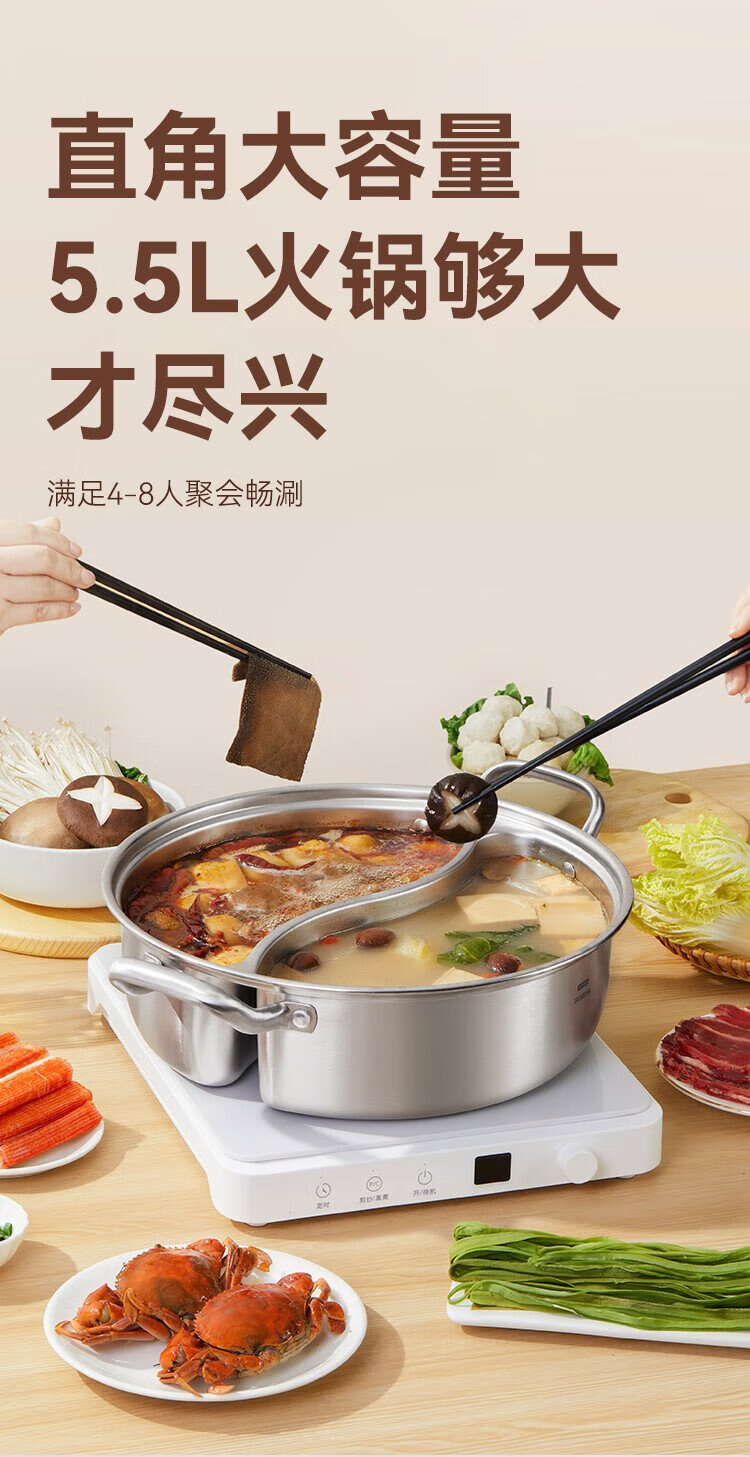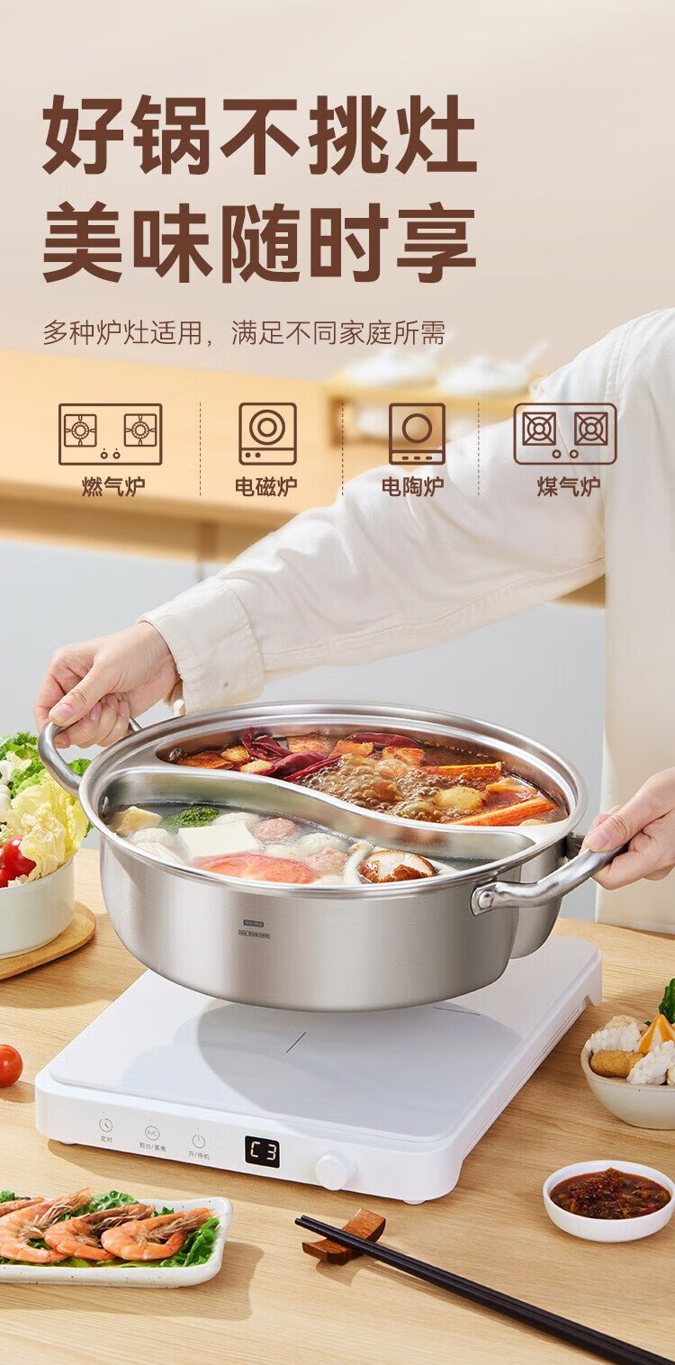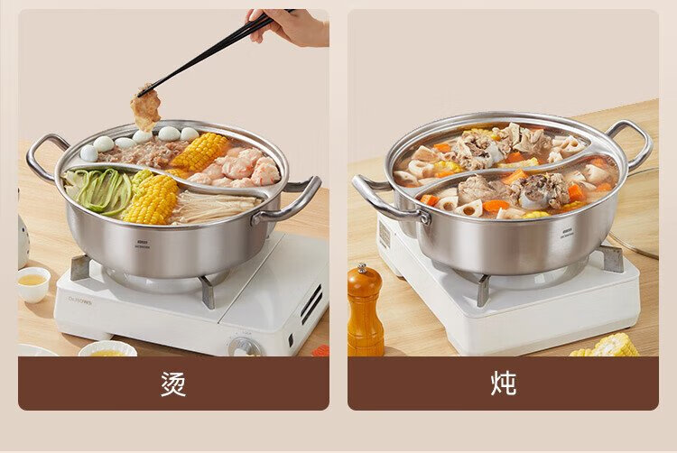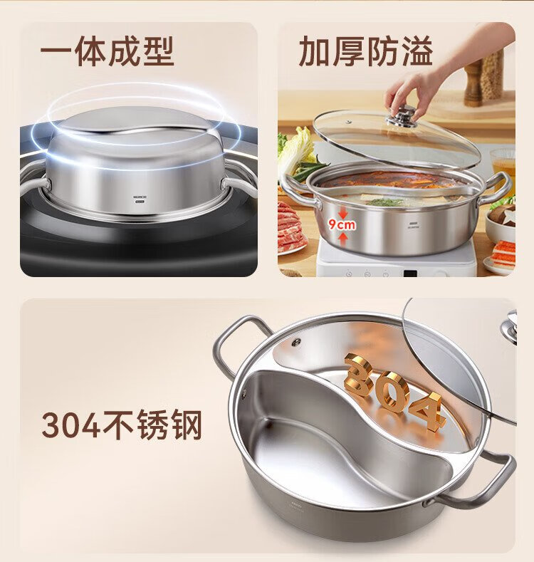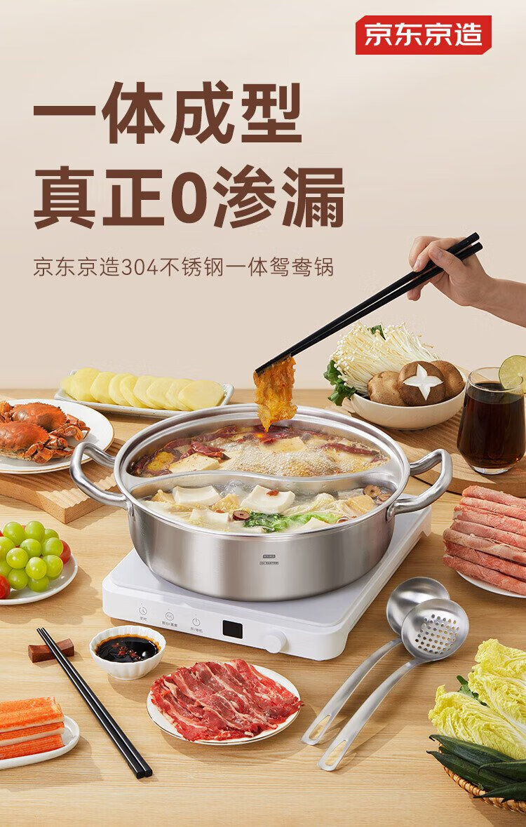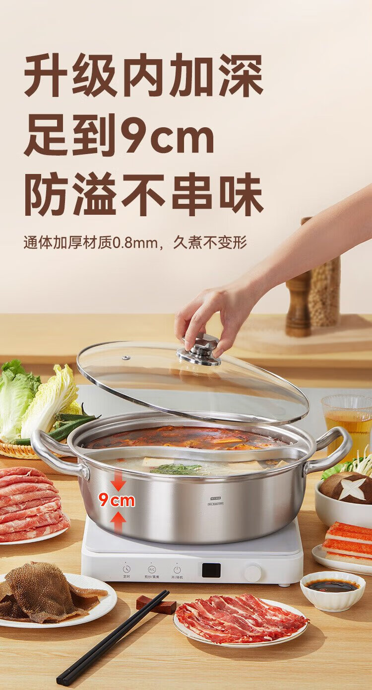 Fabricado en Tokio, Yuanyang Hot Pot 304 cocina de inducción recta de acero inoxidable moldura de una sola pieza engrosada de doble propósito 0 fugas 30 cm