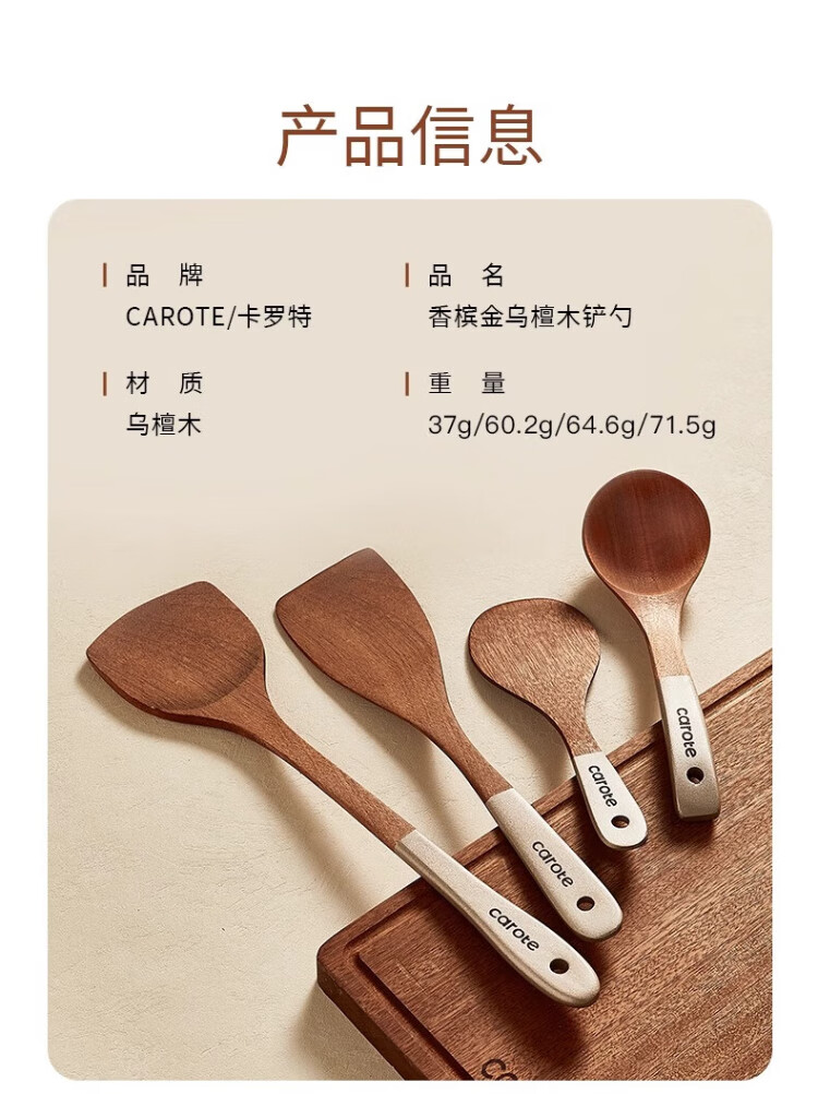 Carrot ebony spatula, non-stick pan, special cooking spatula, high temperature resistant, anti-scalding household wood spatula, wooden spatula kitchen utensils