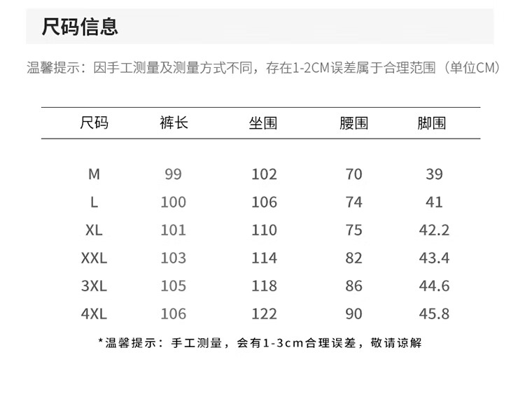 Outseam (cm) 99 cm 101.5 cm 104 cm 106.5 cm 109 cm