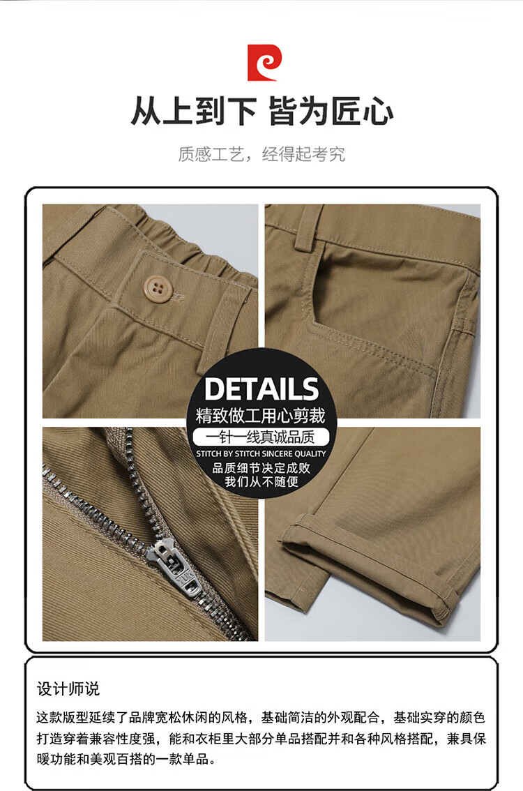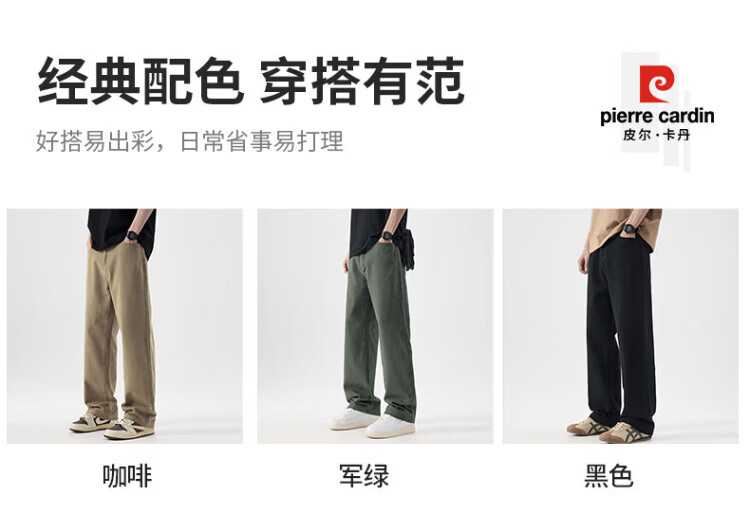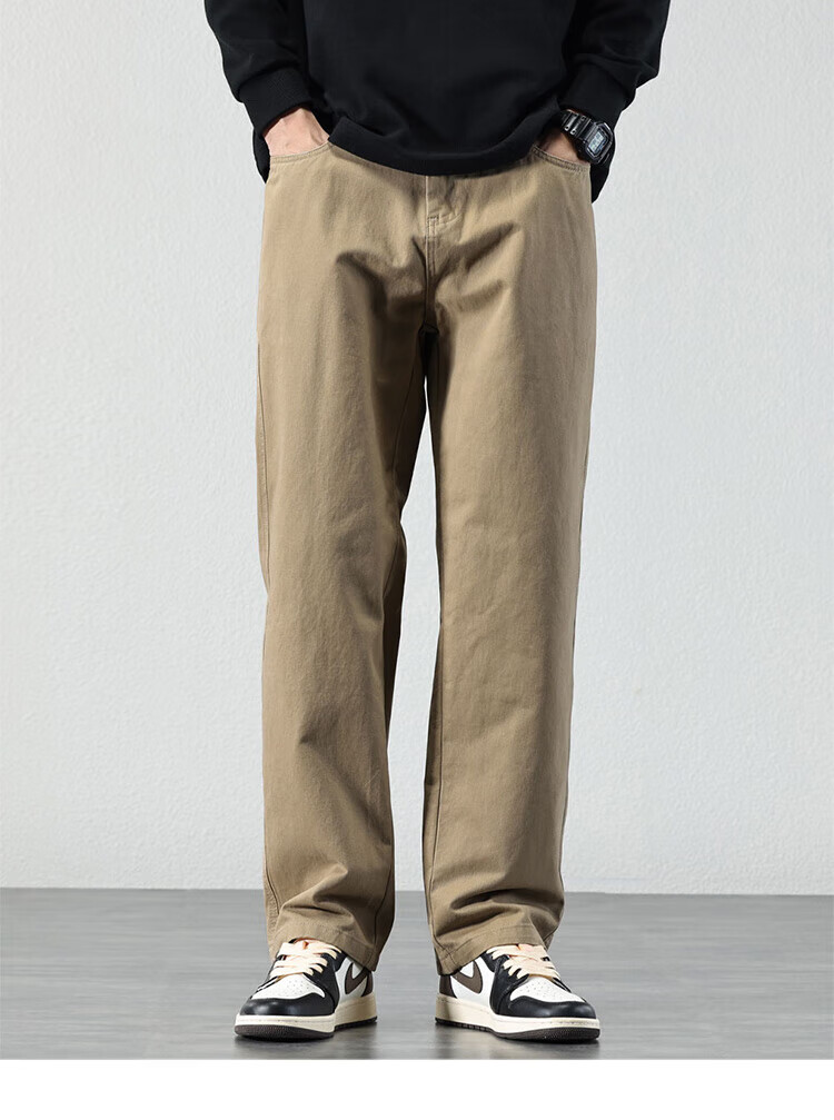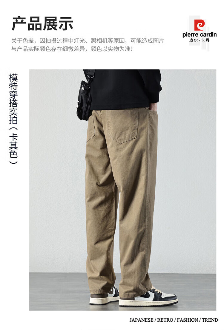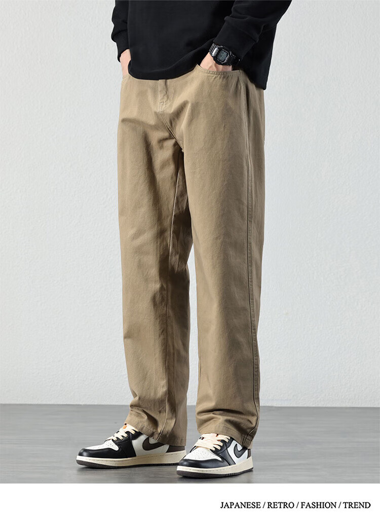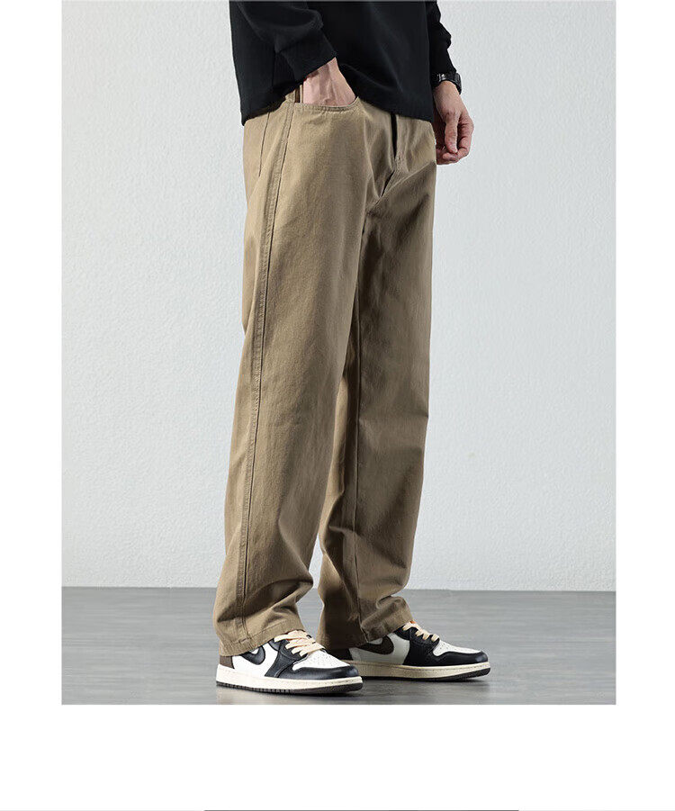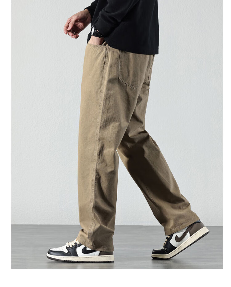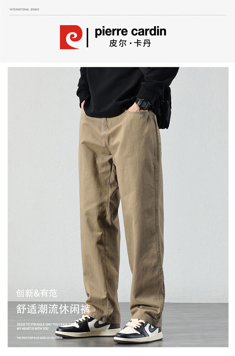 Pierre Cardin Casual Pants Men's Autumn and Winter Loose Straight Pants Men's Heavy Cotton Work Pants Men's Brown XL
