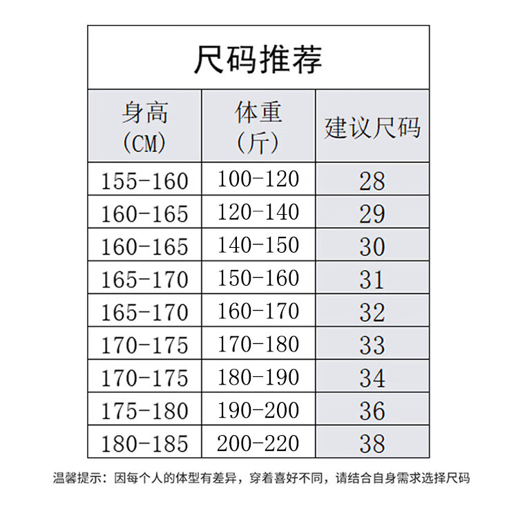 USA(inch) 28-30 30-32 32-34 34-38 38-42