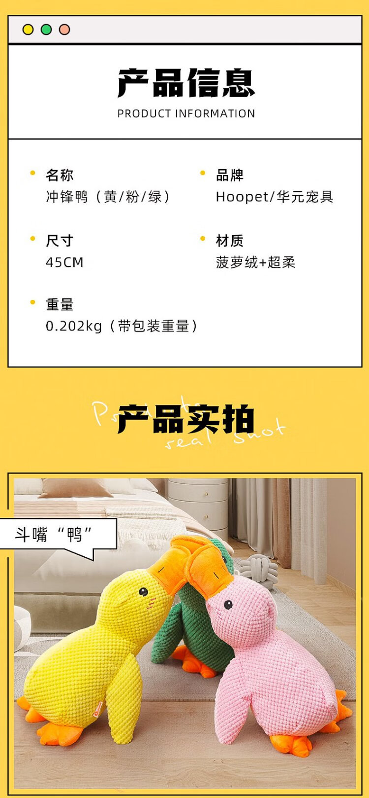 Huayuan Pet Toy (hoopet) Dog Toy Sounds Self-Happiness to Relieve Boredom Plush Doll Charge Yellow Duck Big Dog Teething Artifact Bite-Resistant Pet Supplies