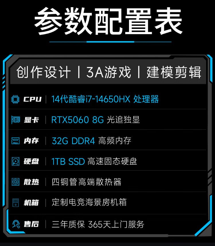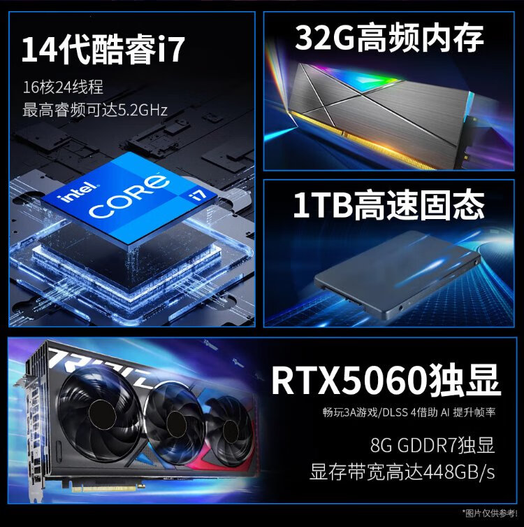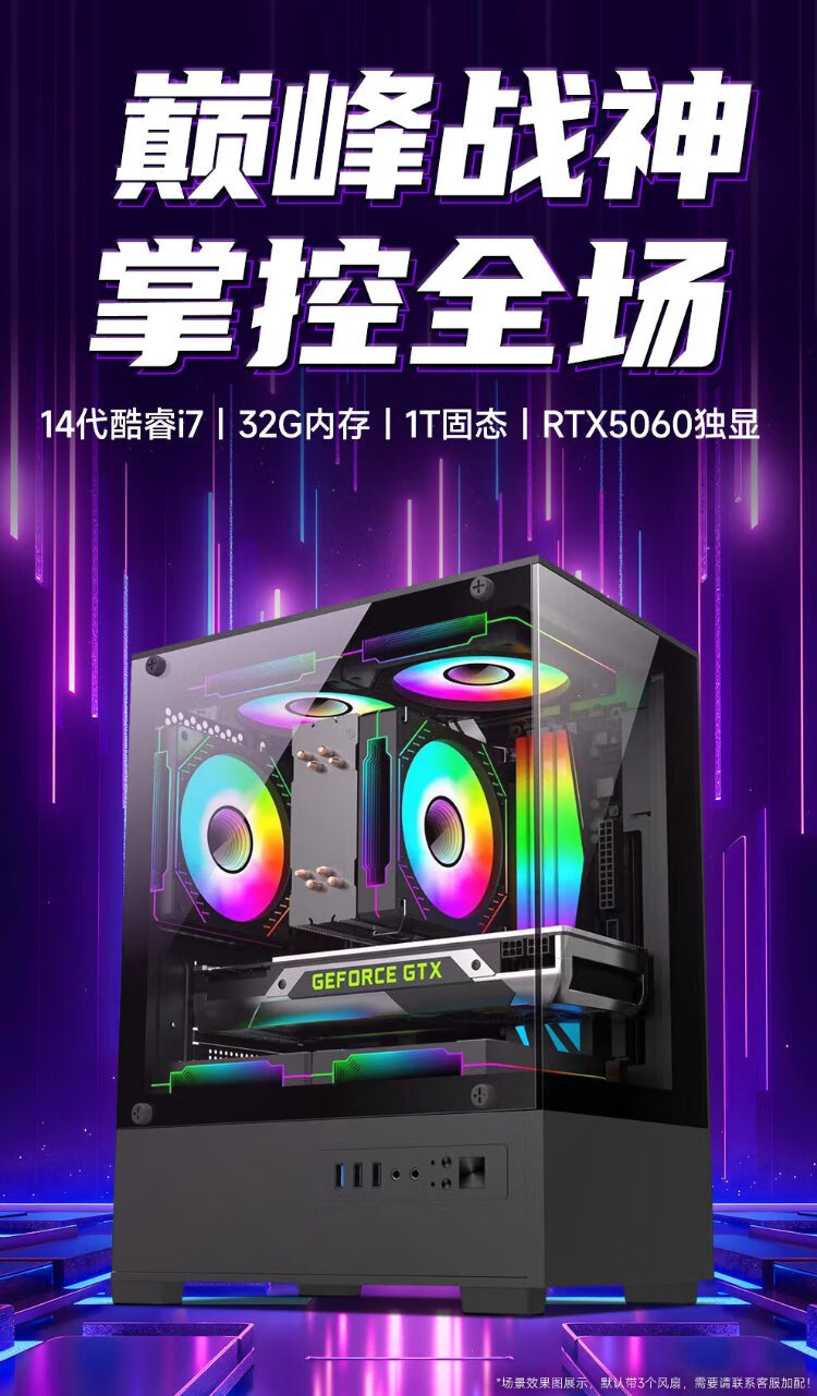 Five-color fish 14th generation Core i7-14650HX RTX5060 independent graphics 32G 1TB designer office commercial gaming desktop computer desktop computer host complete set