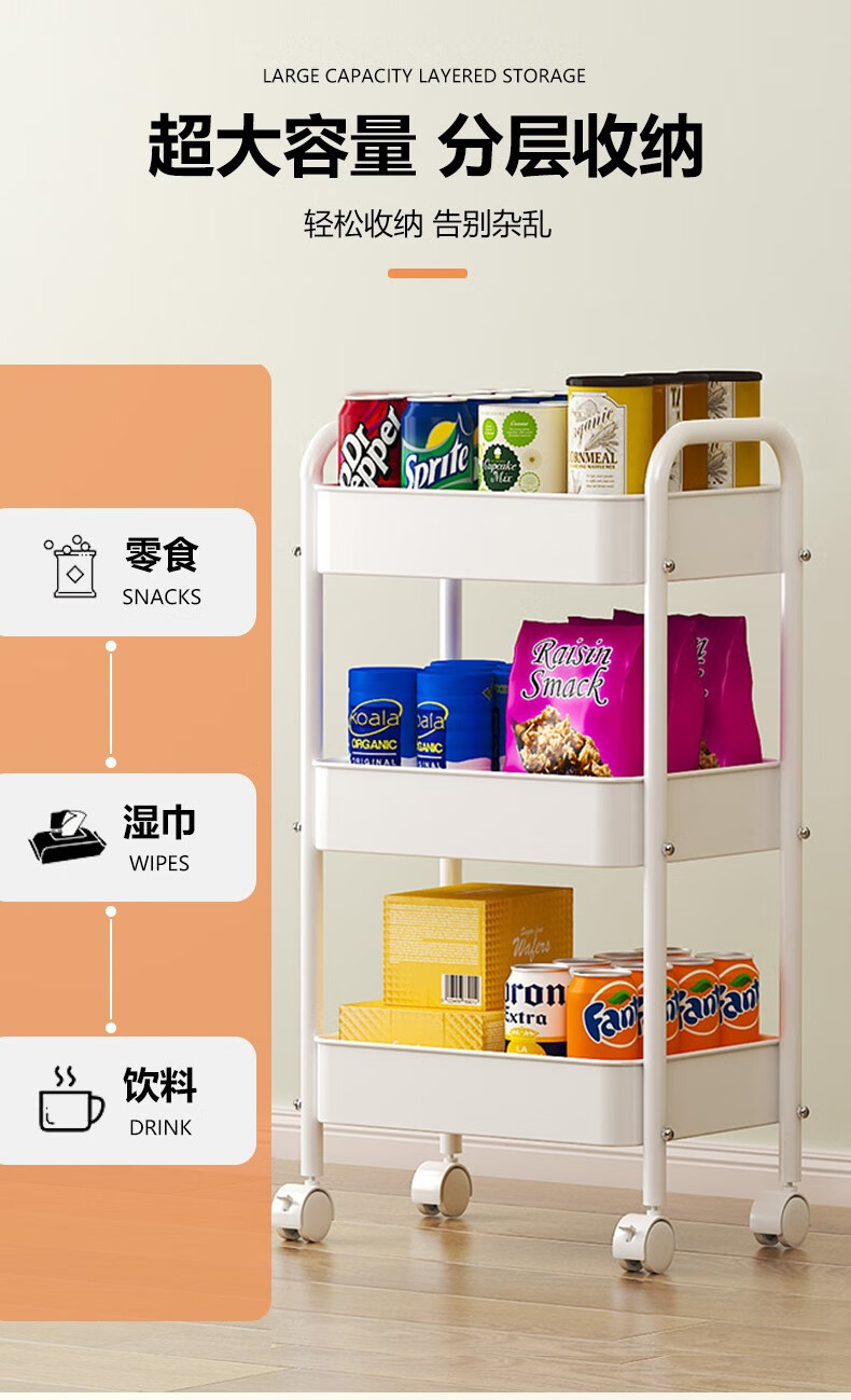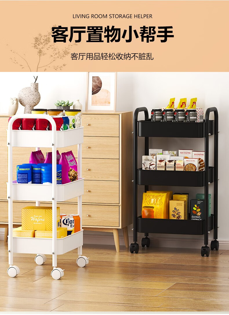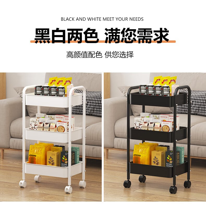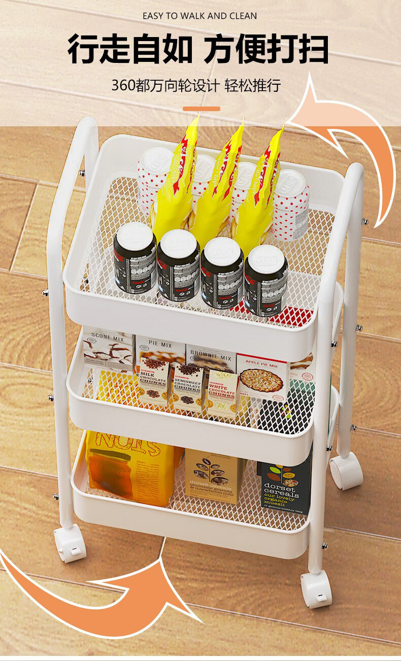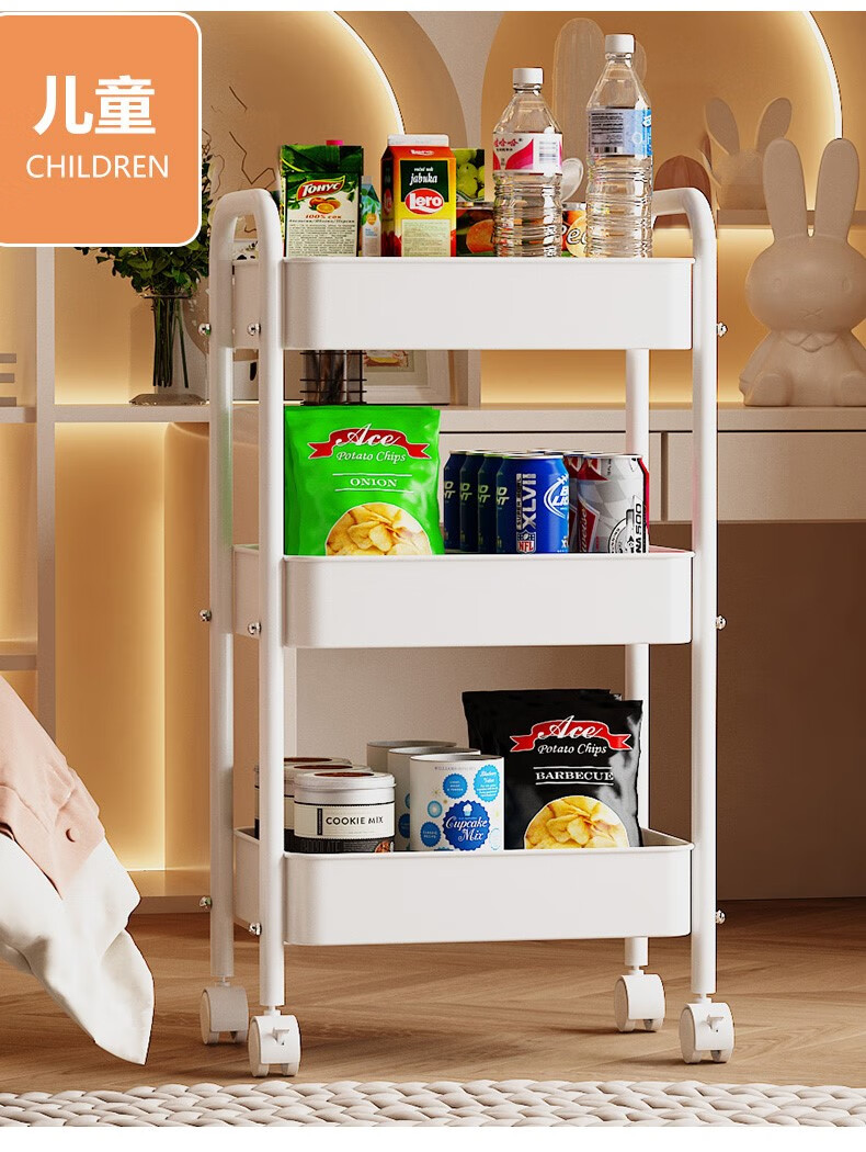 Shunyou Storage Rack Floor-standing Carbon Steel Storage Rack Mobile Kitchen Storage Rack Mobile Trolley Three-Layer Pink SY-1320