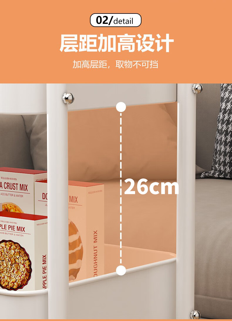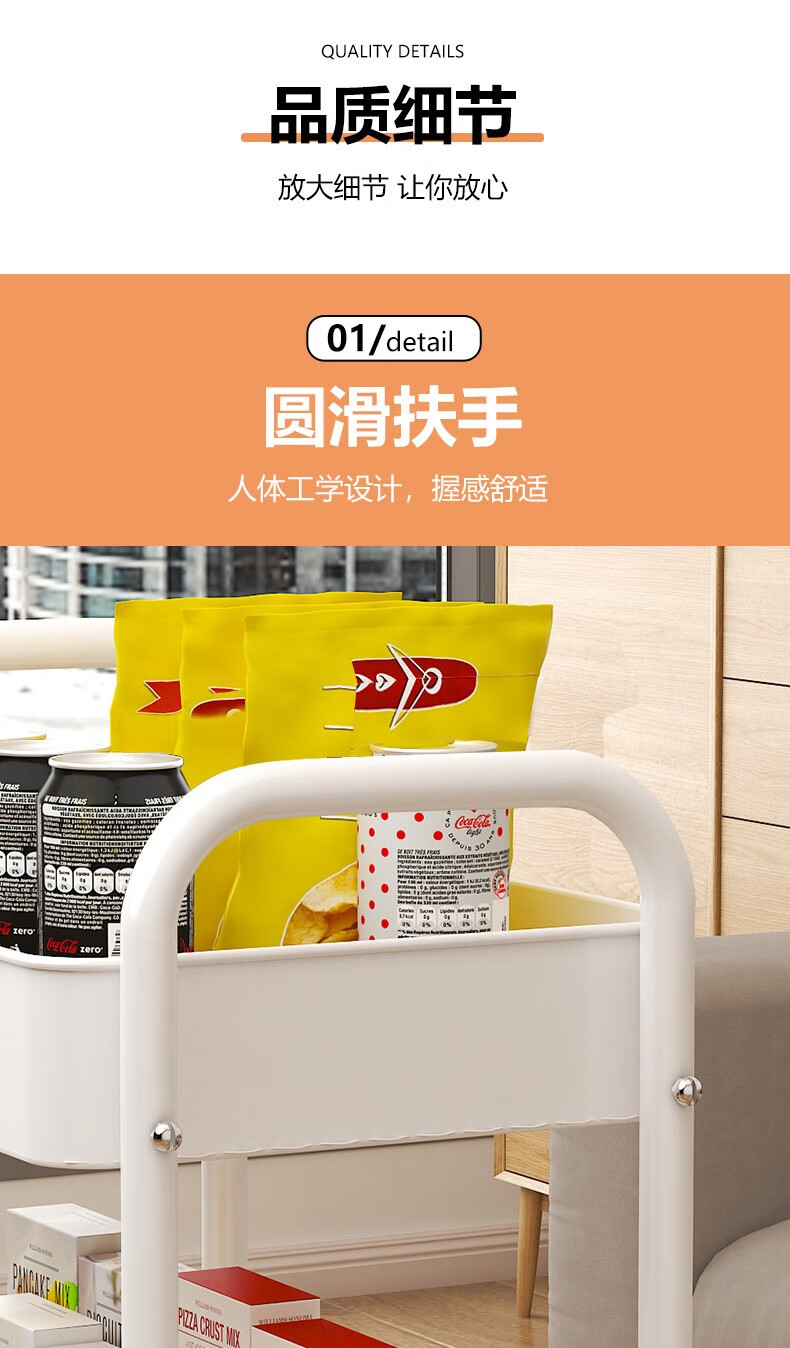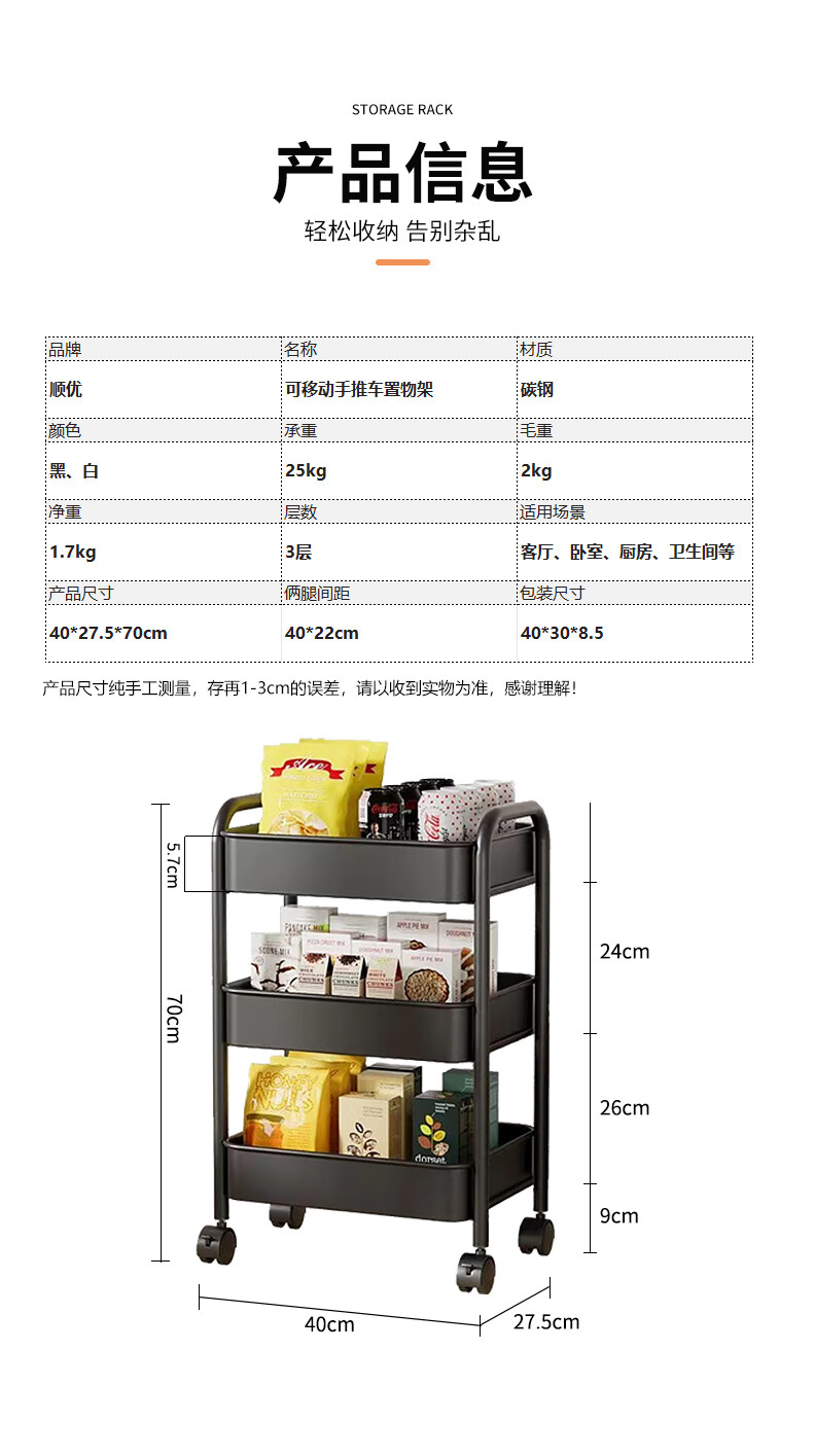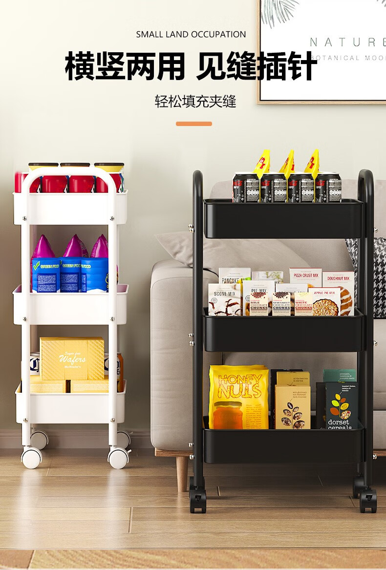 Shunyou Storage Rack Floor-standing Carbon Steel Storage Rack Mobile Kitchen Storage Rack Mobile Trolley Three-Layer Pink SY-1320